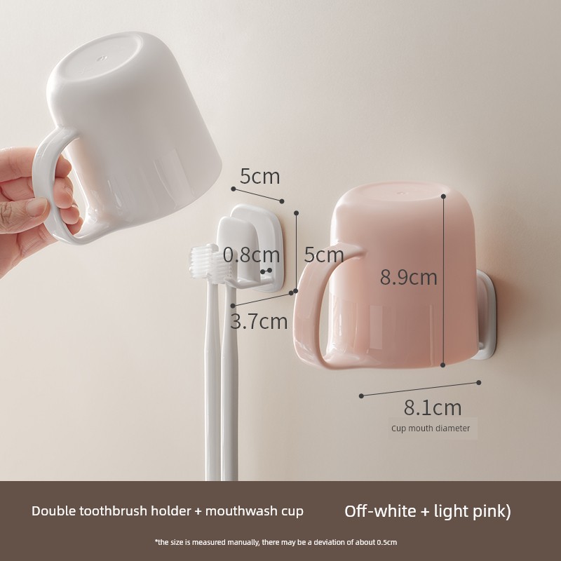 Double Toothbrush Holder + Mouthwash Cup [Off-White + Light Pink]