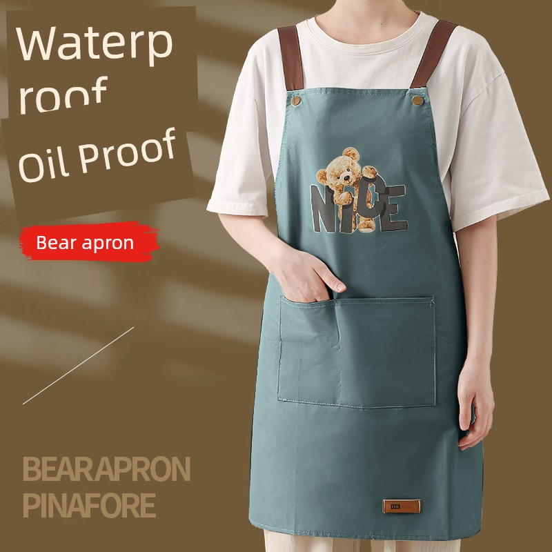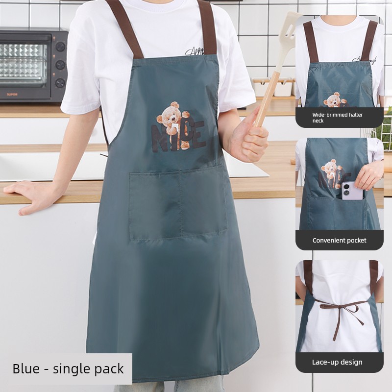 Waterproof and Oil-Proof Household Kitchen Apron with Straps, Fashionable Korean Style, Adult Cooking and Work Apron, Stain-Resistant Workwear Apron