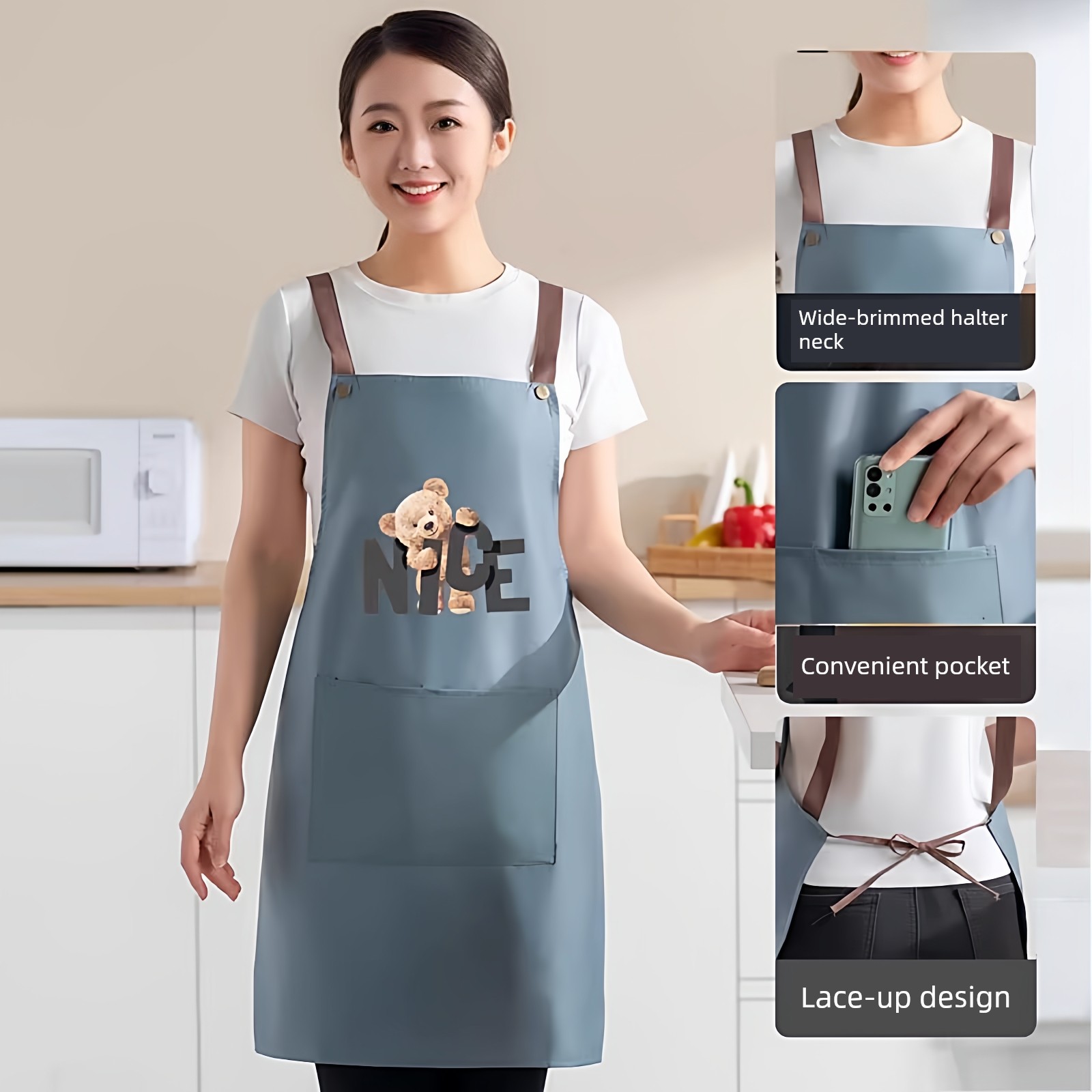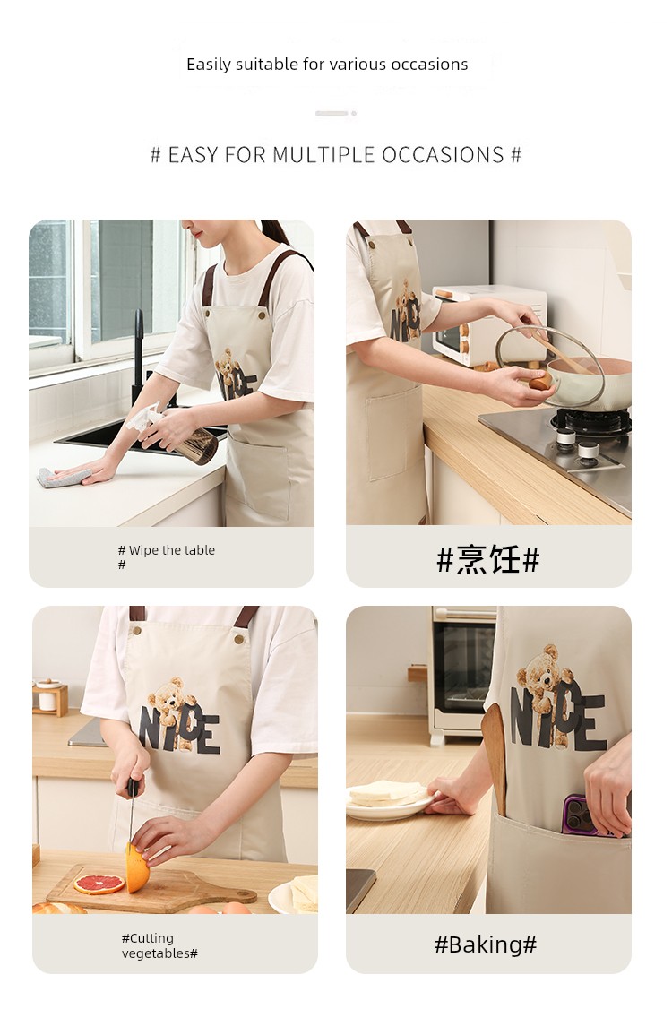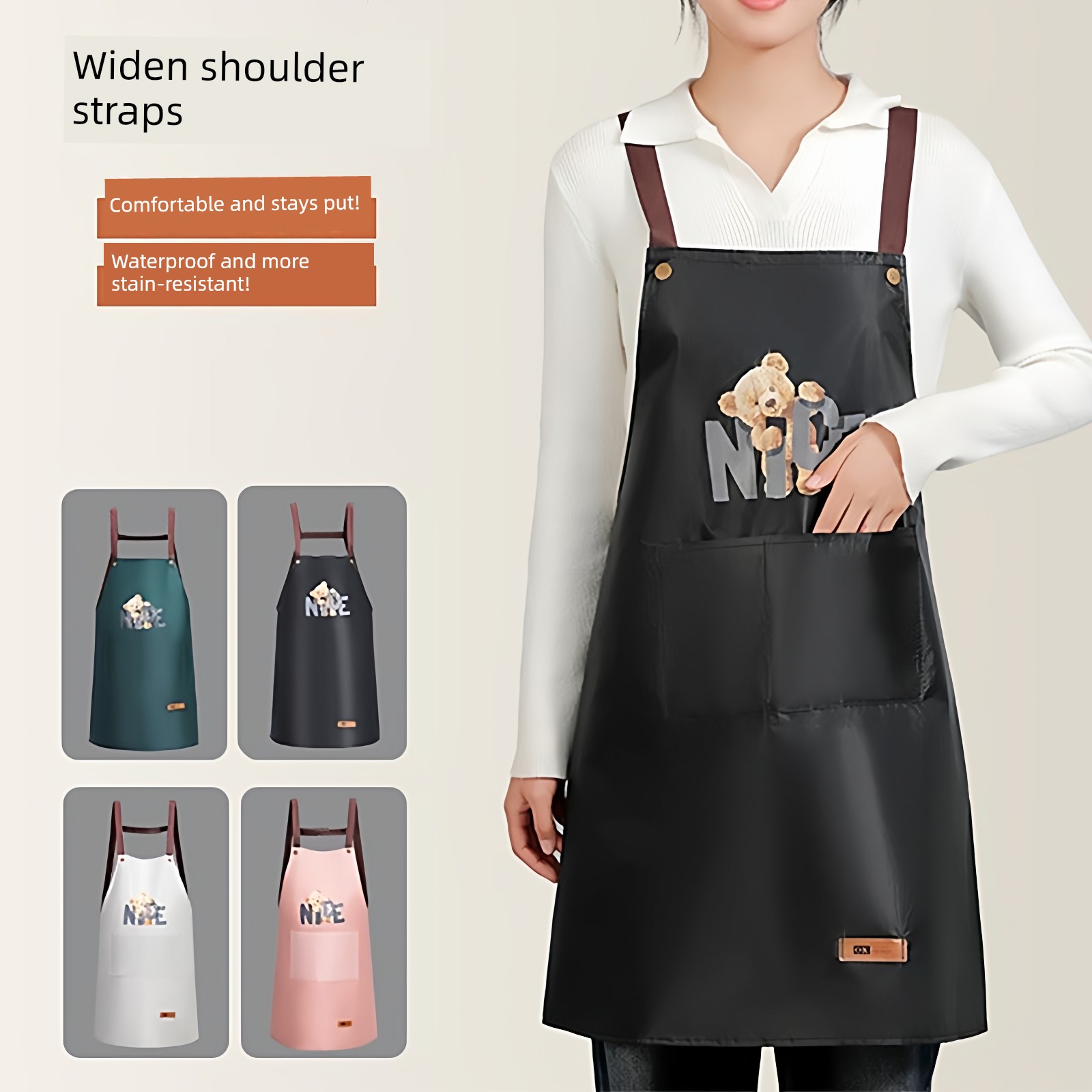 Upgraded and Thickened Version✅Bear Apron [Beige] 1 Pack⭐Waterproof and Oil-Proof | Durable