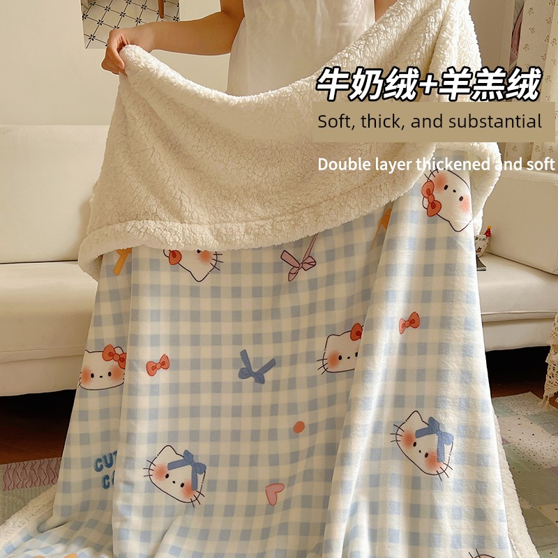 Blue Check Meow Meow Pt [Class a Fabric, Milk Velvet Skin-Friendly Layer + Lambswool Heat-Retaining Layer, Double-Layer Thickened, Locks in Warmth]