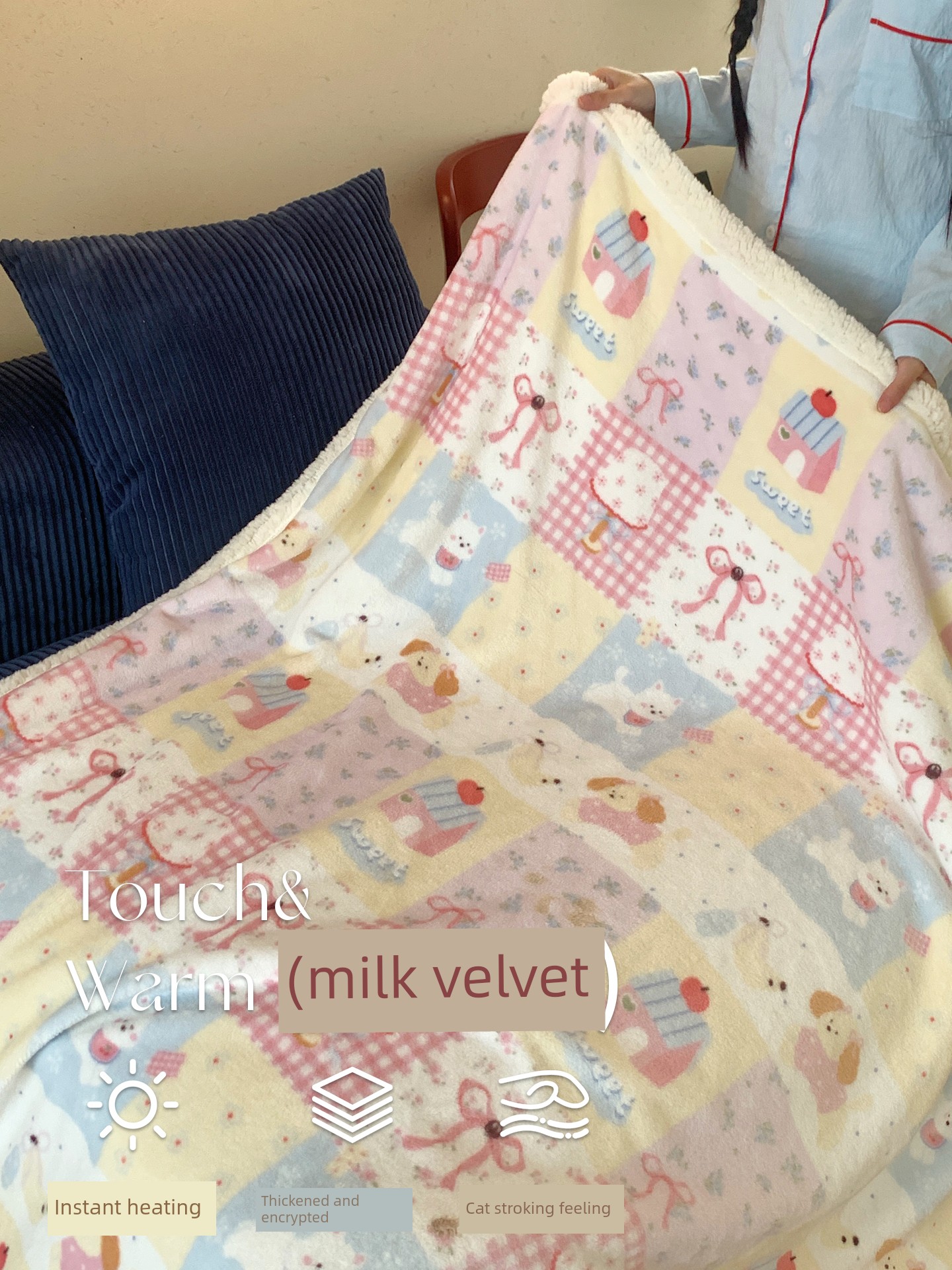 Milk Velvet Lamb Fleece Blanket, Thickened for Autumn, Suitable for Office Naps, Children's Small Quilt, for Use on Sofa and Bed