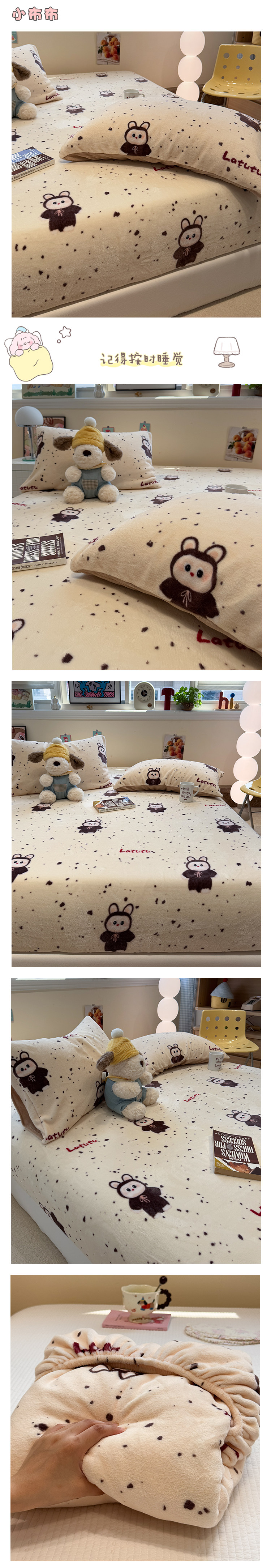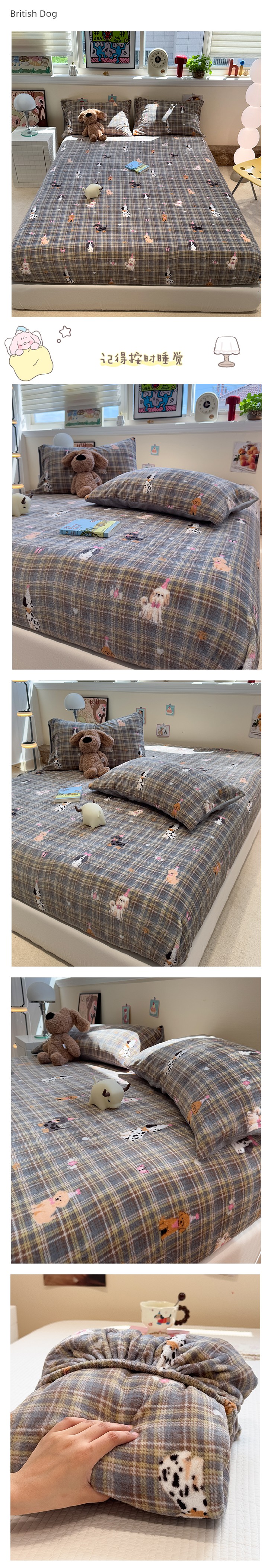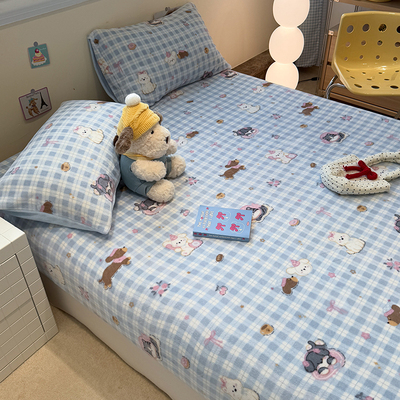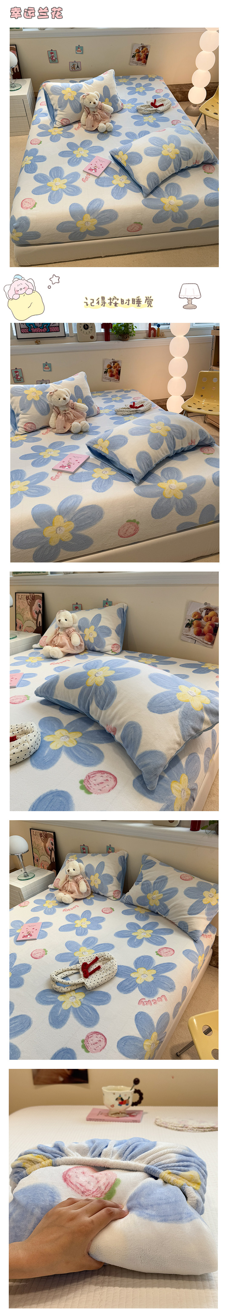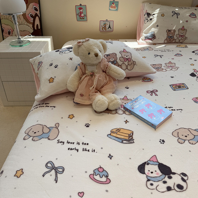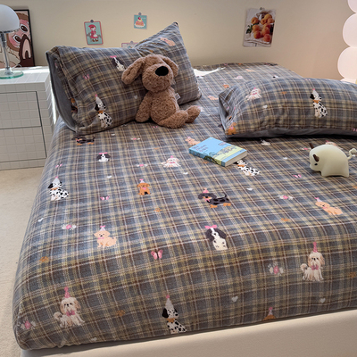 Fall and Winter Heattech Milk Fiber 1.5 M1.8 M Fitted Sheet Plaid Comfortable Coral Velvet Bedspread Three-Piece Soft Bed Sheets