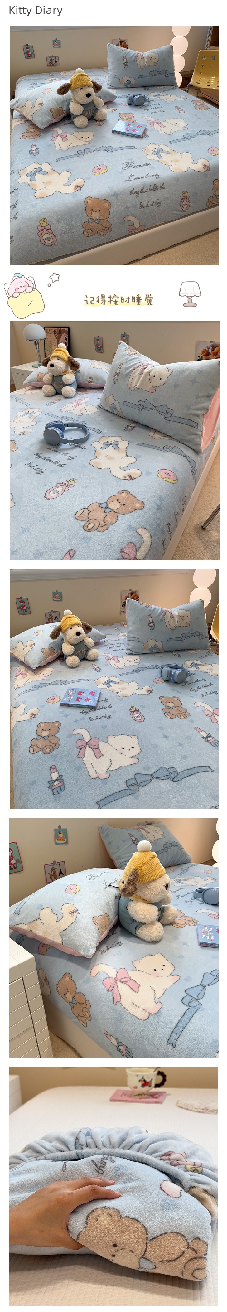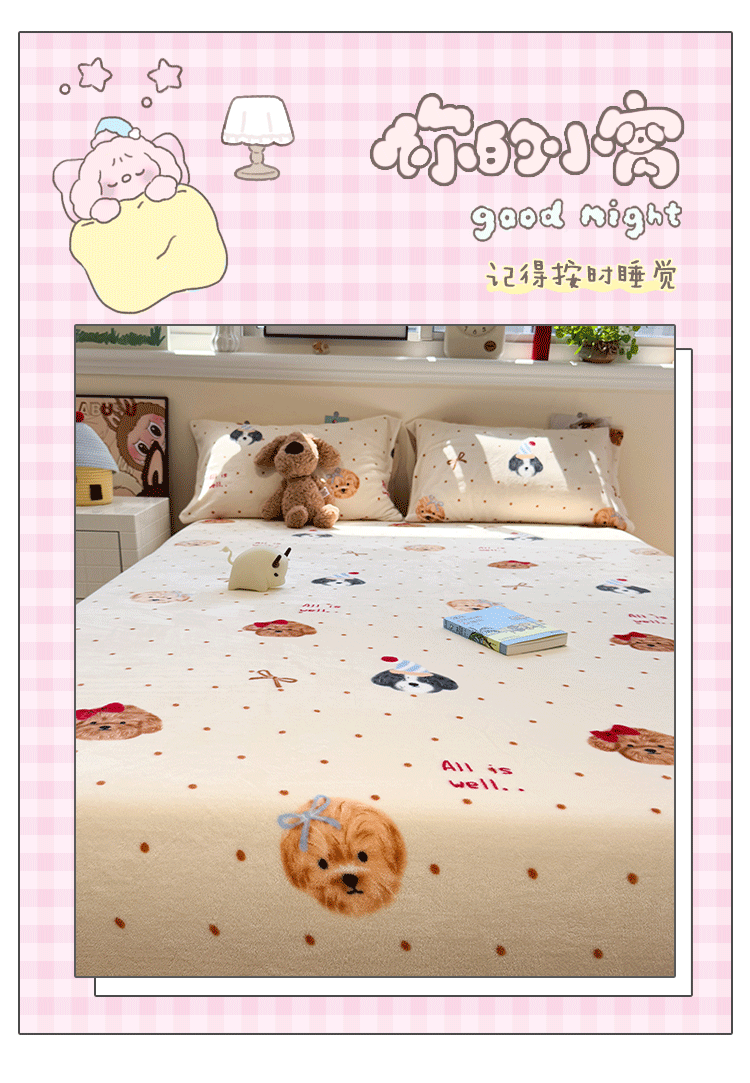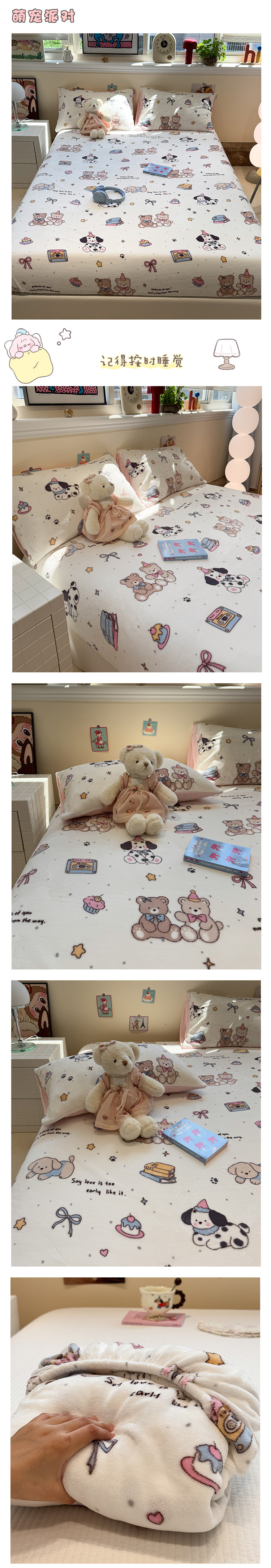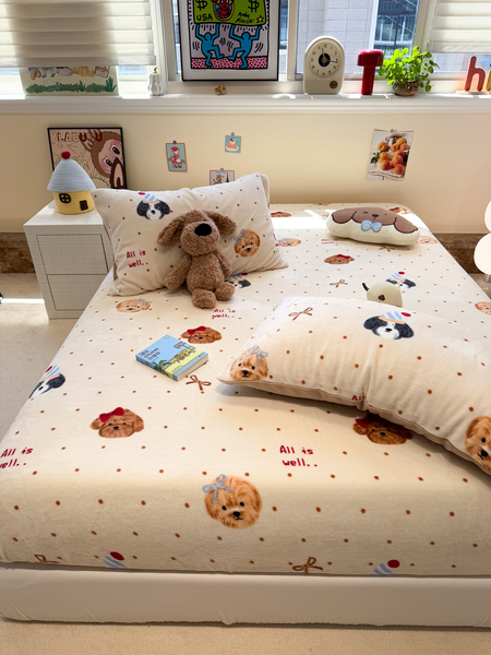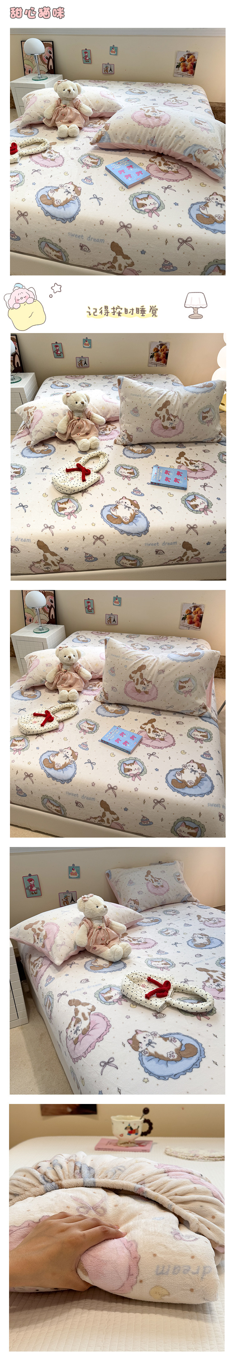 Fall and Winter Heattech Milk Fiber 1.5 M1.8 M Fitted Sheet Plaid Comfortable Coral Velvet Bedspread Three-Piece Soft Bed Sheets