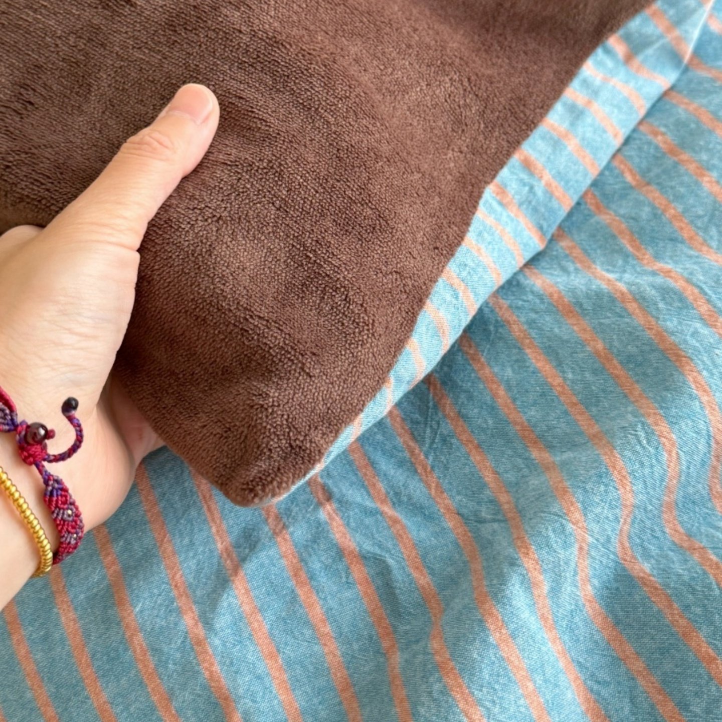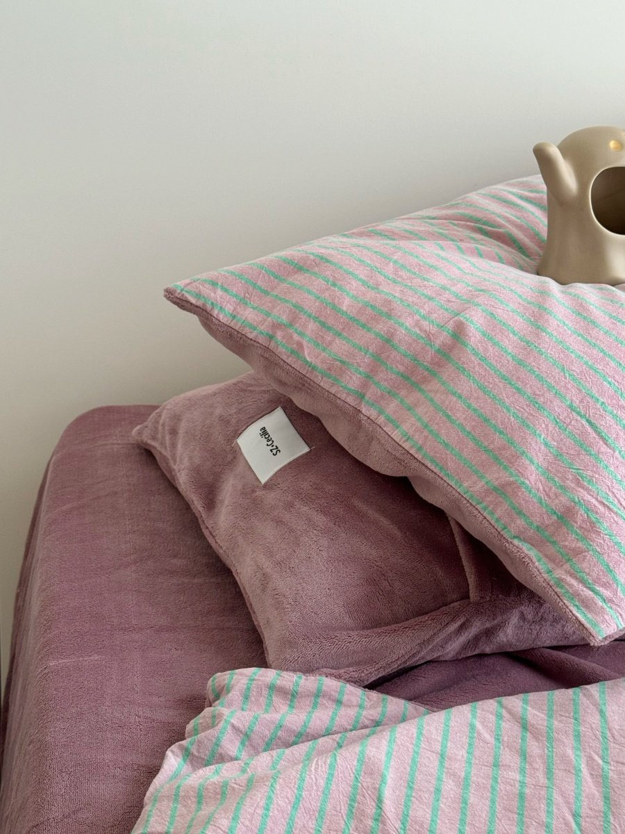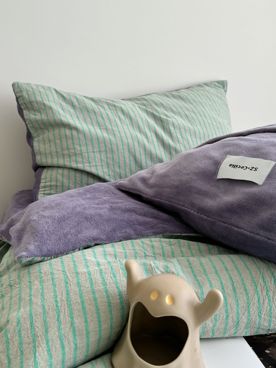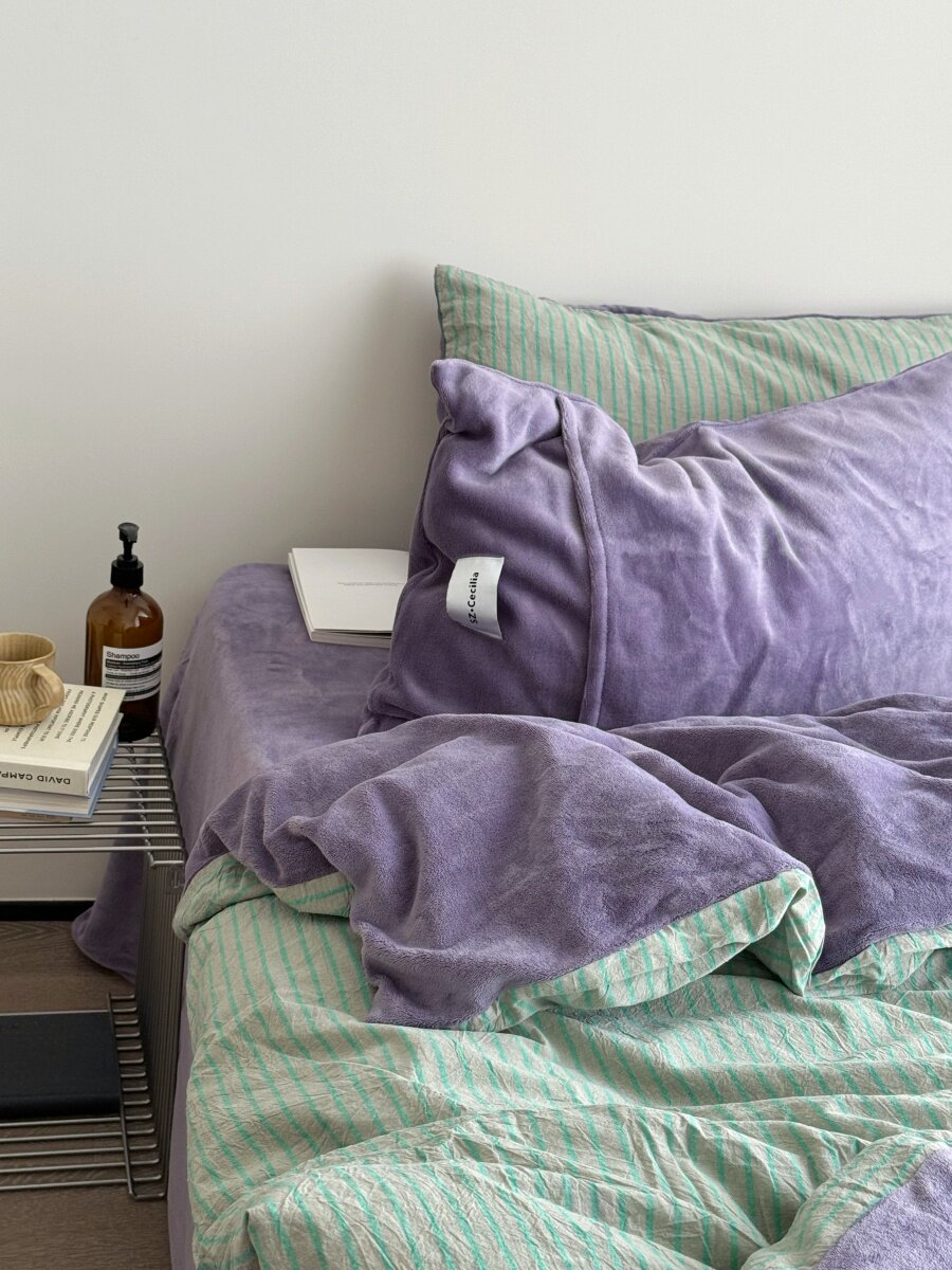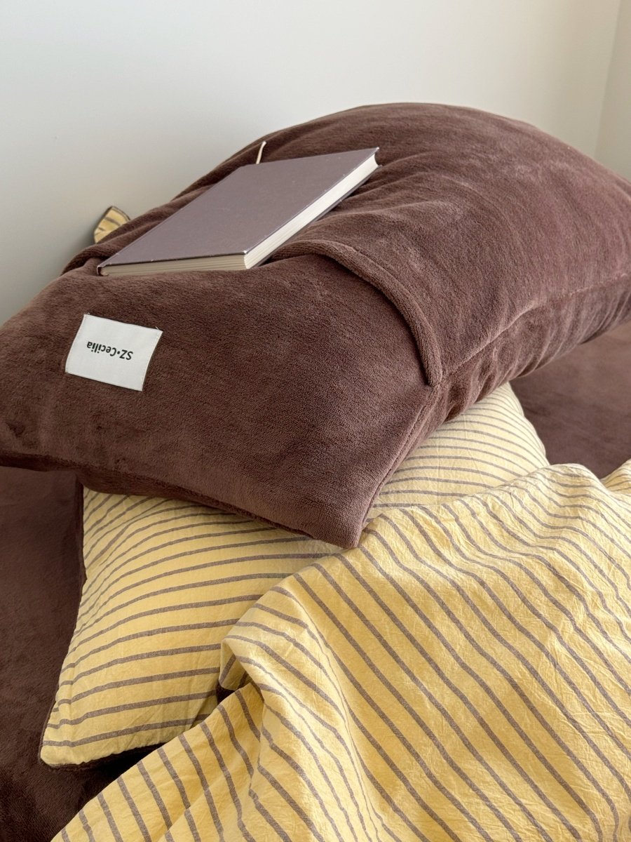 Retro Room|Ins Blogger Simple Blue and Coffee Color Striped Cotton Fleece Four-Piece Set 1.8 Milk Velvet Bed Sheet Fitted Sheet