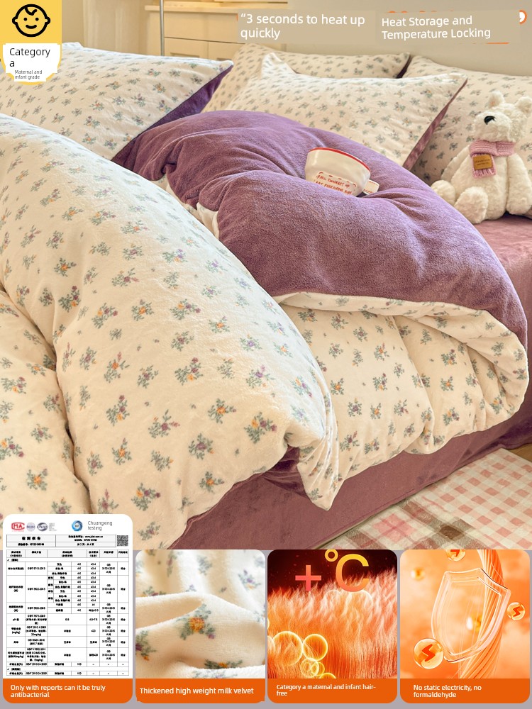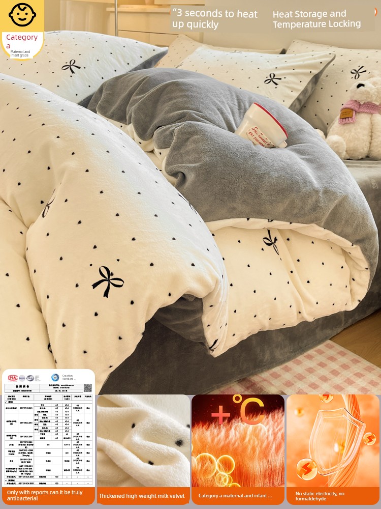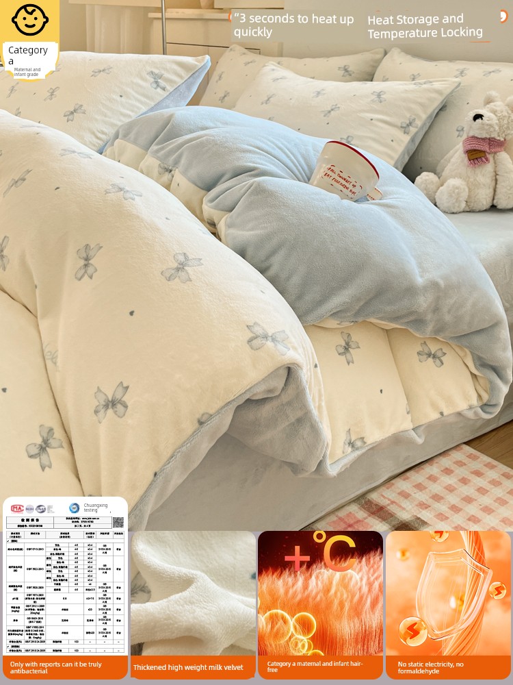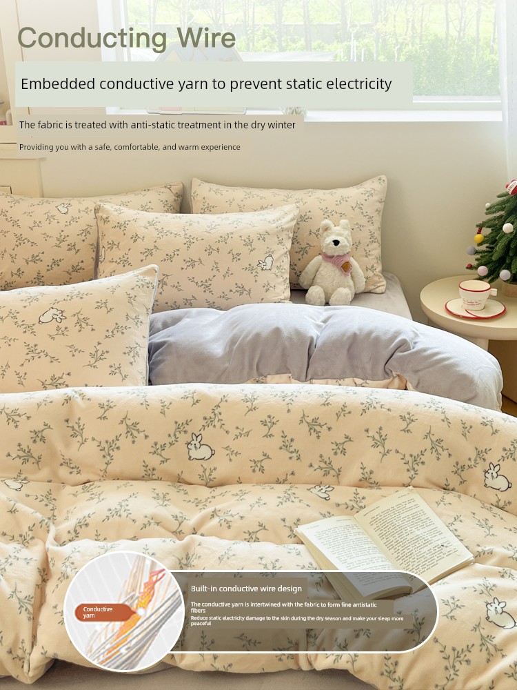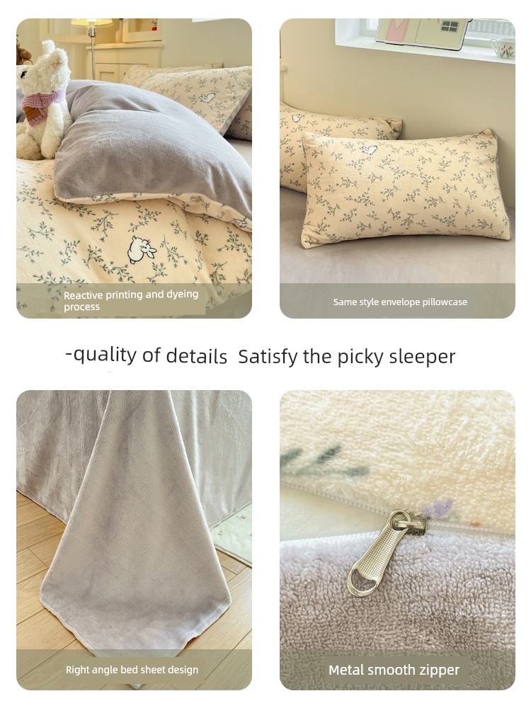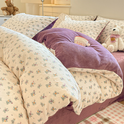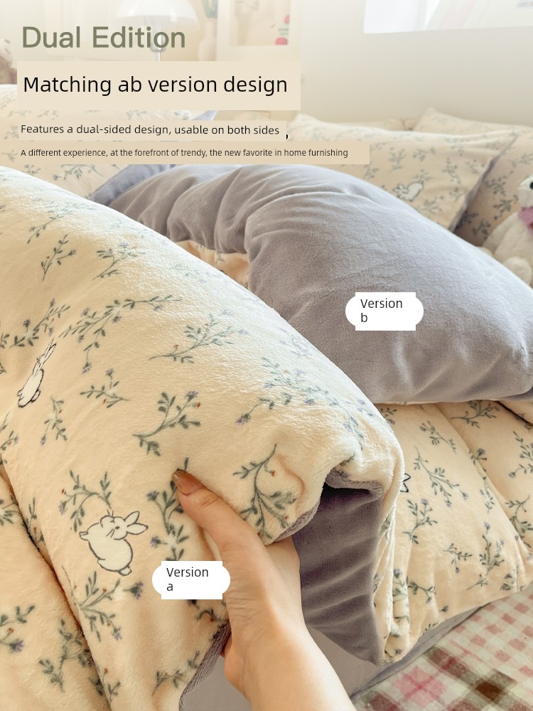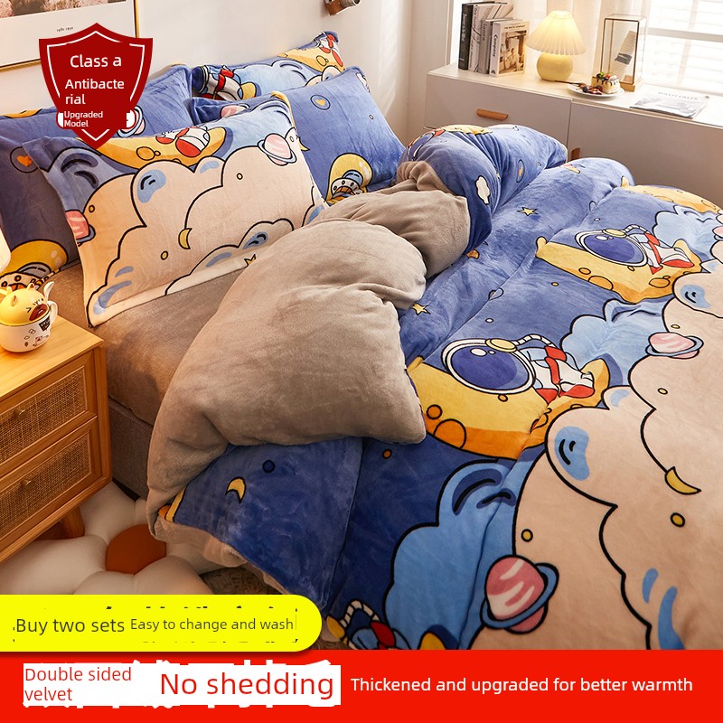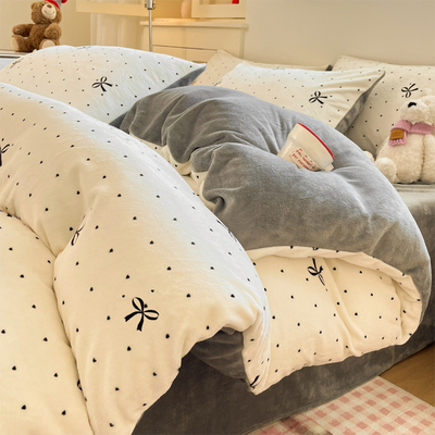 Milk Velvet Four-Piece Bedding Set, Flannel Coral Fleece Duvet Cover, 2025 New Autumn and Winter Thickened Fleece Three-Piece Set
