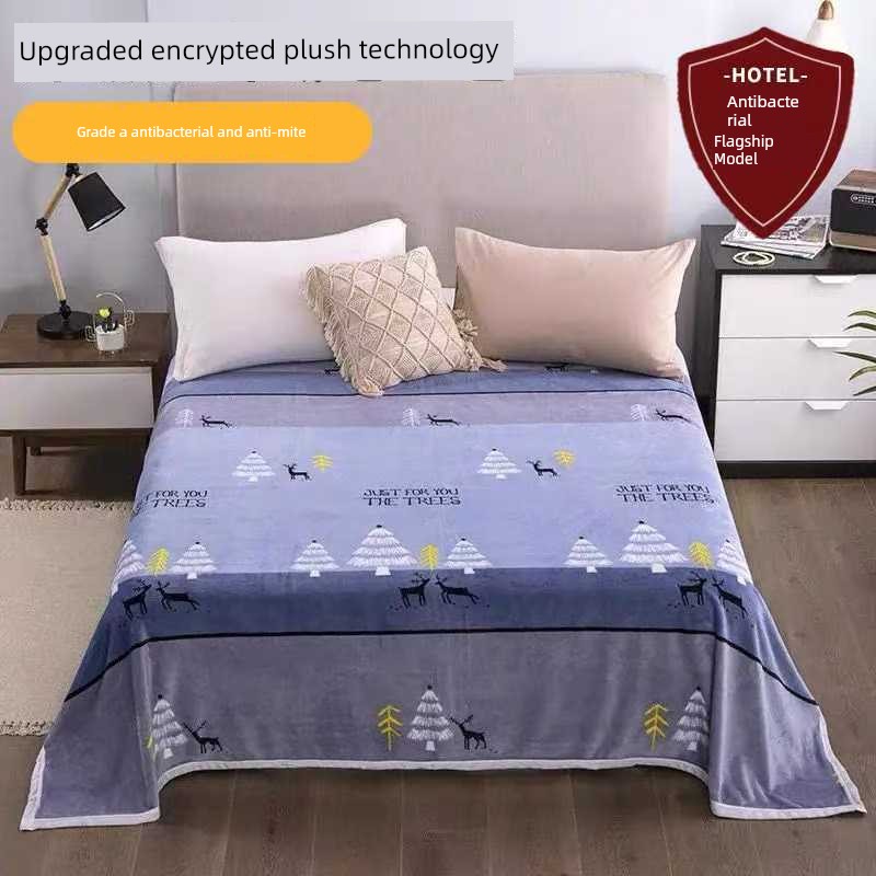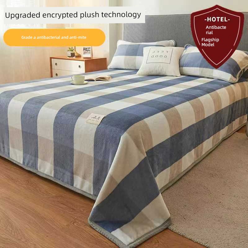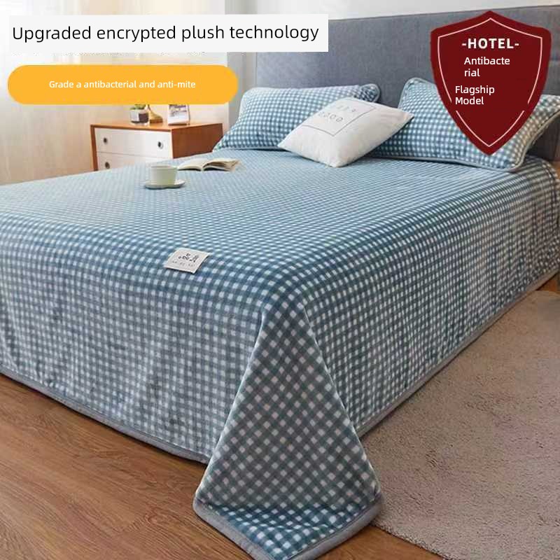 Winter Fleece Bed Sheet, Milk Velvet Thickened Double-Sided Coral Fleece Blanket, Winter Warm Single Student Dormitory Blanket