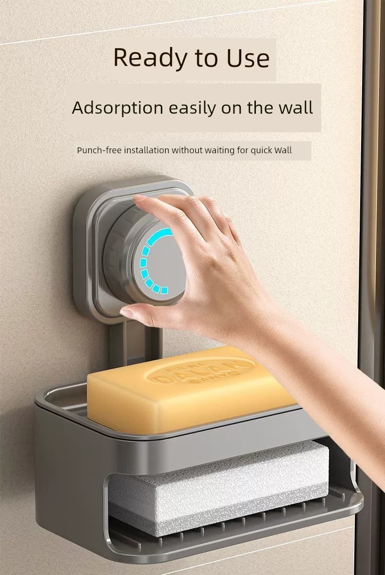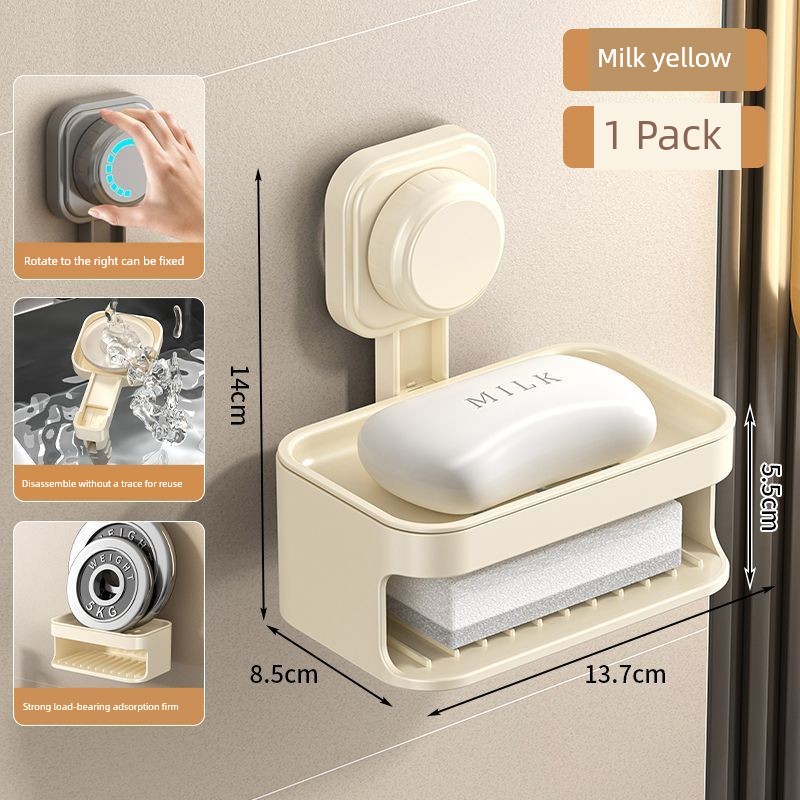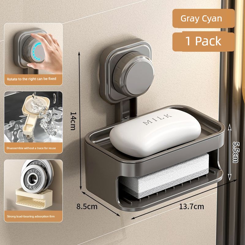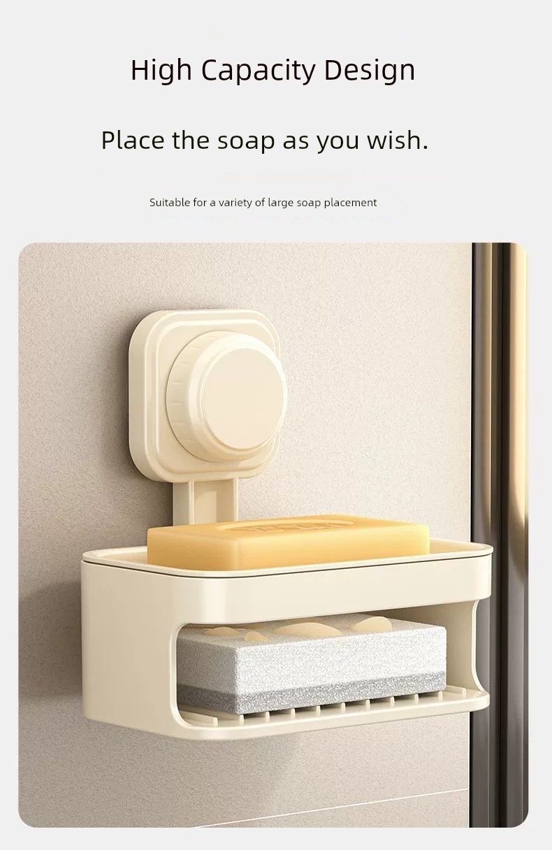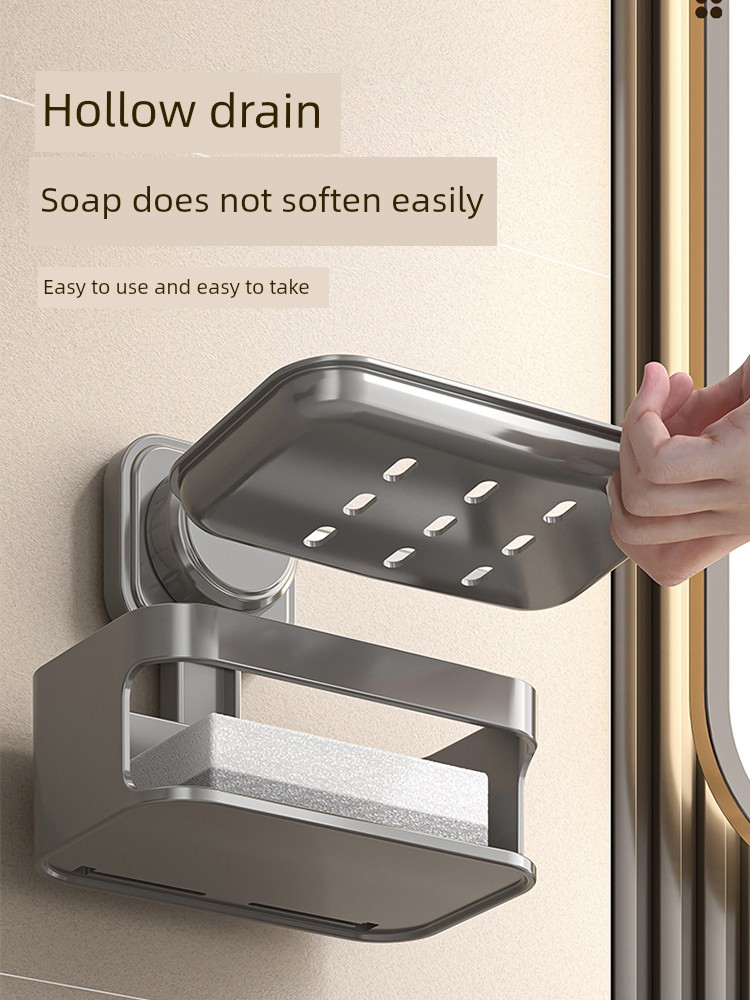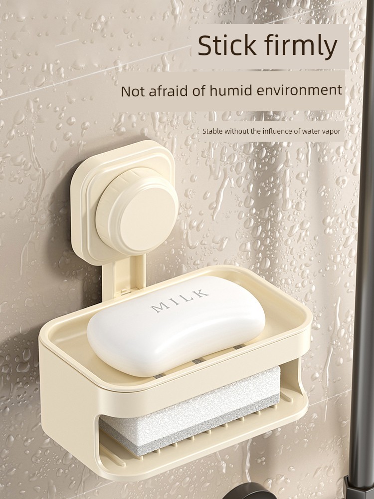 Soap Dish Suction Cup Type Strong Wall-Mounted Punch-Free Soap Holder Bathroom Storage Rack Double Layer