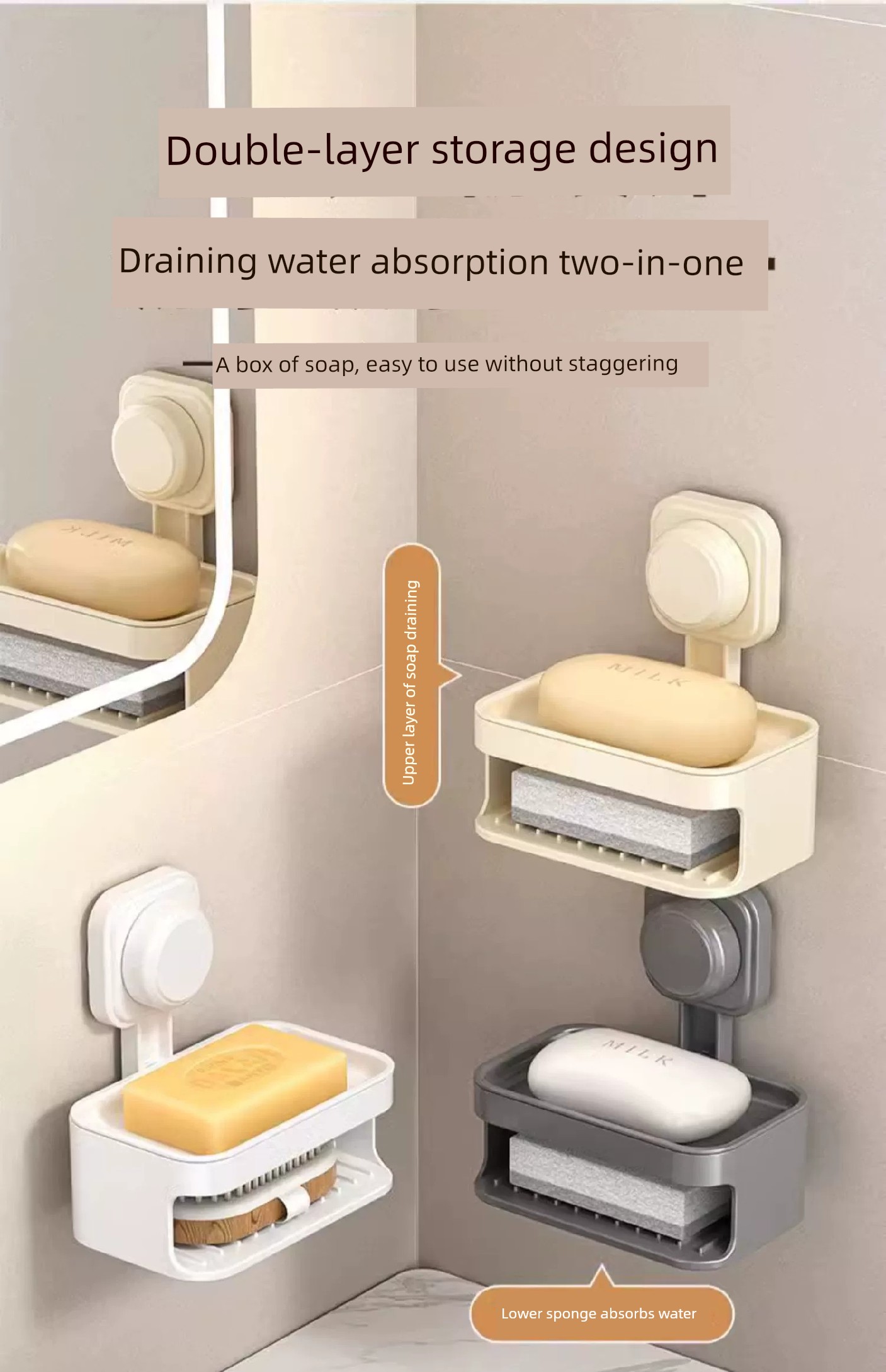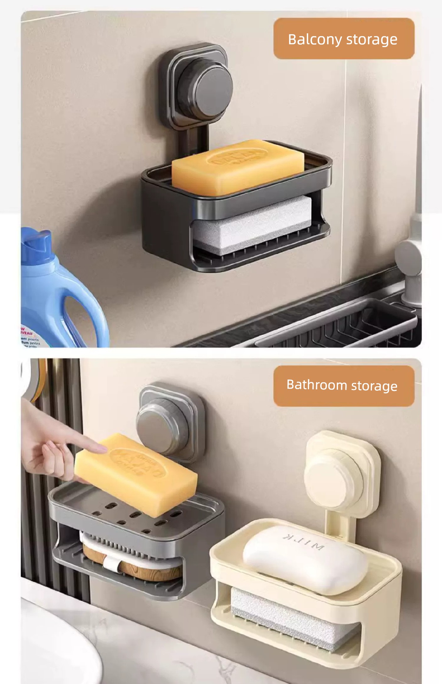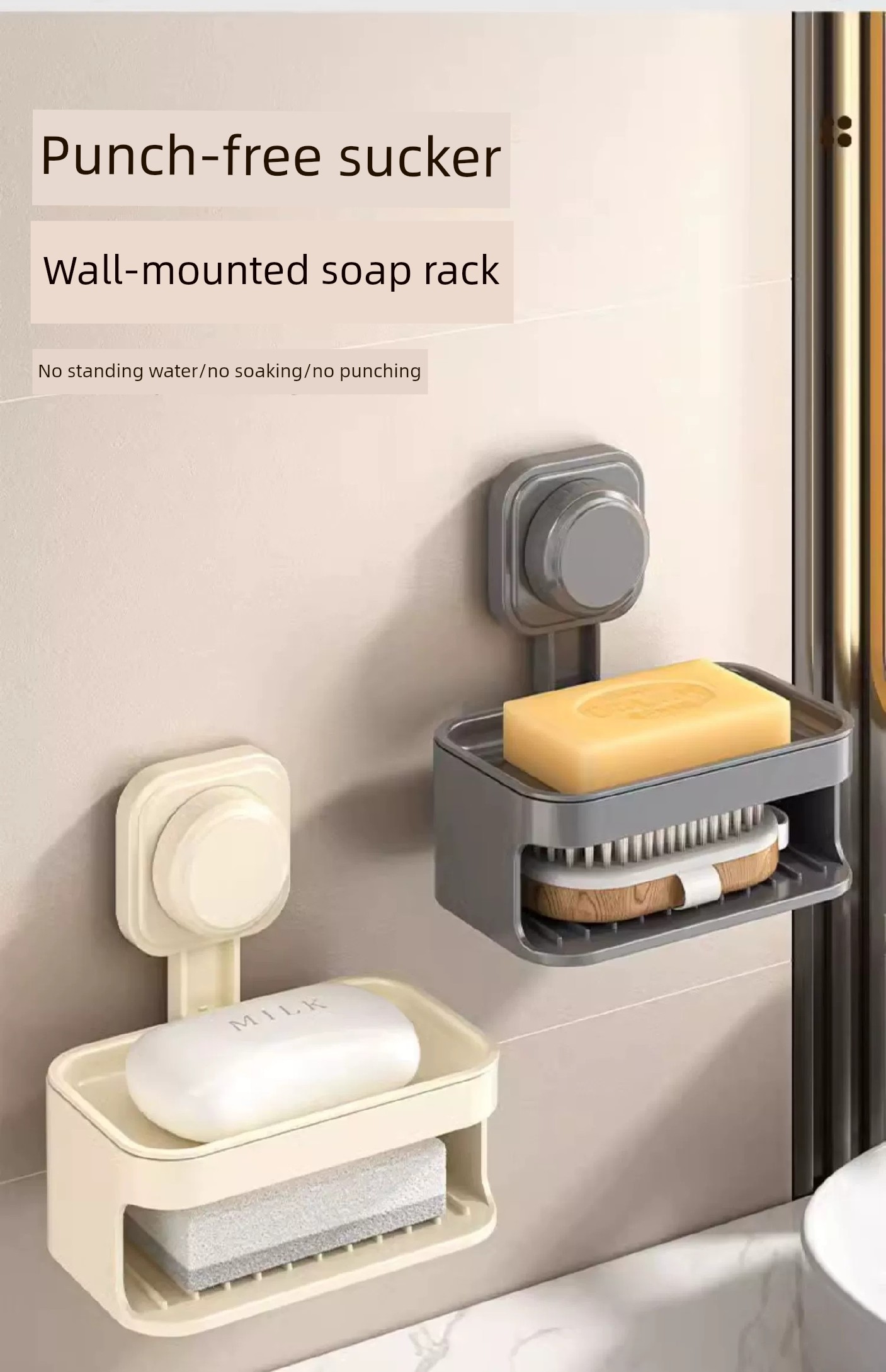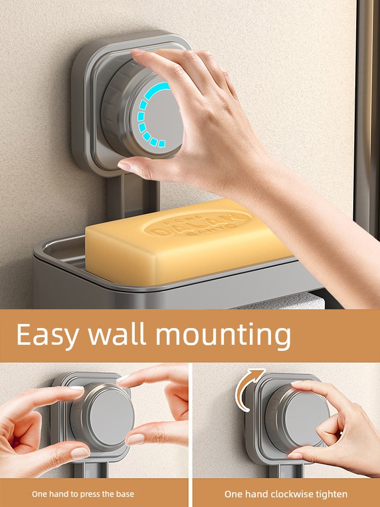 Soap Dish Suction Cup Type Strong Wall-Mounted Punch-Free Soap Holder Bathroom Storage Rack Double Layer