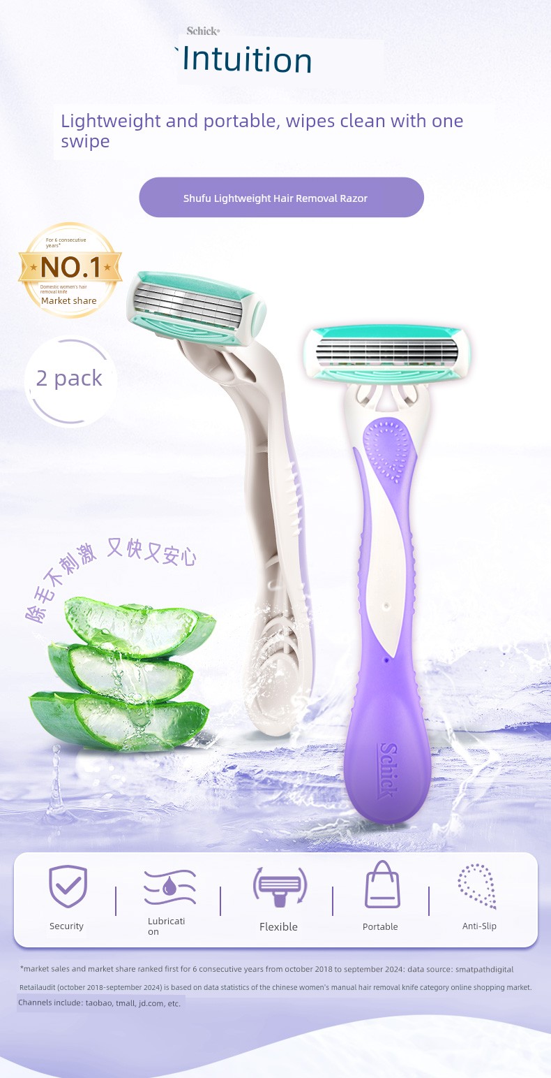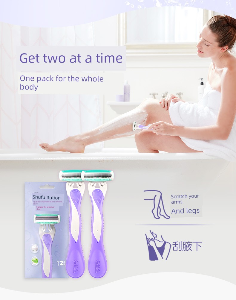 Schick Comfortable Women's Razor Manual Portable Lightweight Razor with 2 Blades and 2 Blade Holders