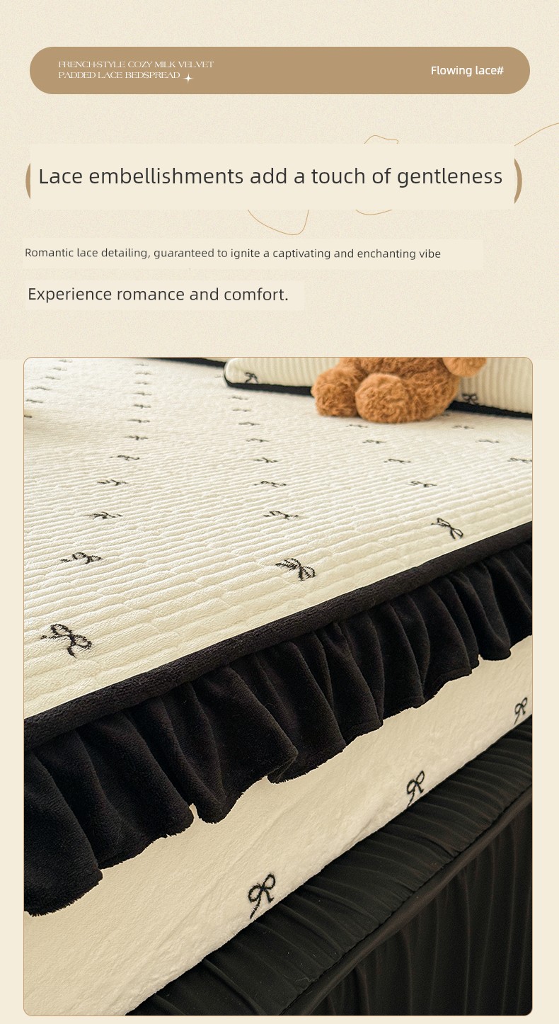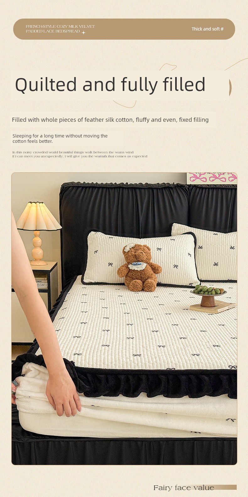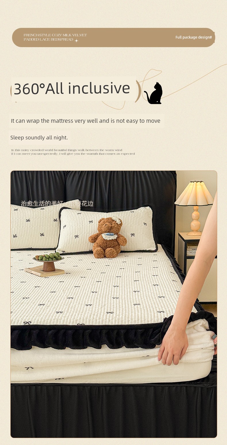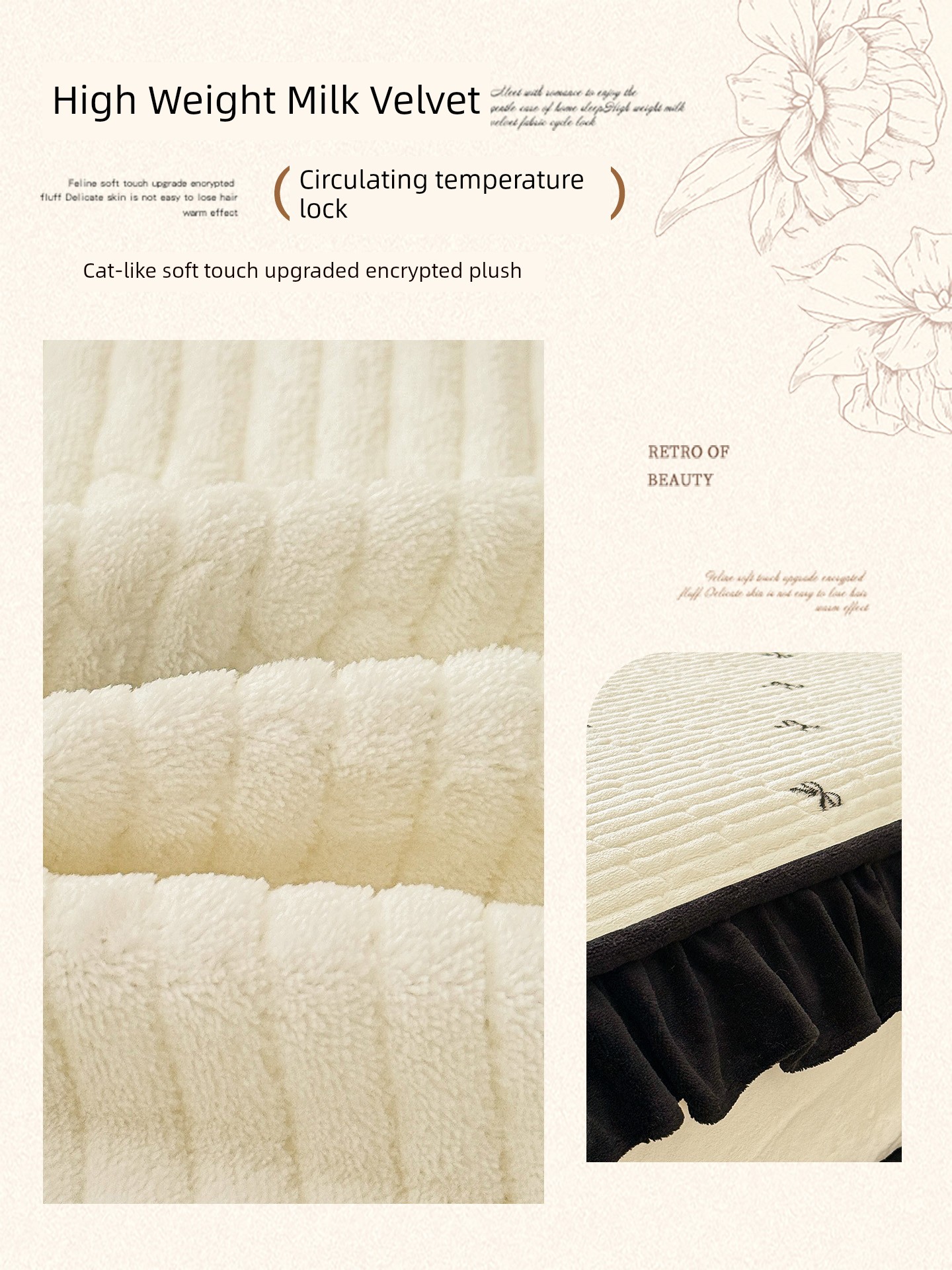 French Style Thickened Milk Fiber Quilted Fitted Sheet Single Piece Winter Fleece-Lined Bedspread with Skirt Simmons Mattress Protective Cover