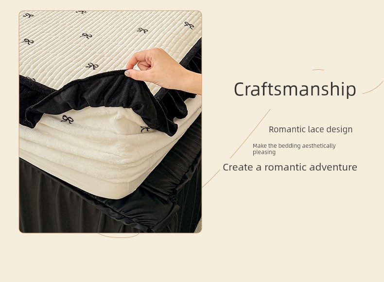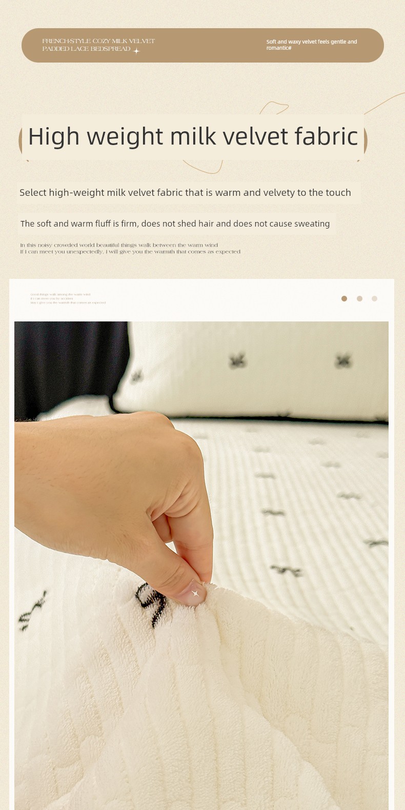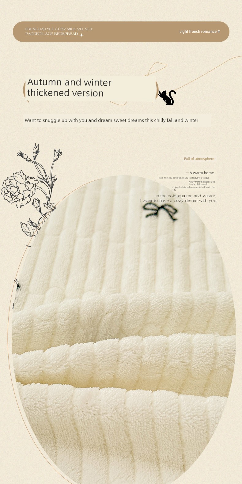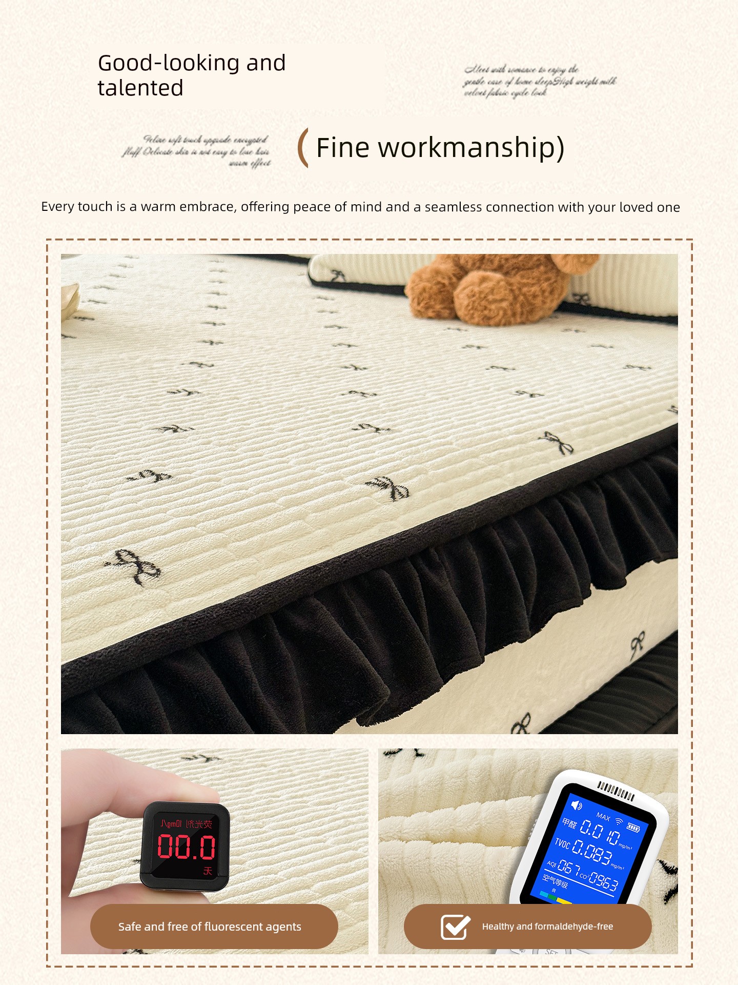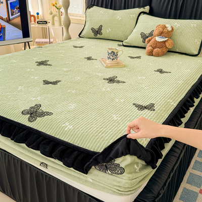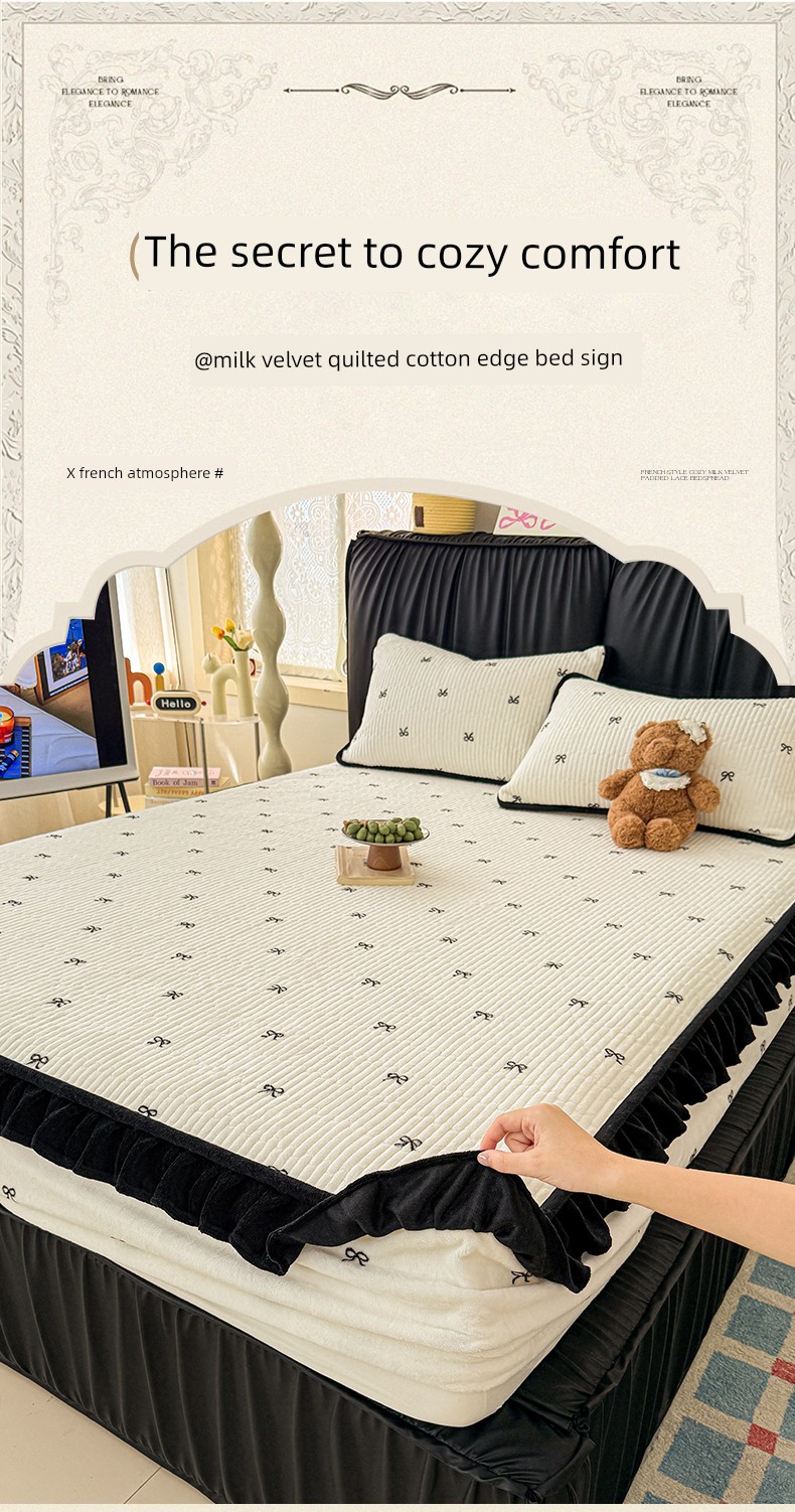 French Style Thickened Milk Fiber Quilted Fitted Sheet Single Piece Winter Fleece-Lined Bedspread with Skirt Simmons Mattress Protective Cover