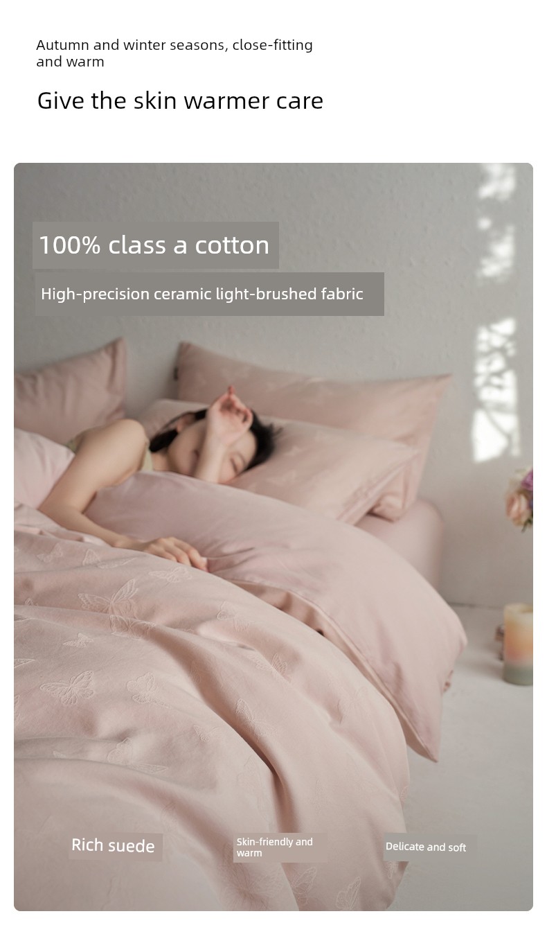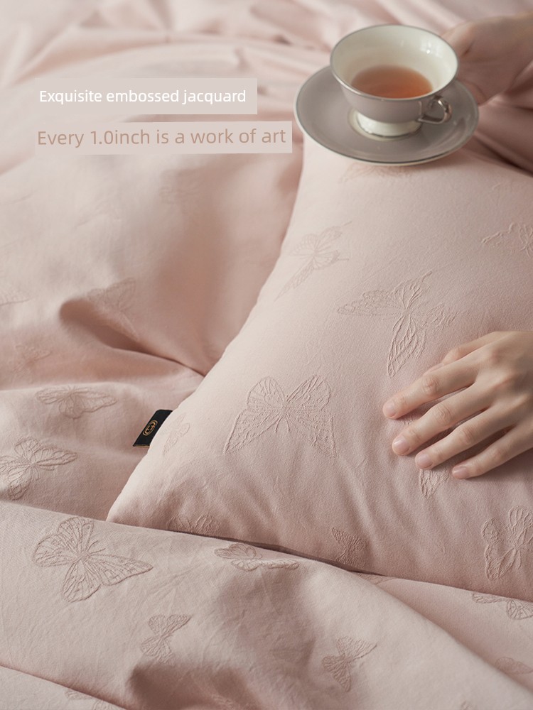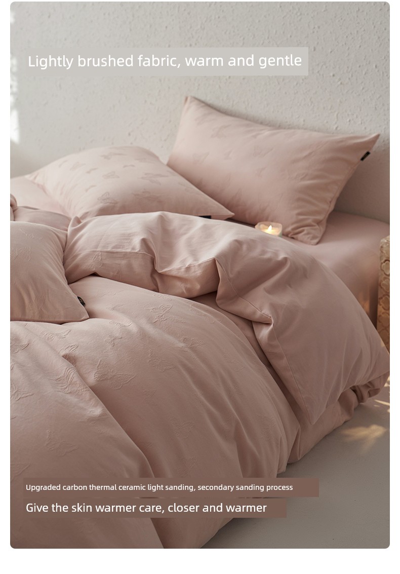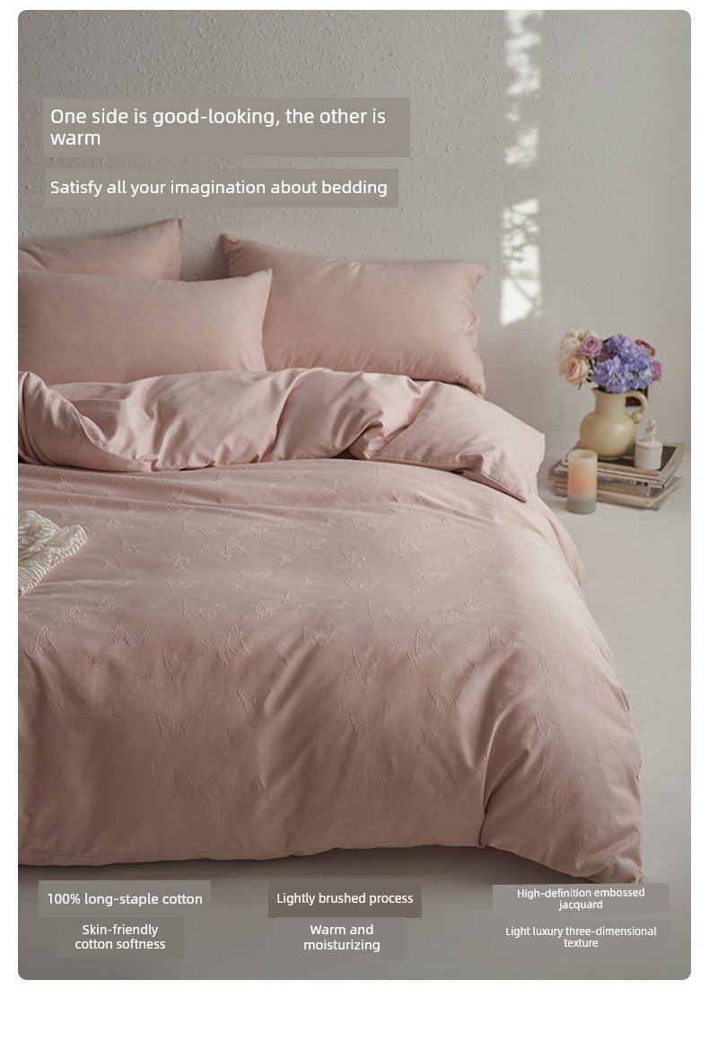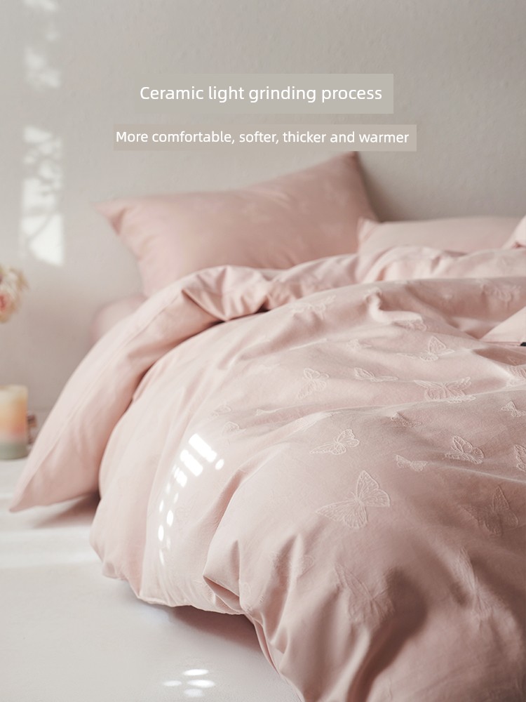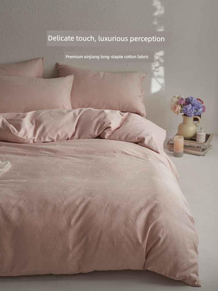 60-Count Pink Thickened Brushed Cotton Four-Piece Set, Pure Cotton, 2025 New Style, Light Luxury, High-End Feel, Class a Bedding