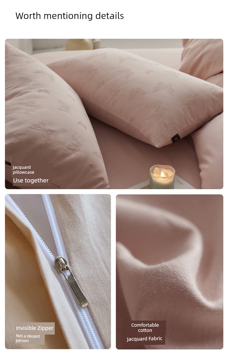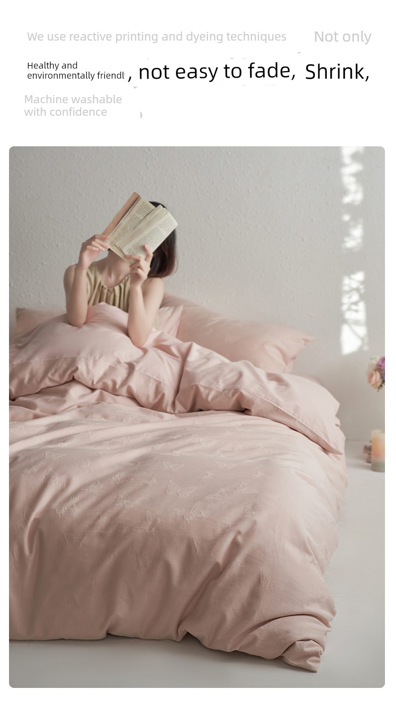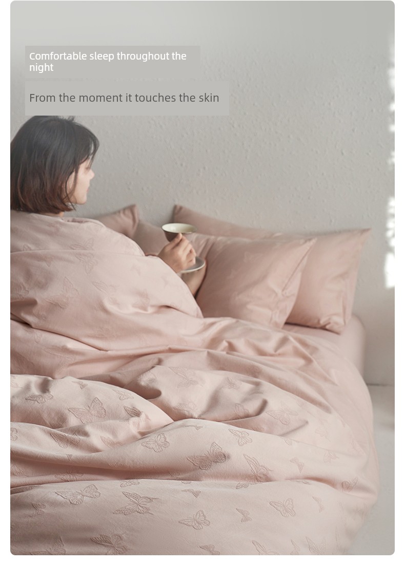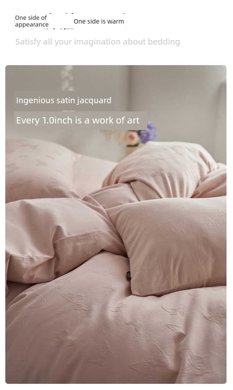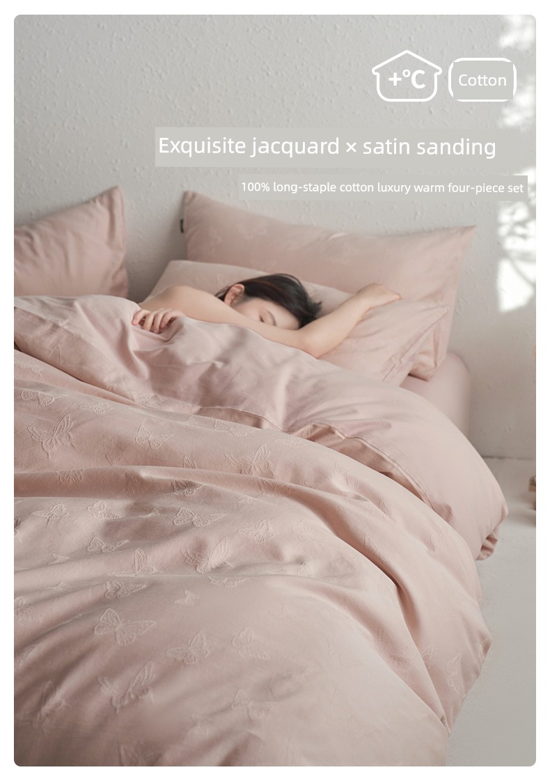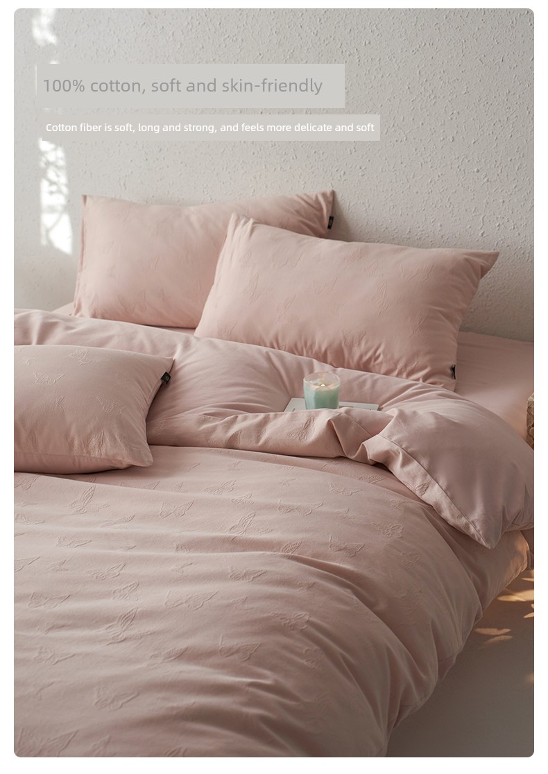 60-Count Pink Thickened Brushed Cotton Four-Piece Set, Pure Cotton, 2025 New Style, Light Luxury, High-End Feel, Class a Bedding