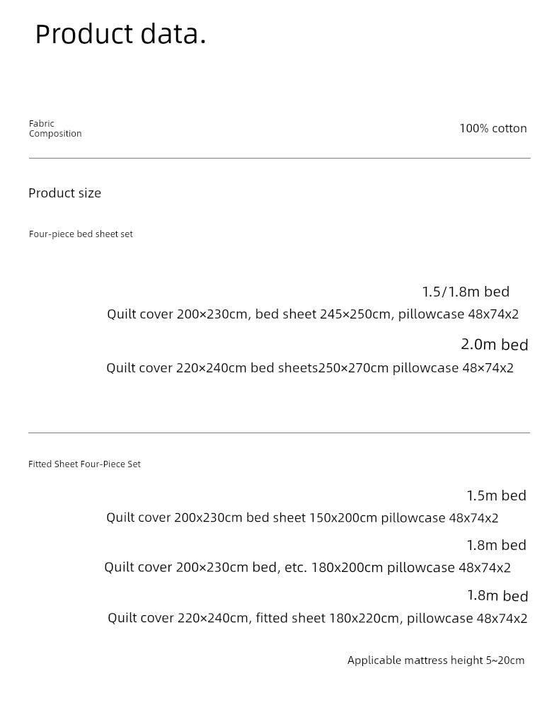 2.0m Bed Four-Piece Sheet Set (Quilt Cover 220*240Cm/Sheet 250*270Cm/Pillowcase 48*74cm*2)