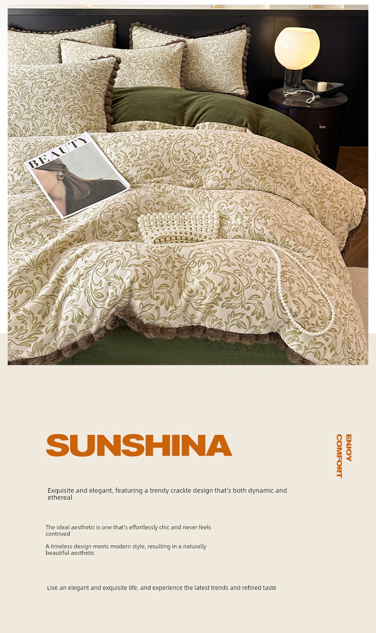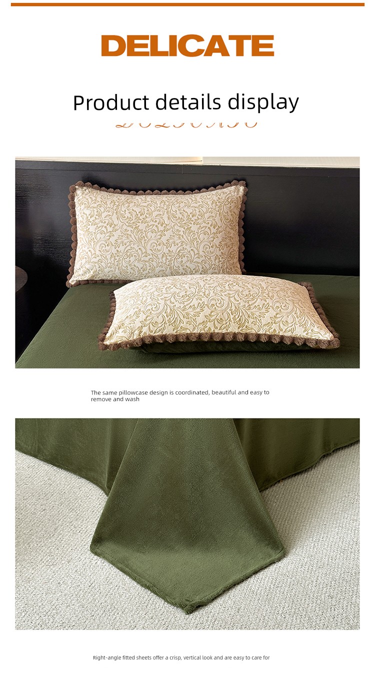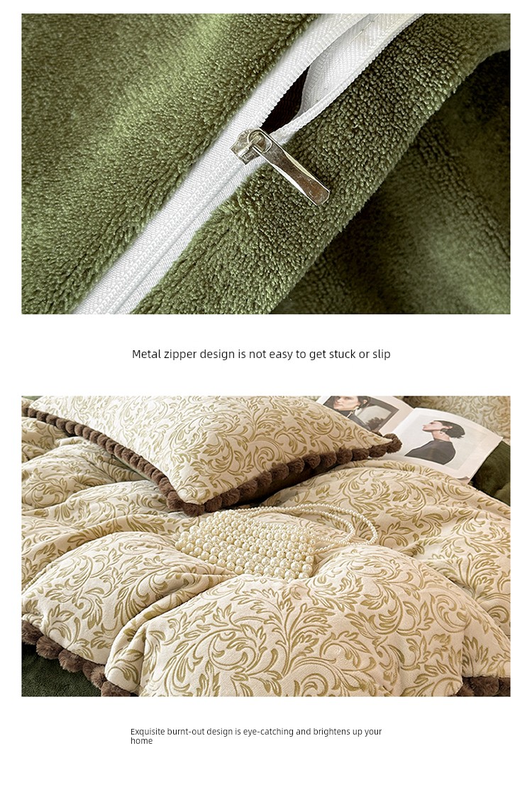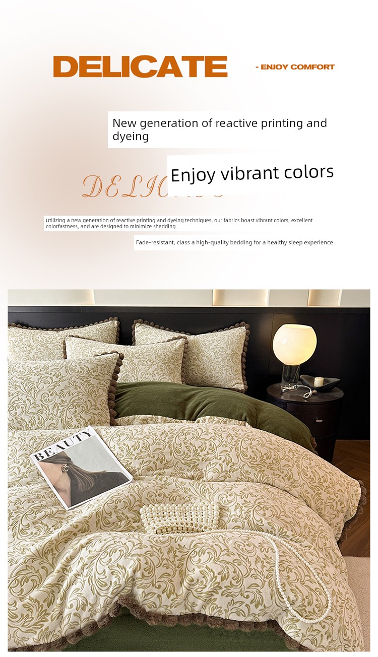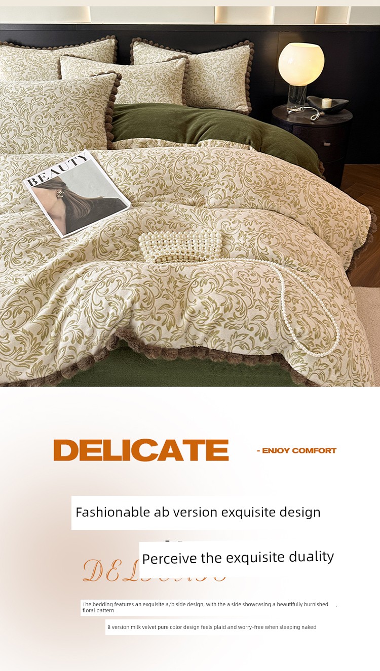 French-Style Rabbit Fur Ball Carved Milk Velvet Four-Piece Bedding Set for Winter, Coral Fleece Duvet Cover, Bed Sheet, Fitted Sheet, Three-Piece Set