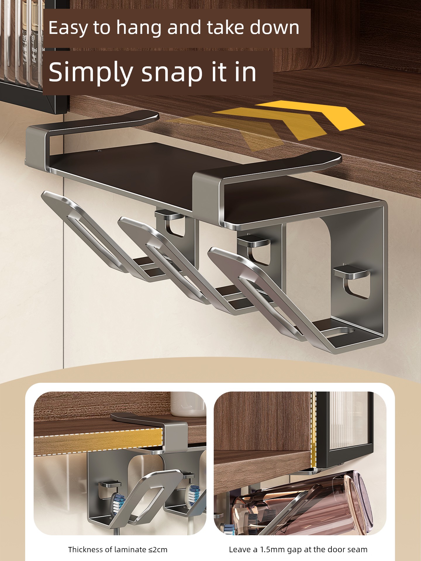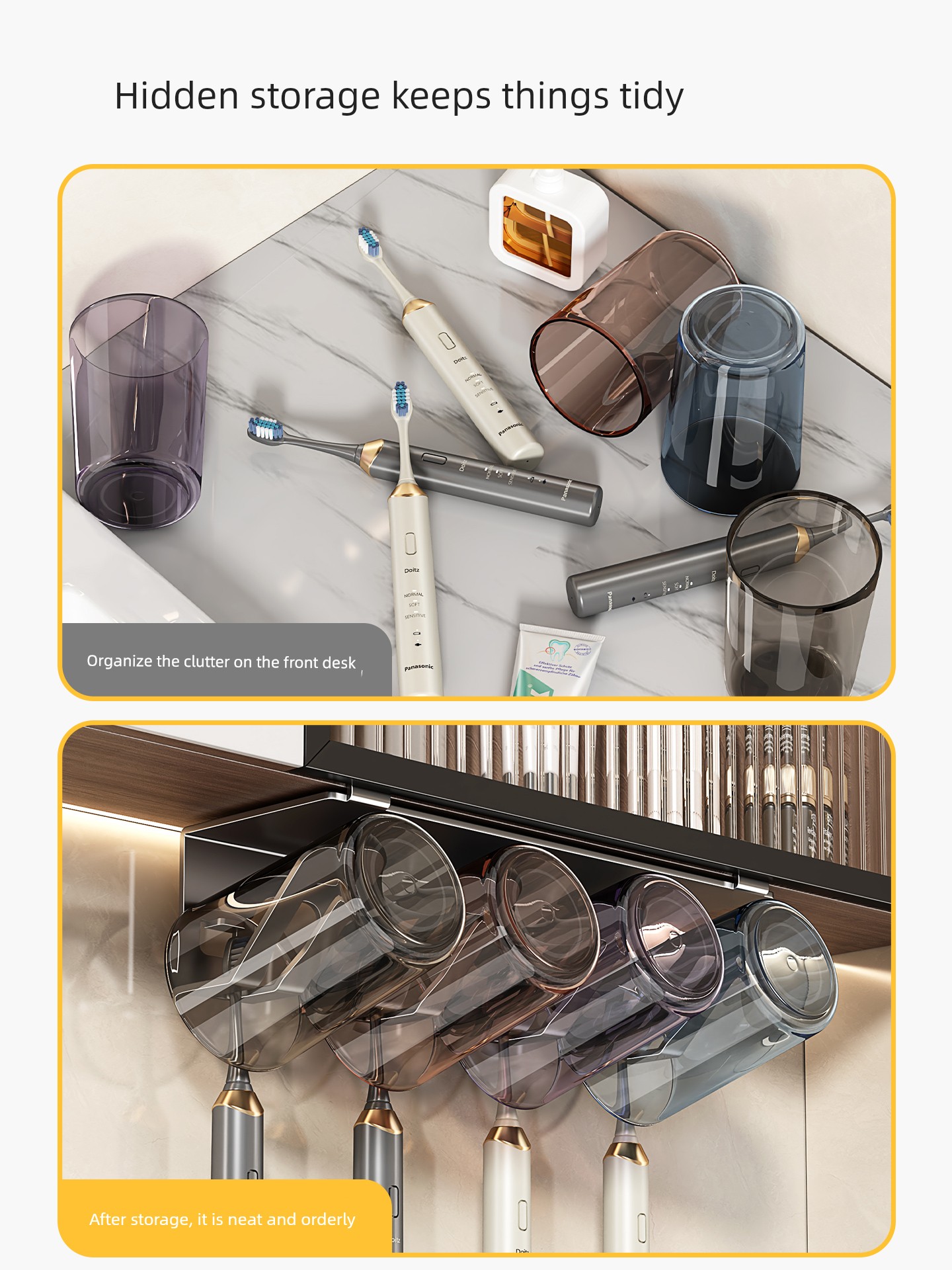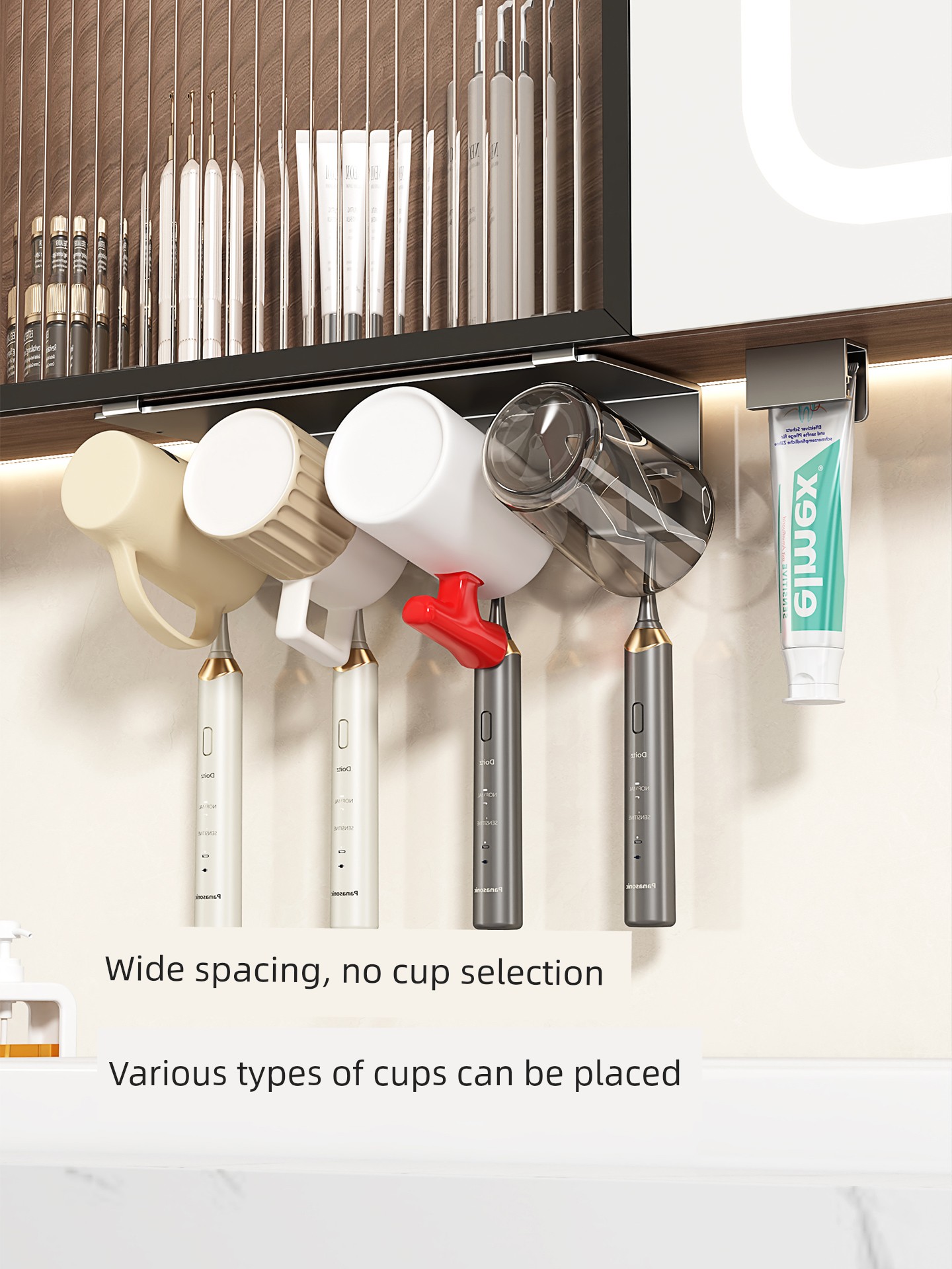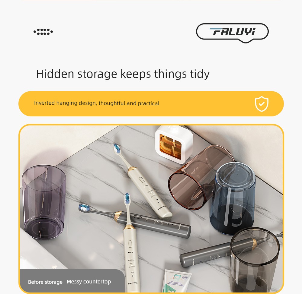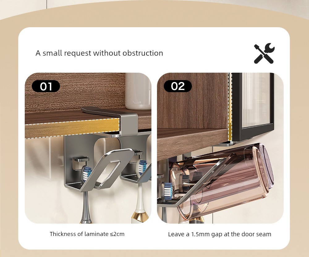 Toothbrush Holder under the Mirror Cabinet, No-Drill Bathroom Sink Wall-Mounted Mouthwash Cup, Toothbrush Cup, Electric Toothbrush Cup