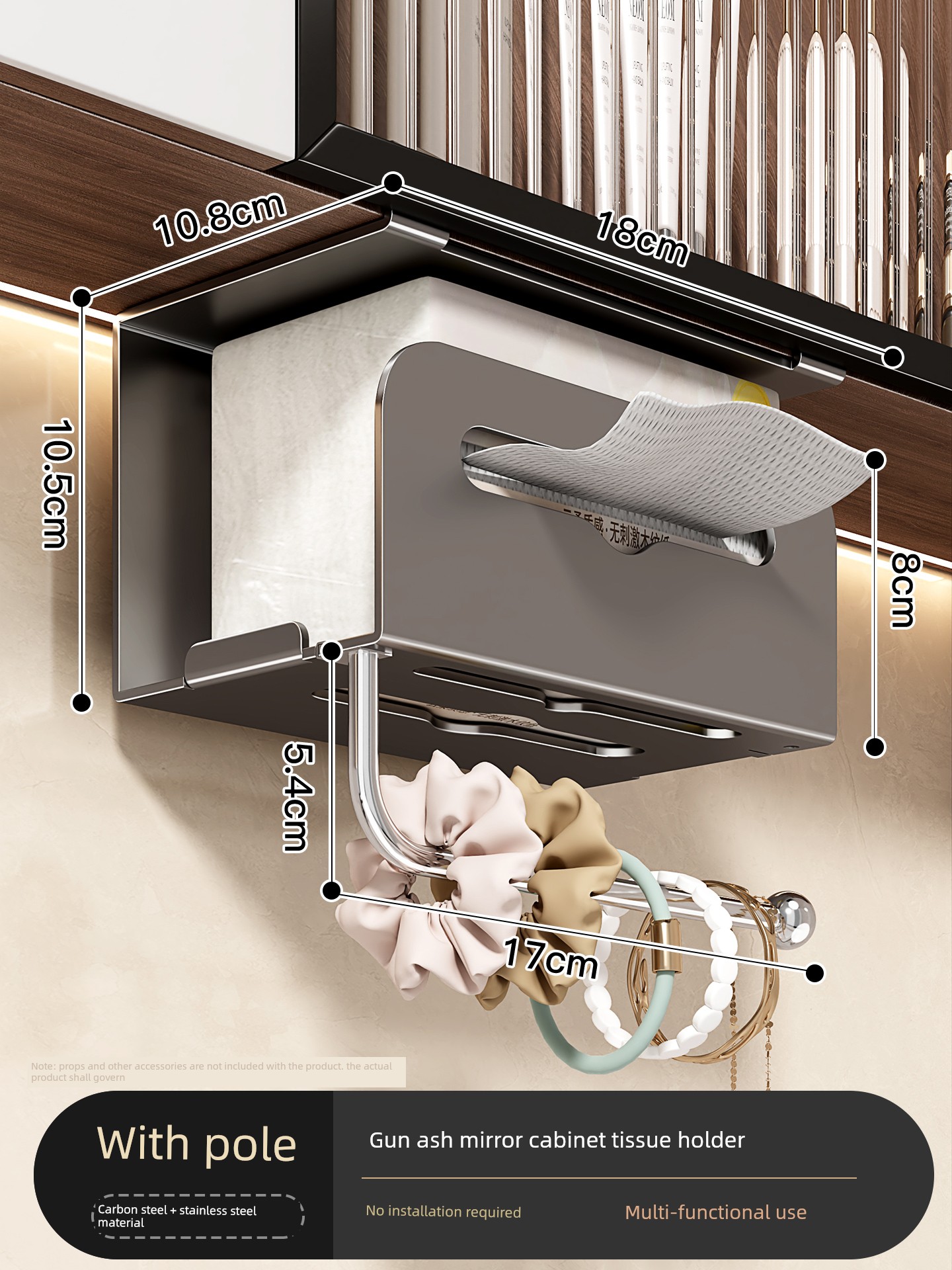 [Mirror Cabinet Tissue Holder] Gun Gray-With Rod