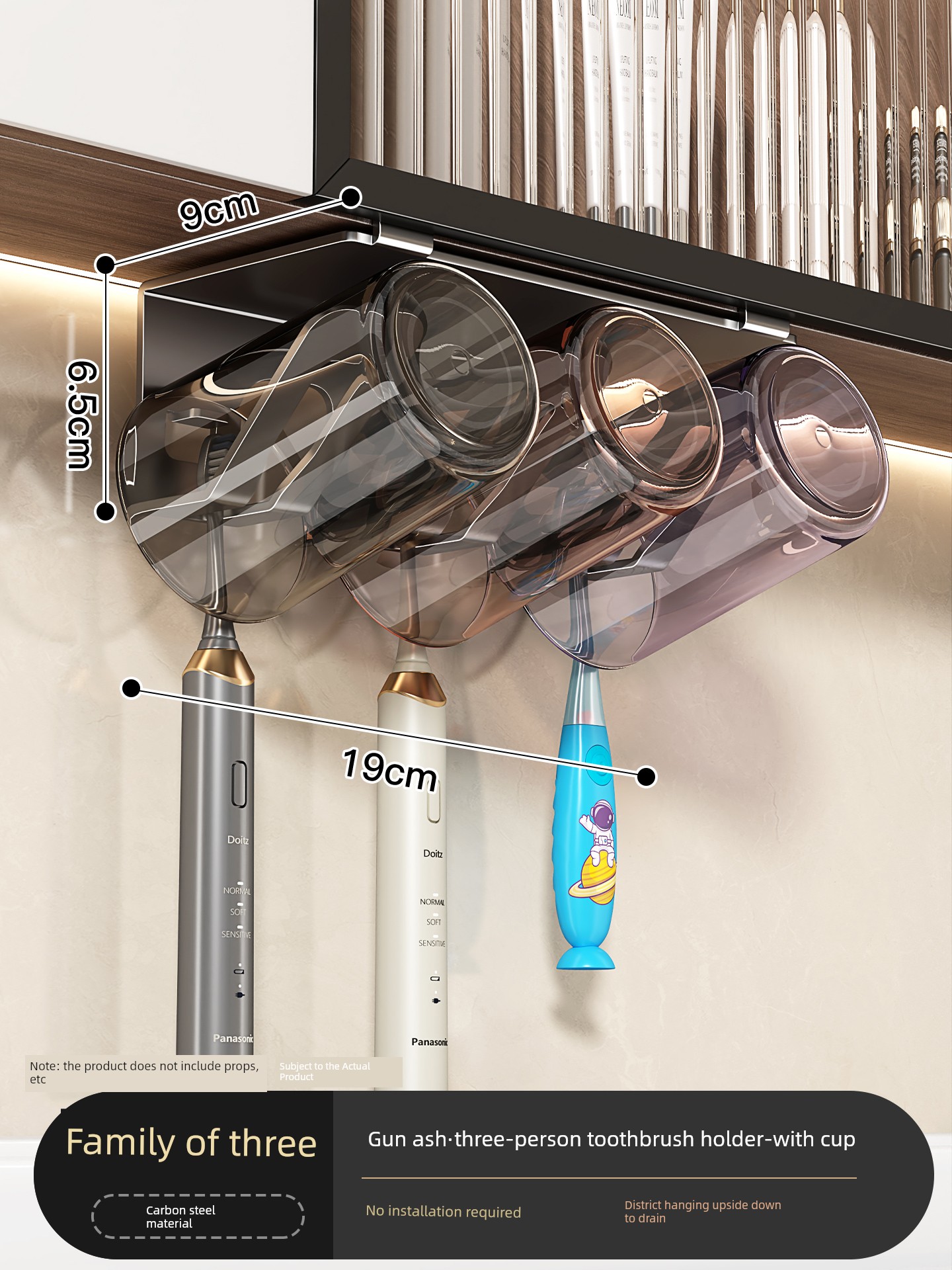 【Family of Three】Gunmetal Toothbrush Holder (Cup Not Included)