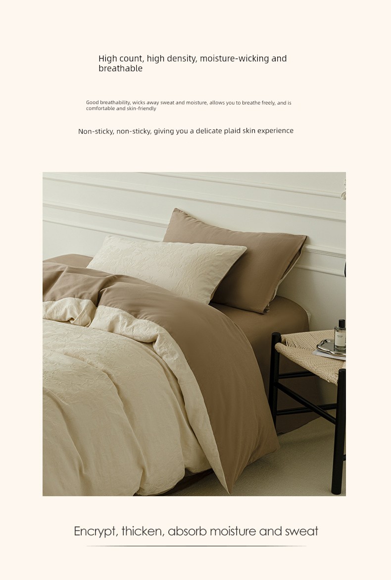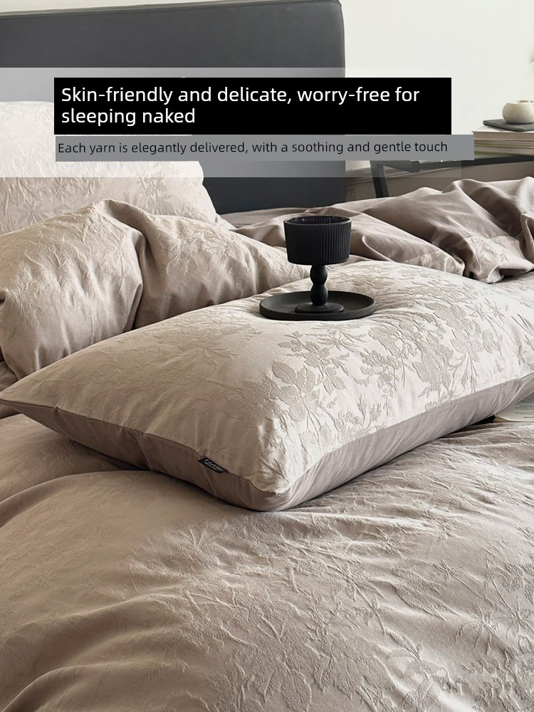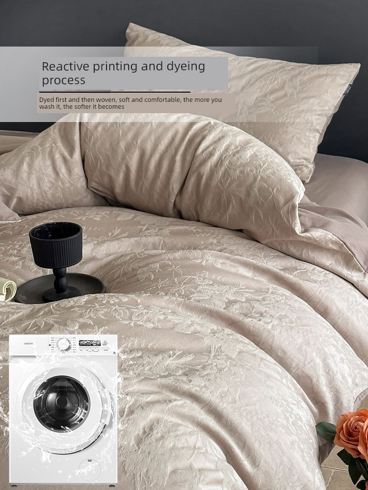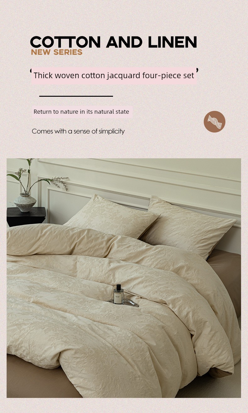 2025 New Style Simple Thickened All-Cotton Jacquard Four-Piece Bedding Set with a Light Luxury and High-End Feel, Including Bed Sheet and Fitted Sheet Three-Piece Set
