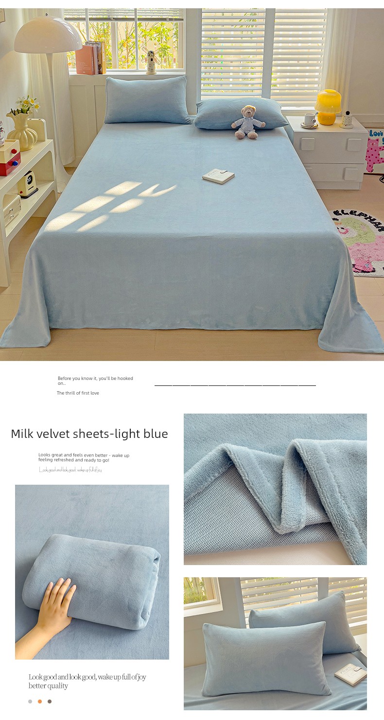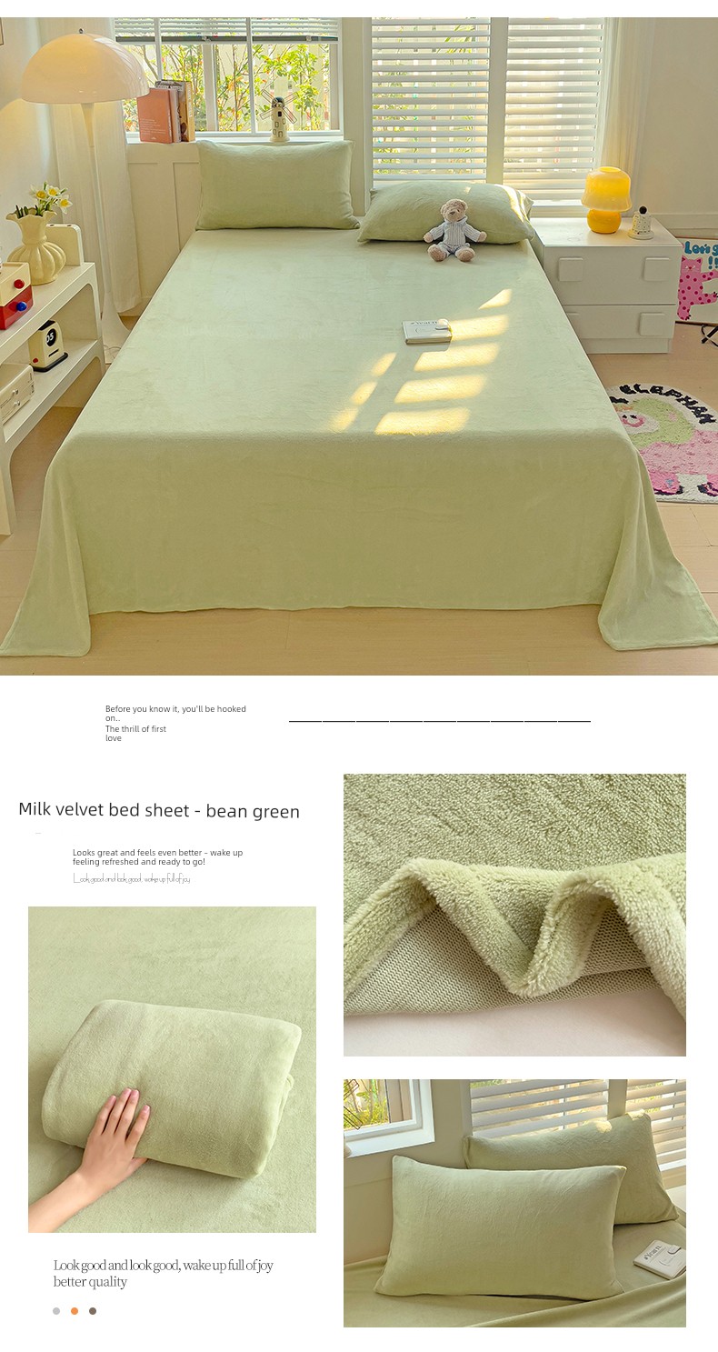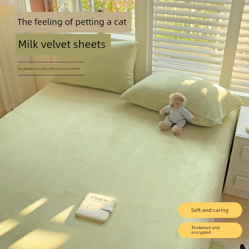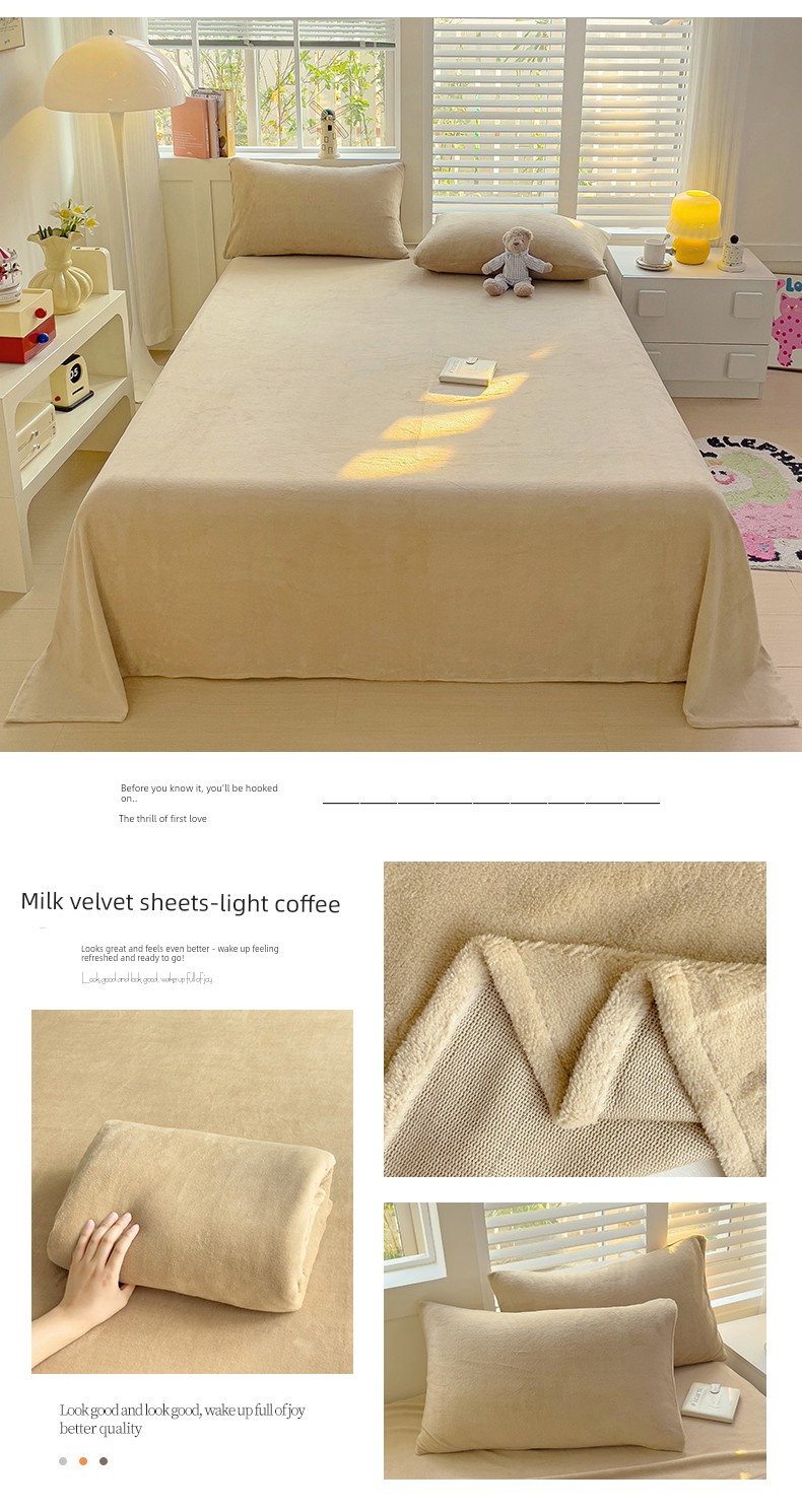 Muji Milk Velvet Bed Sheet Single Piece Fleece-Lined Thickened Autumn and Winter Flannel Coral Fleece Fitted Sheet Three-Piece Set Blanket