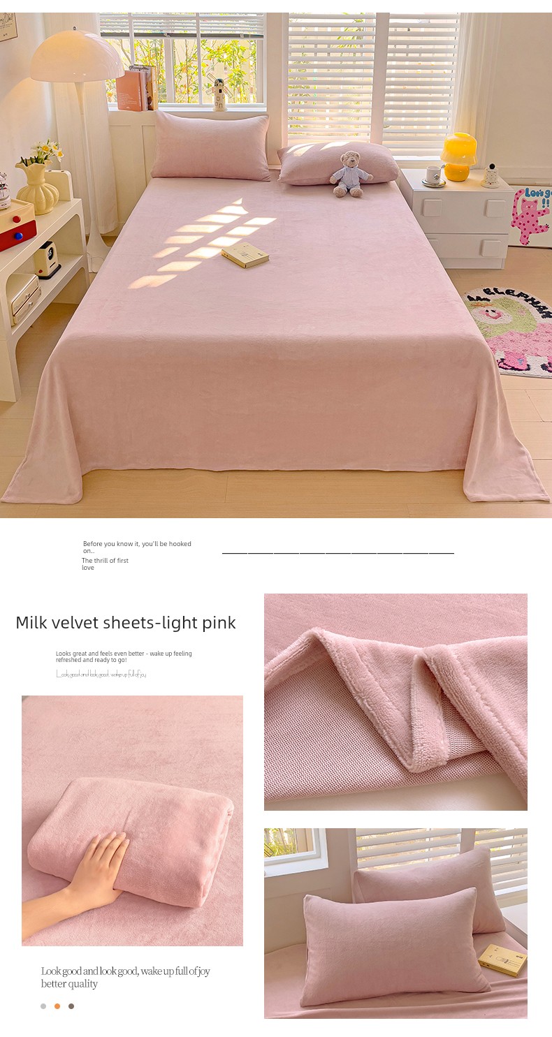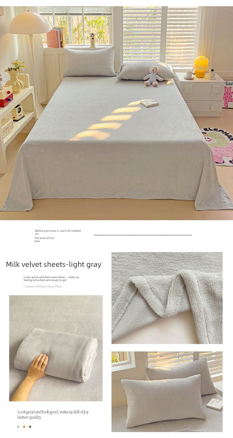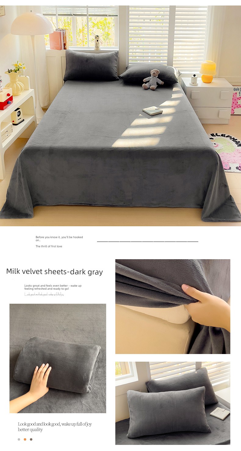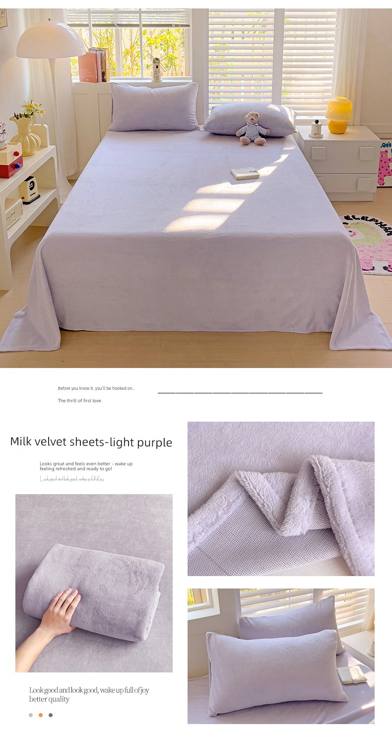 Muji Milk Velvet Bed Sheet Single Piece Fleece-Lined Thickened Autumn and Winter Flannel Coral Fleece Fitted Sheet Three-Piece Set Blanket
