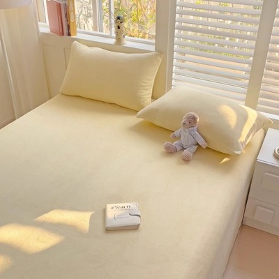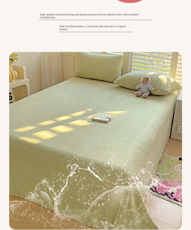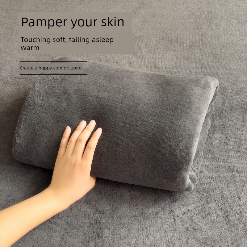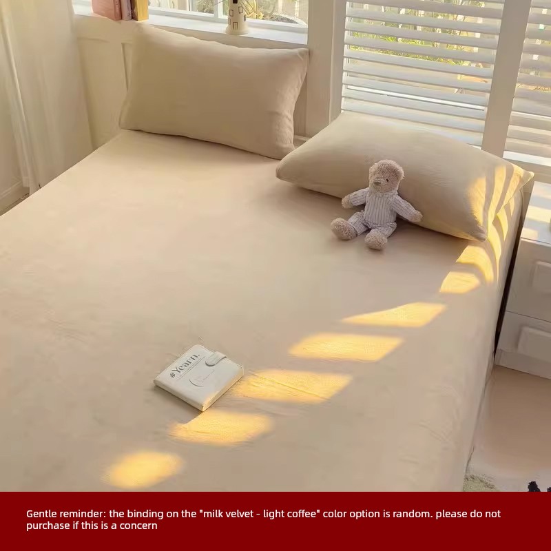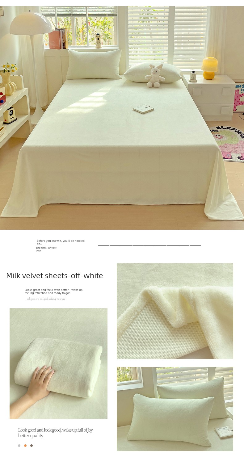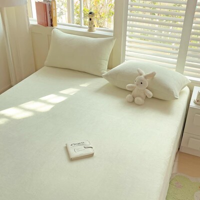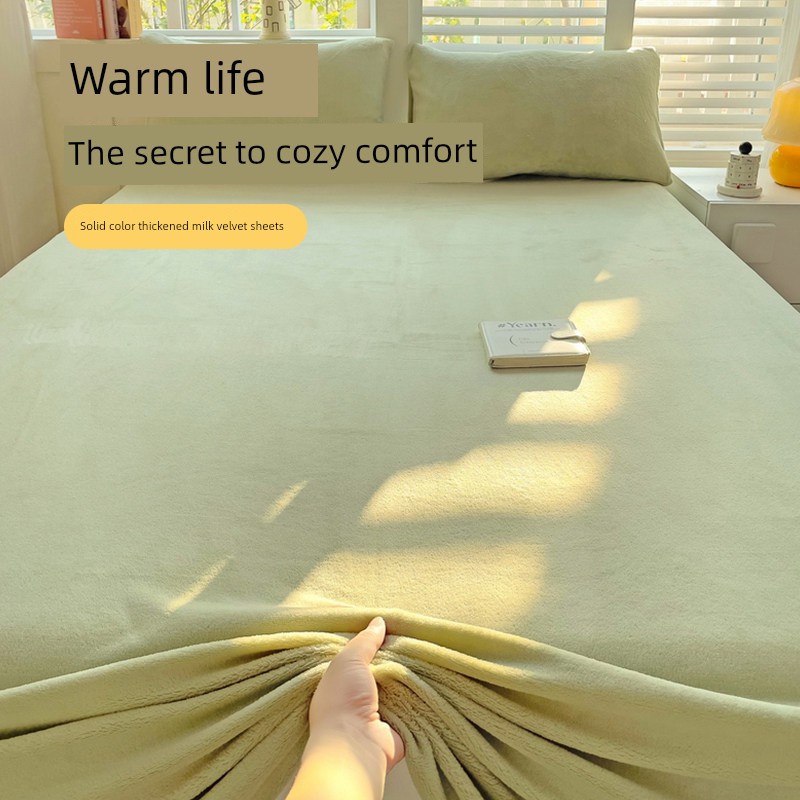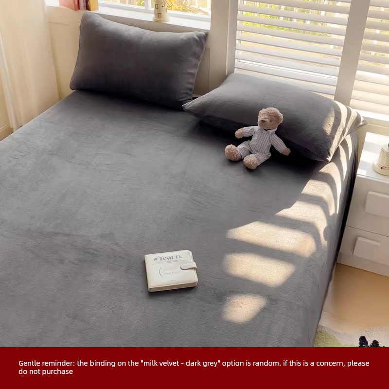 Muji Milk Velvet Bed Sheet Single Piece Fleece-Lined Thickened Autumn and Winter Flannel Coral Fleece Fitted Sheet Three-Piece Set Blanket