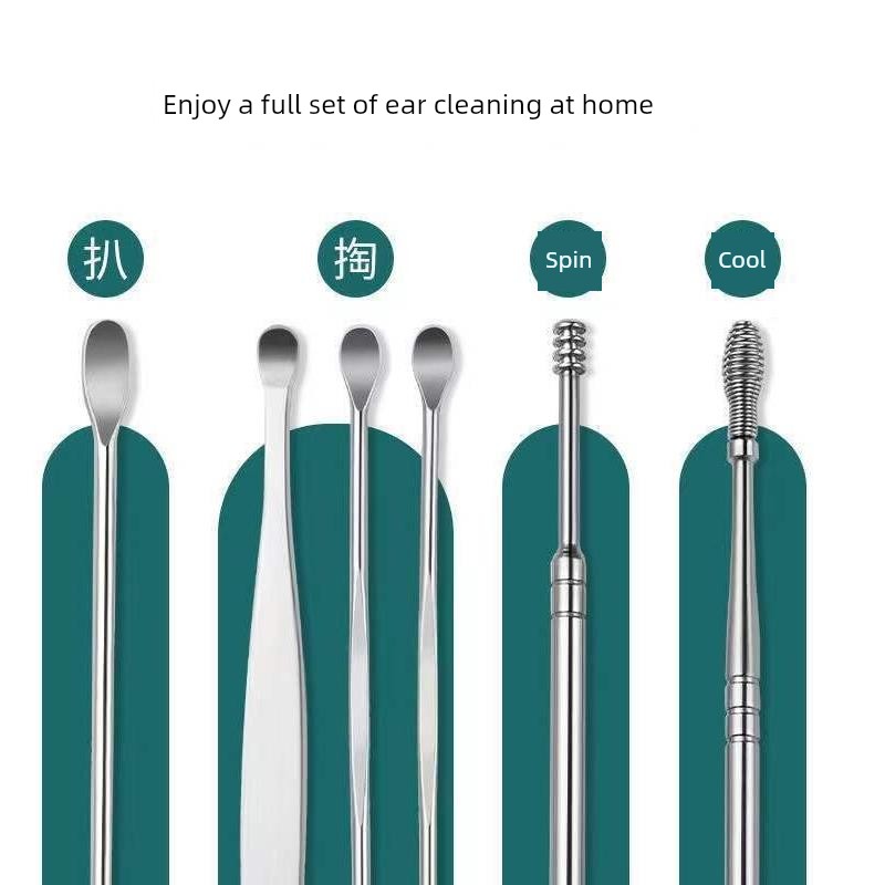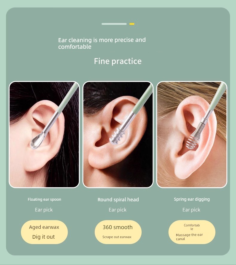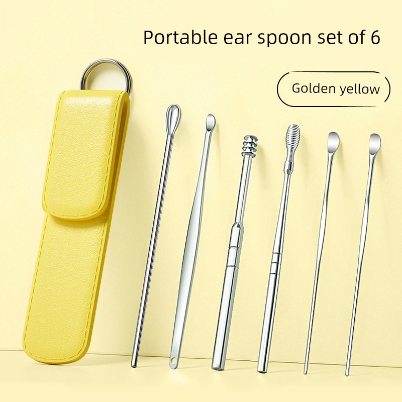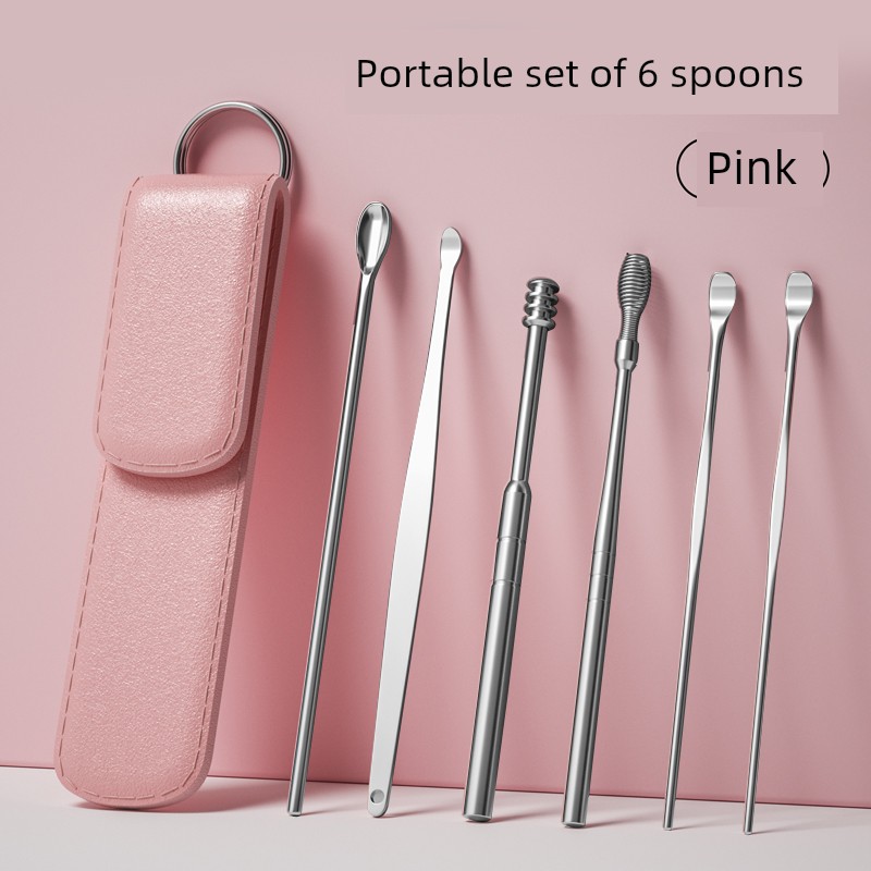 6-Piece Ear Cleaning Set for Adults, Household Ear Picking Tools, Spiral Ear Scoop Set, Luminous Earwax Removal Tool