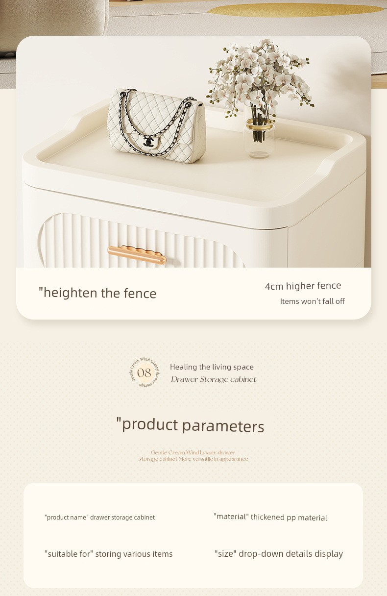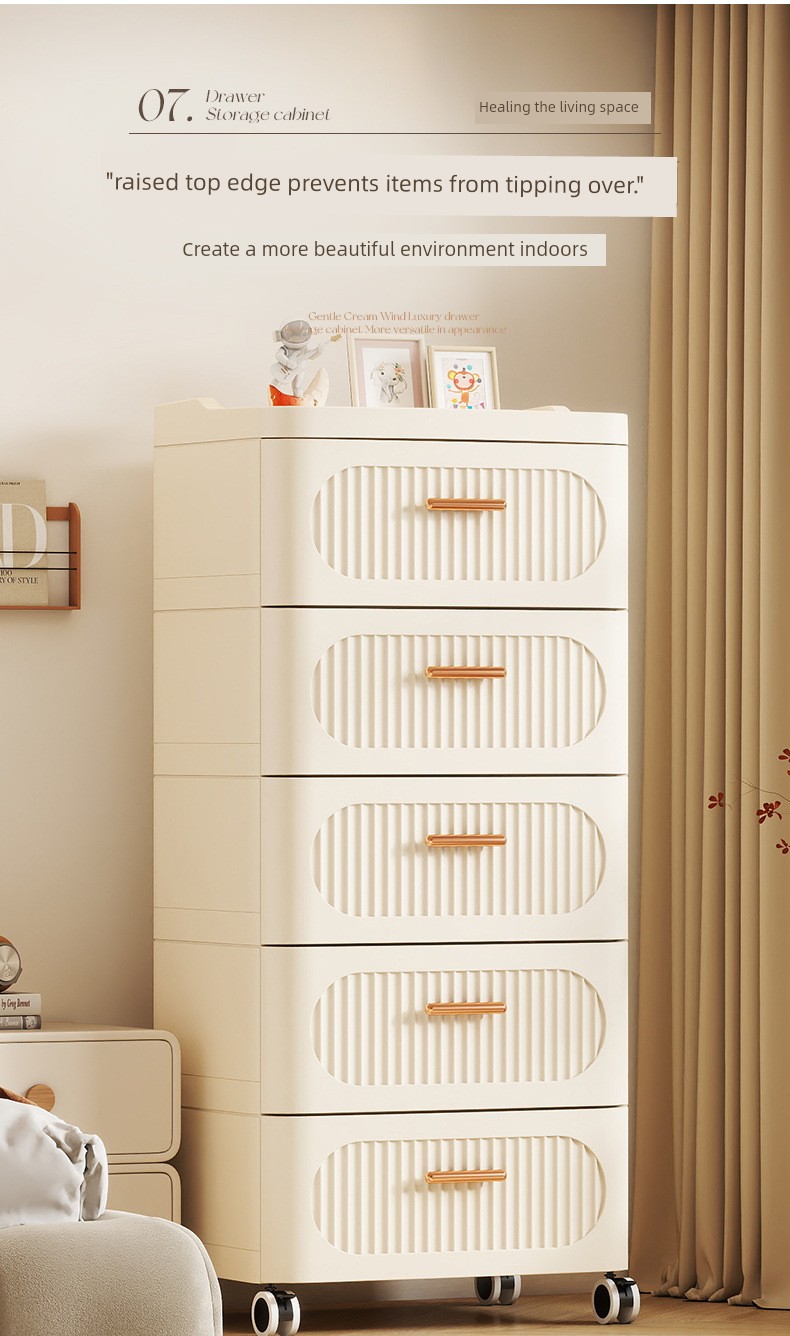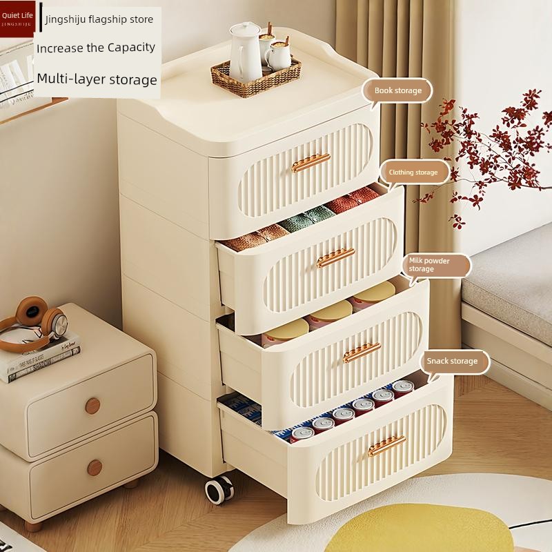 Light Luxury Drawer-Type Storage Cabinet, Living Room Chest of Drawers, Home Bedroom Bedside Storage Cabinet, Movable Snack Storage Cabinet