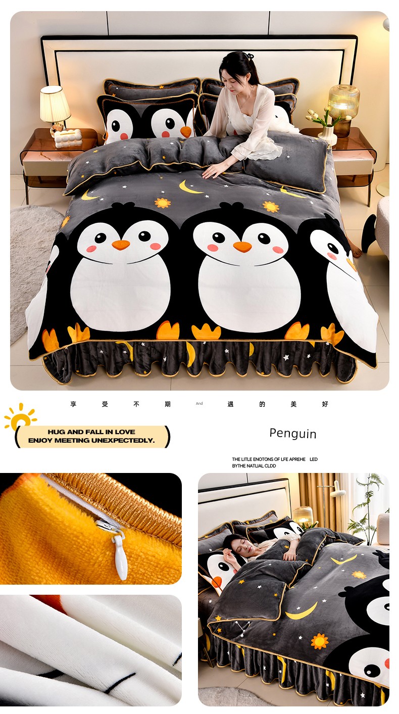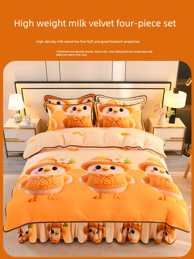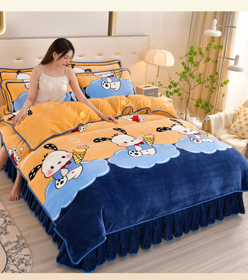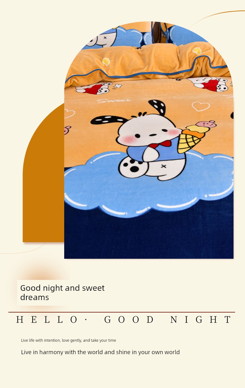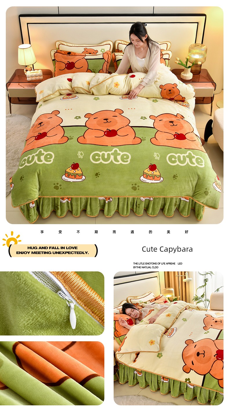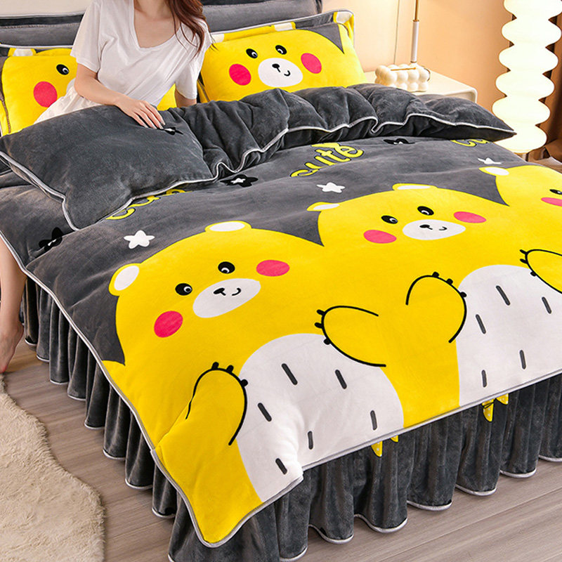 Cartoon Cute Milk Velvet Duvet Cover Single Piece Winter Double-Sided Thickened Baby Coral Velvet Student Single Duvet Cover 1.5m