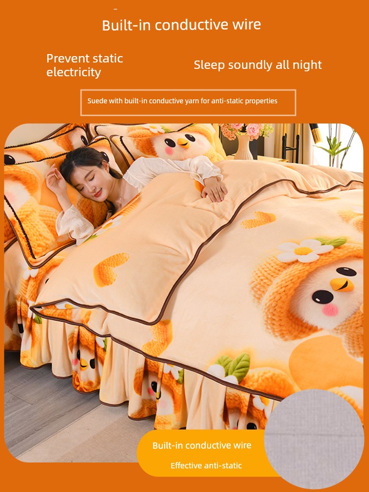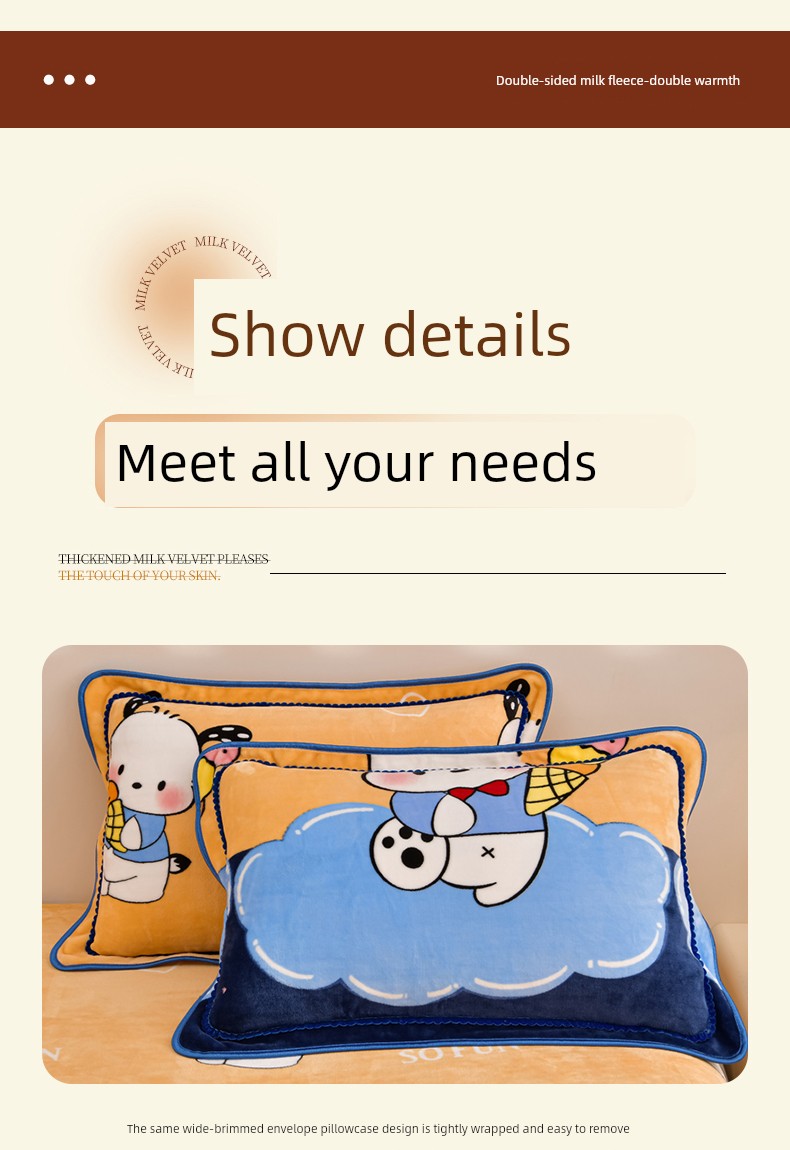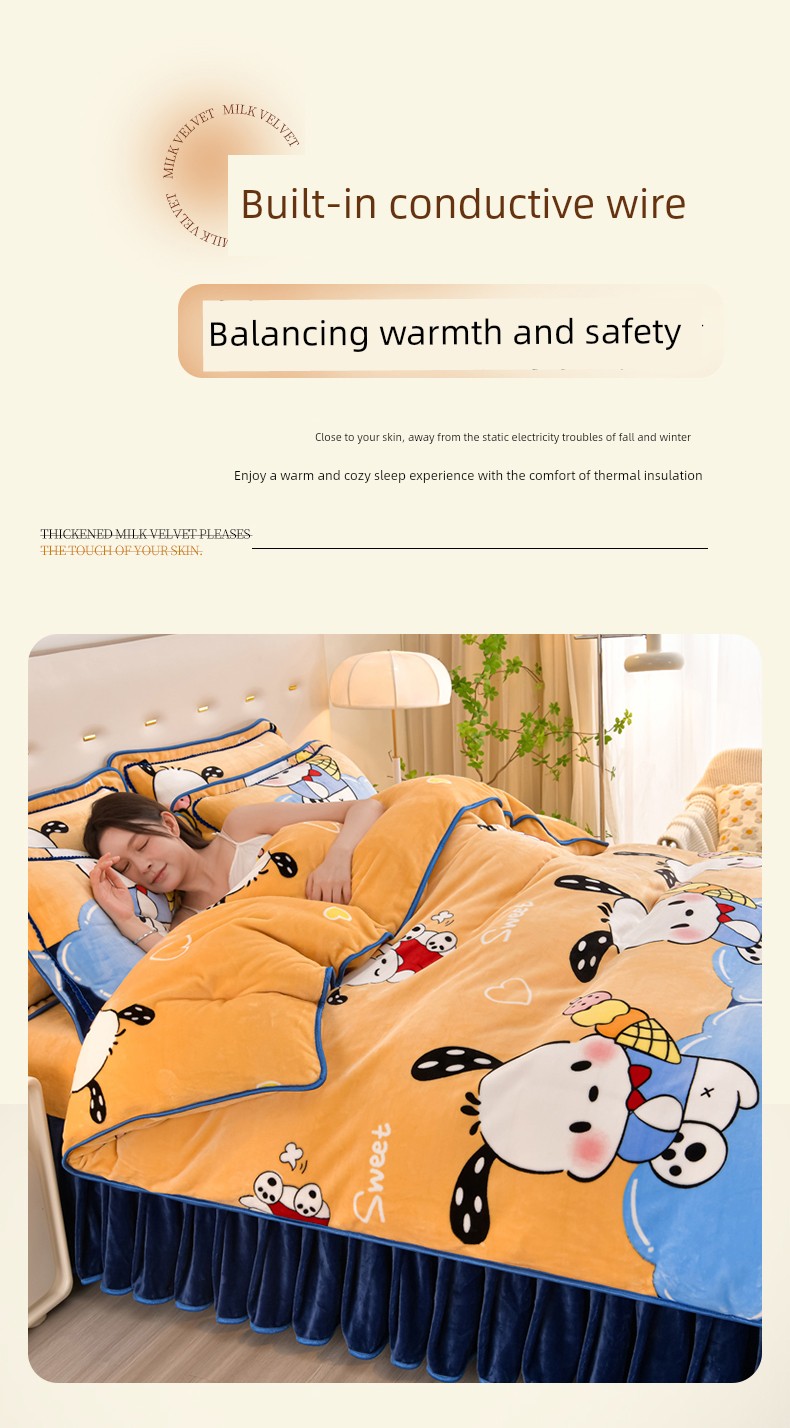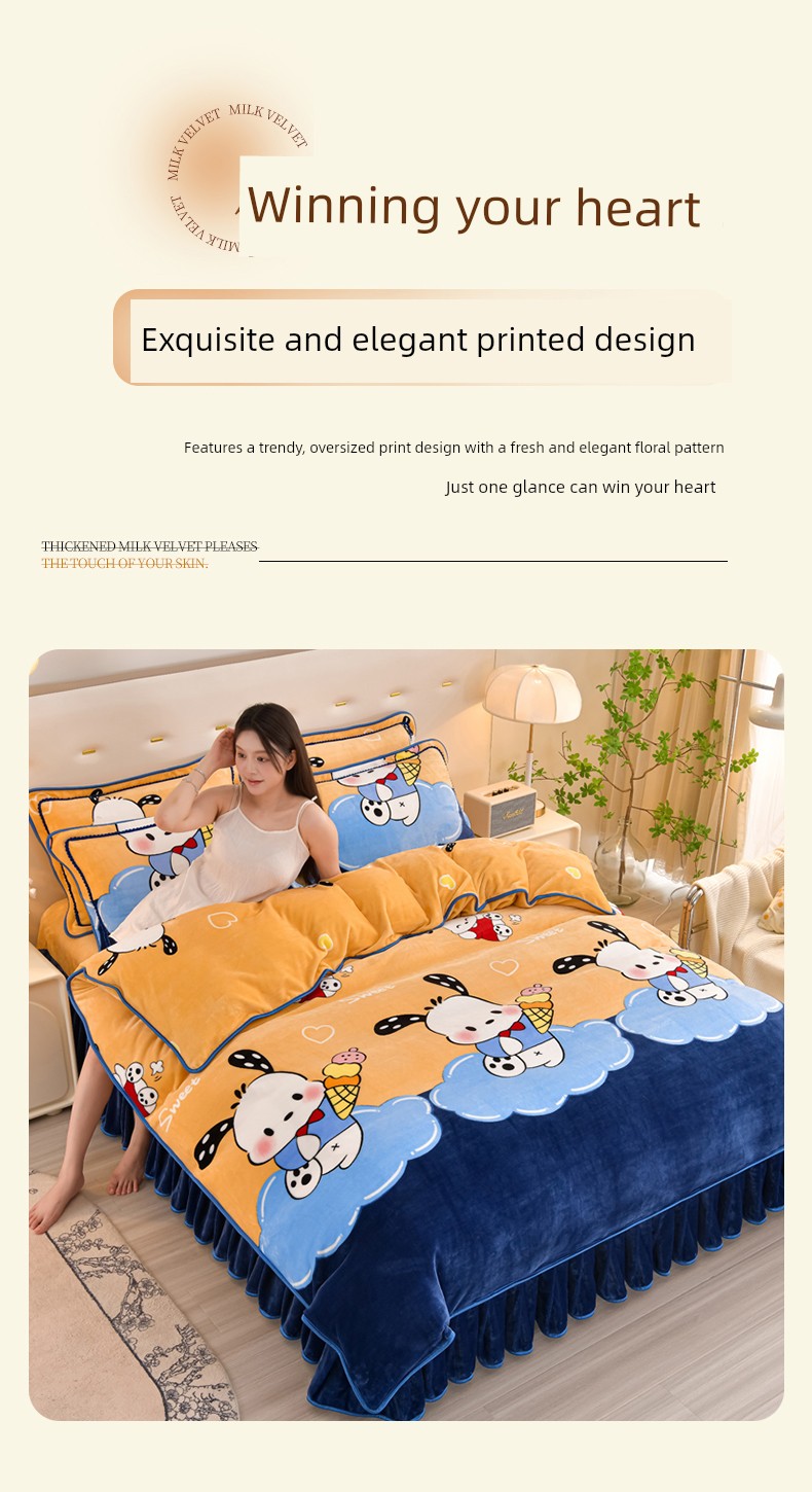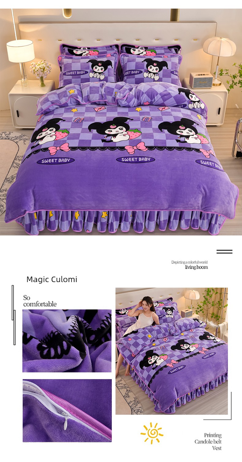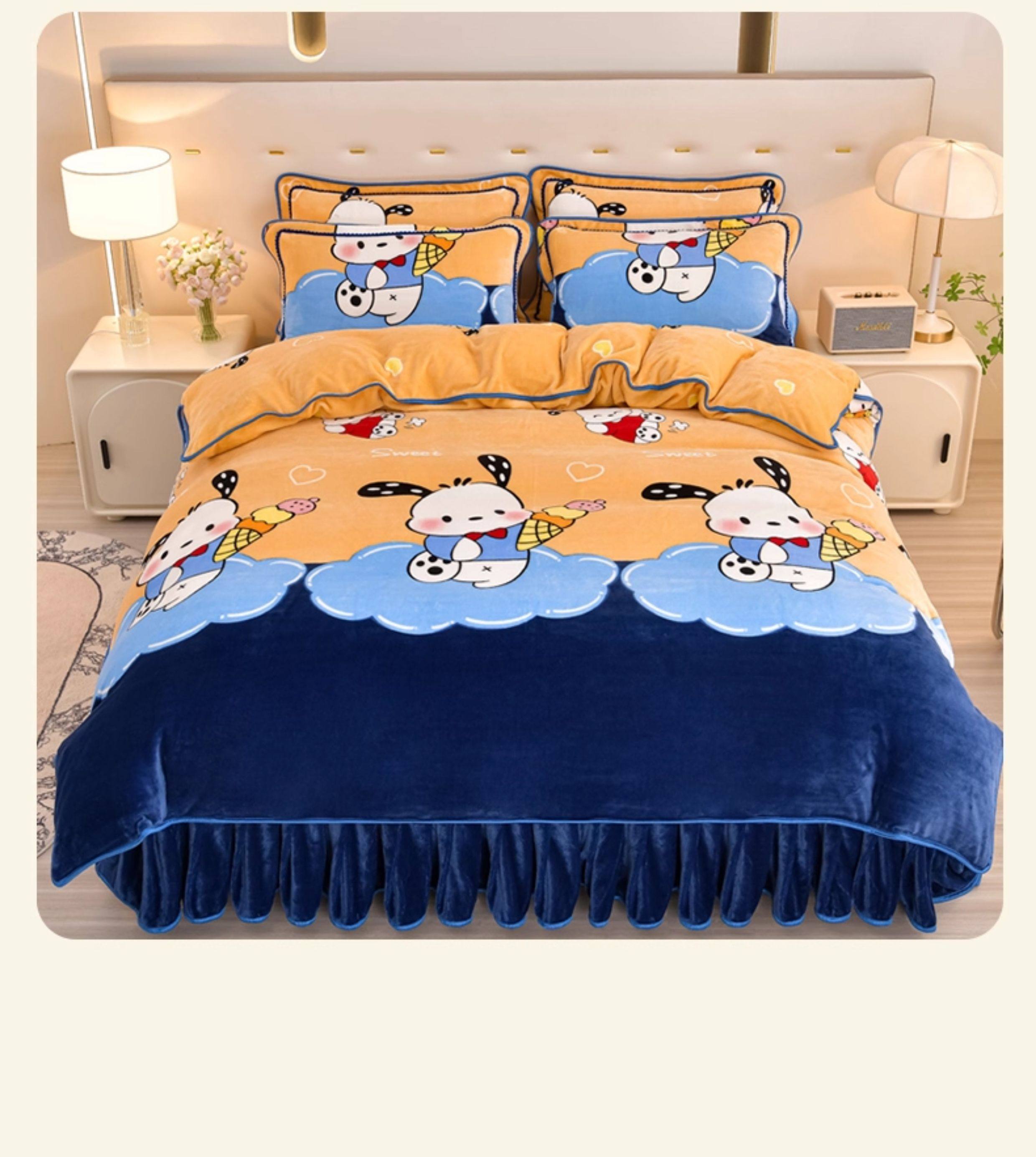 Cartoon Cute Milk Velvet Duvet Cover Single Piece Winter Double-Sided Thickened Baby Coral Velvet Student Single Duvet Cover 1.5m