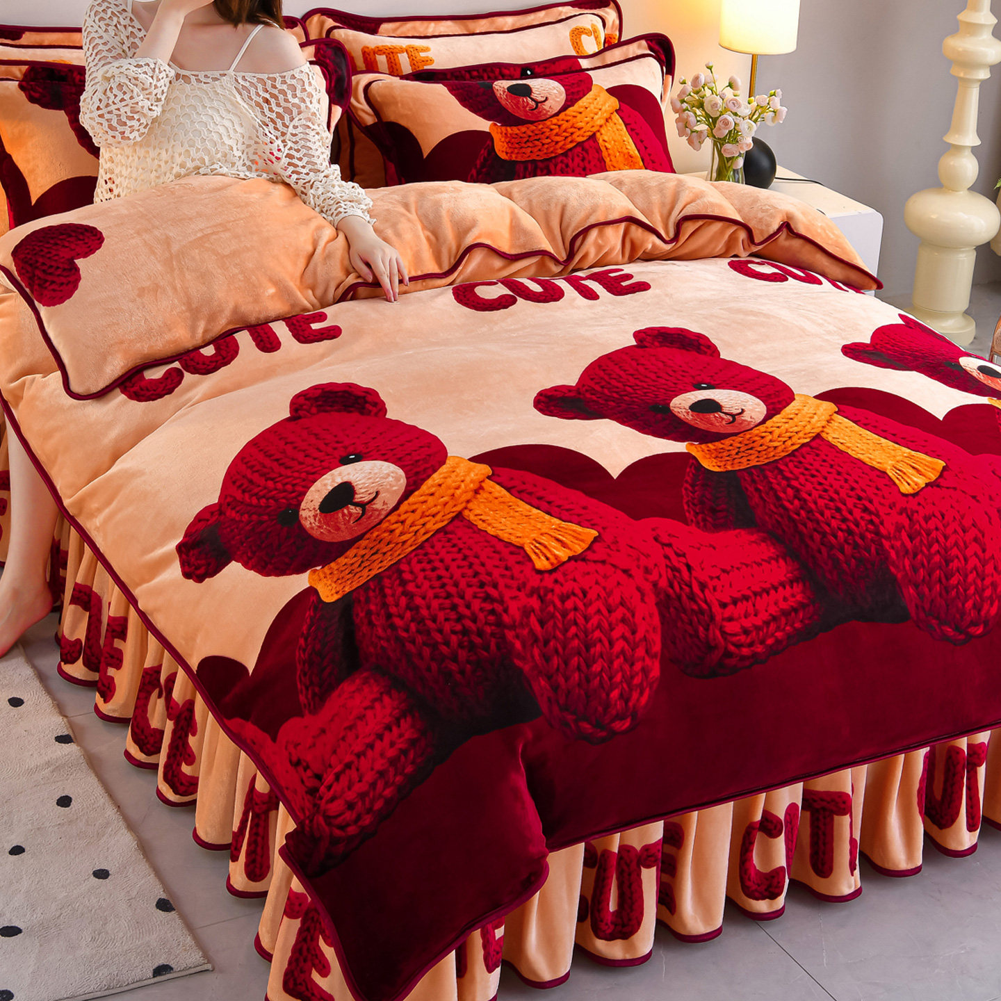 Milk Velvet Quilt Cover: 180*220cm + Pair of Pillowcases