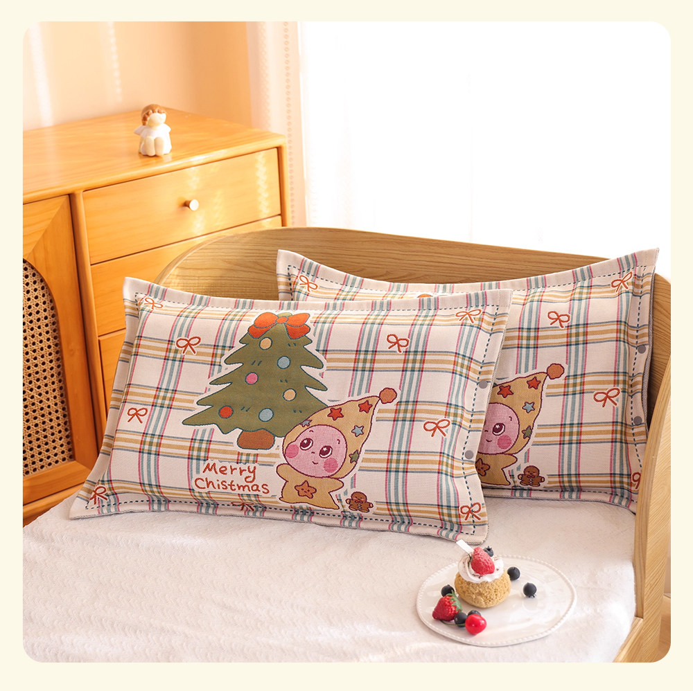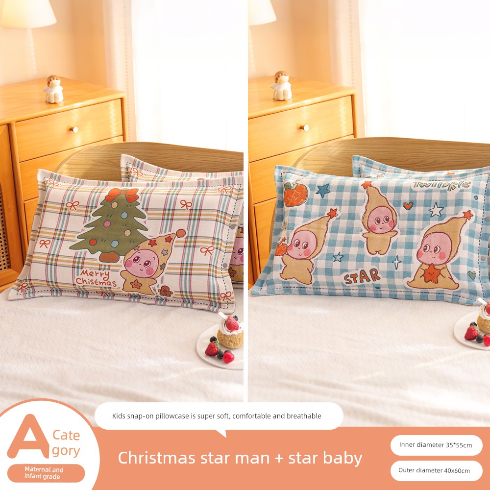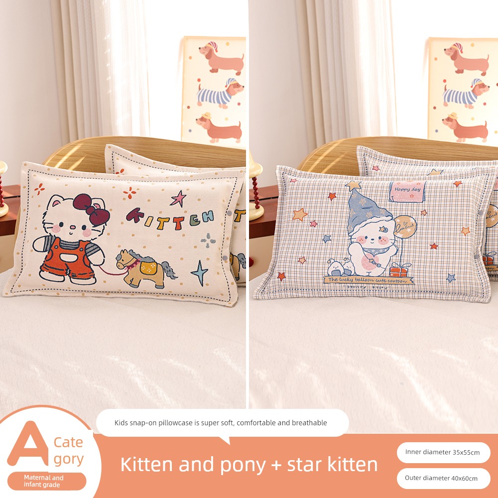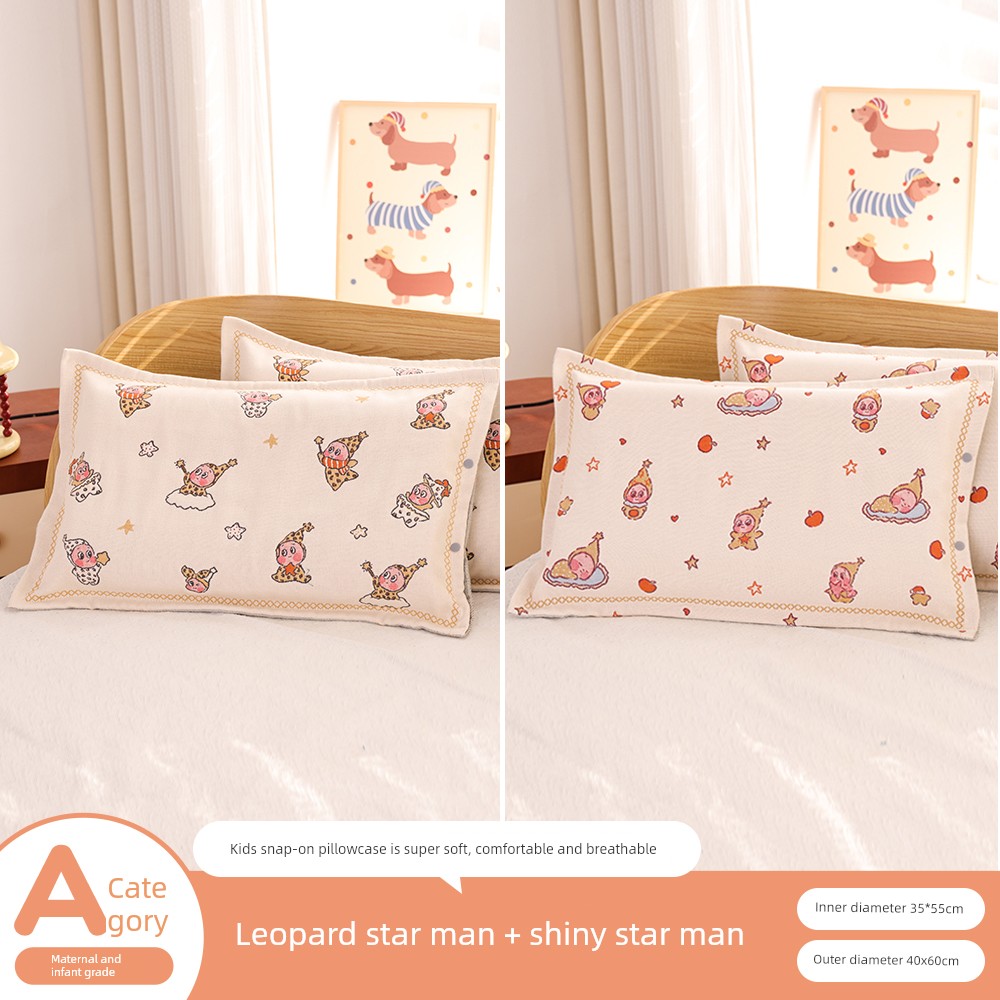 Snap-Button Pure Cotton Gauze Cartoon Children's Pillowcase, All-Cotton, Fully Enclosed, Baby Home Use, Thickened, Soft Pillow Core Inner Cover