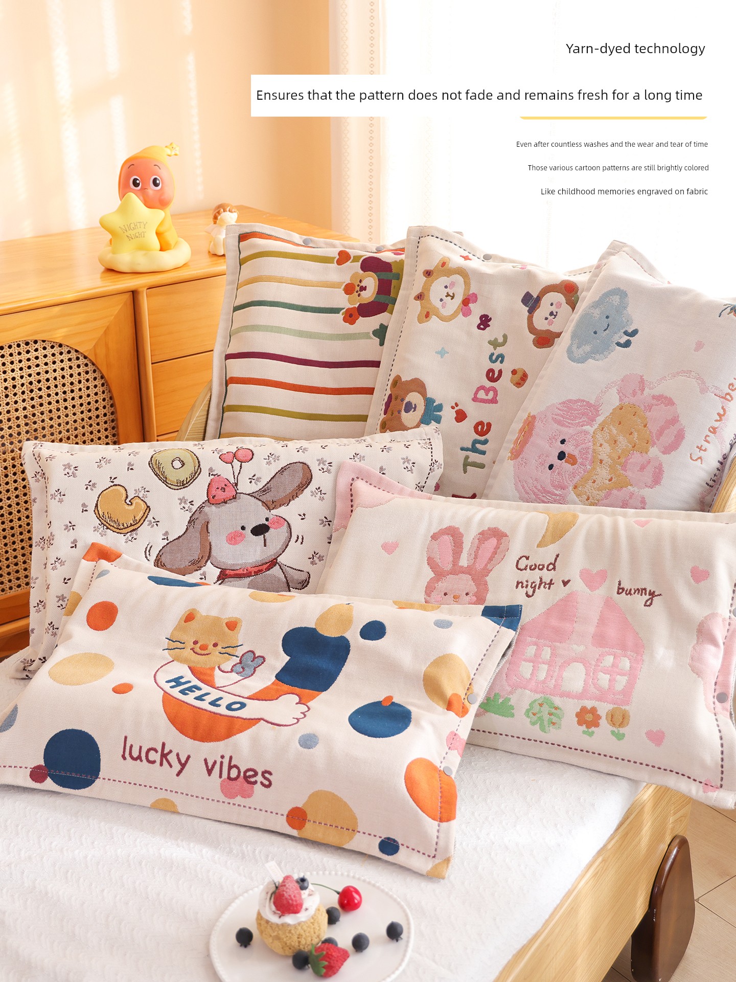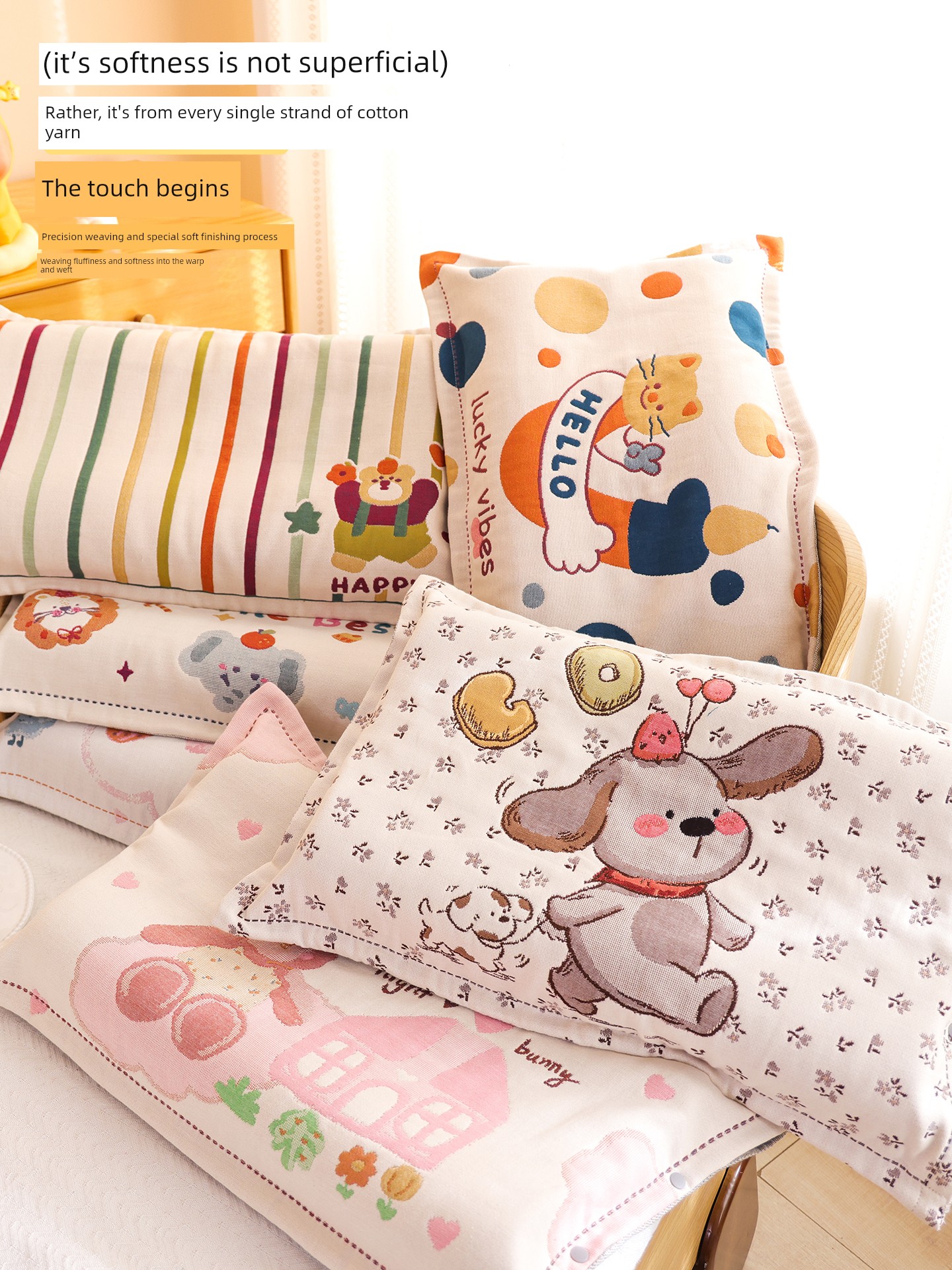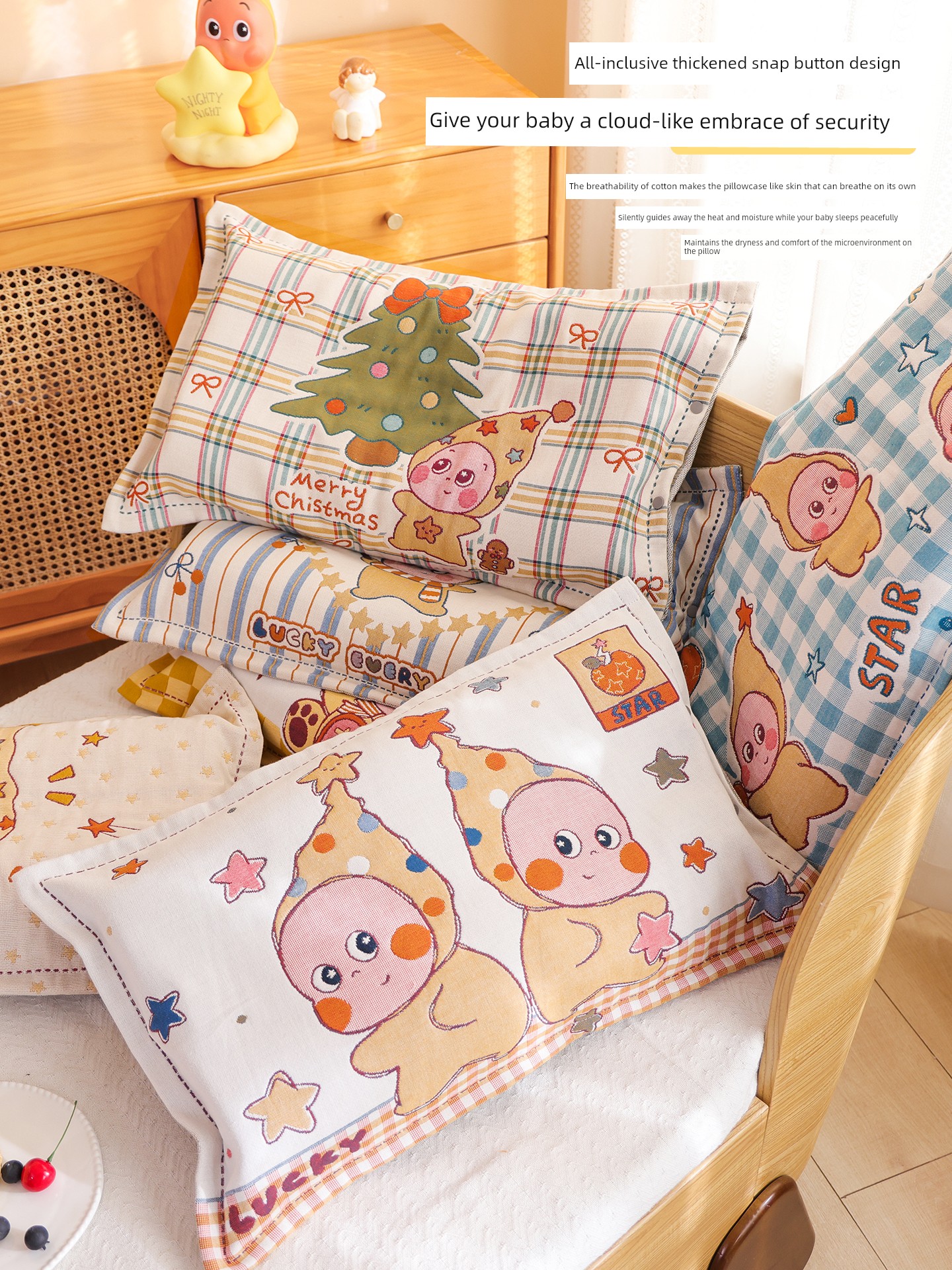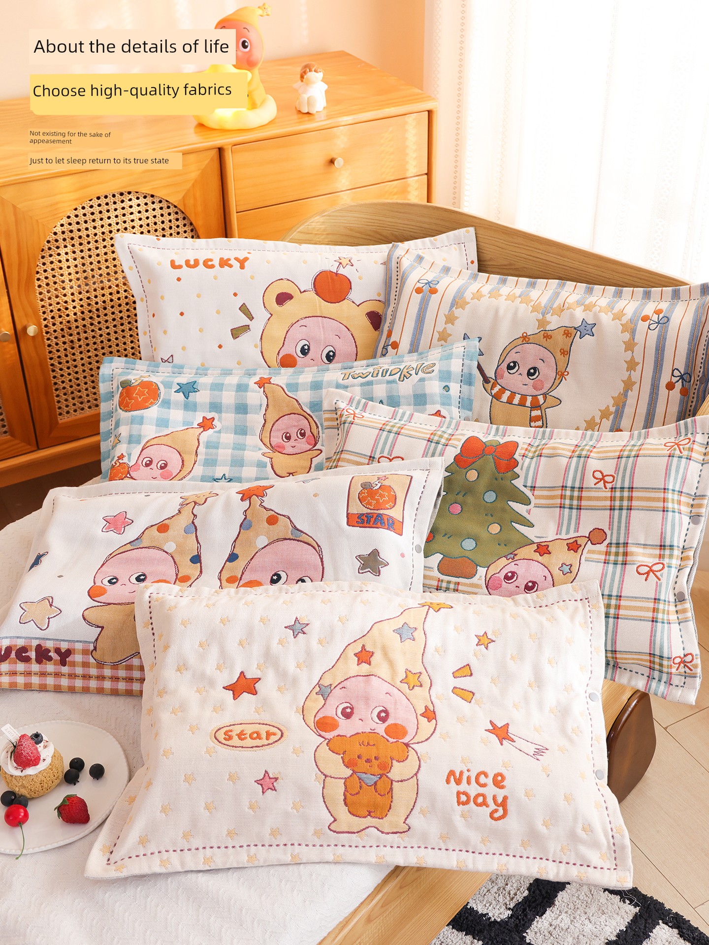 Snap-Button Pure Cotton Gauze Cartoon Children's Pillowcase, All-Cotton, Fully Enclosed, Baby Home Use, Thickened, Soft Pillow Core Inner Cover