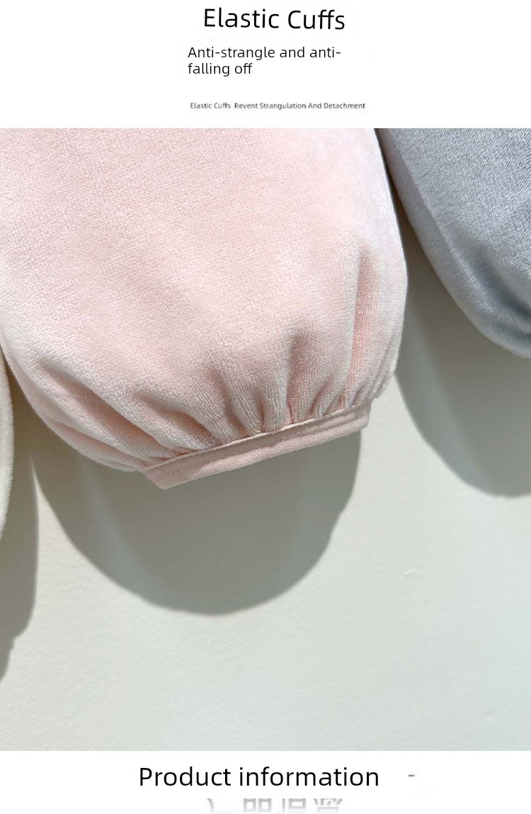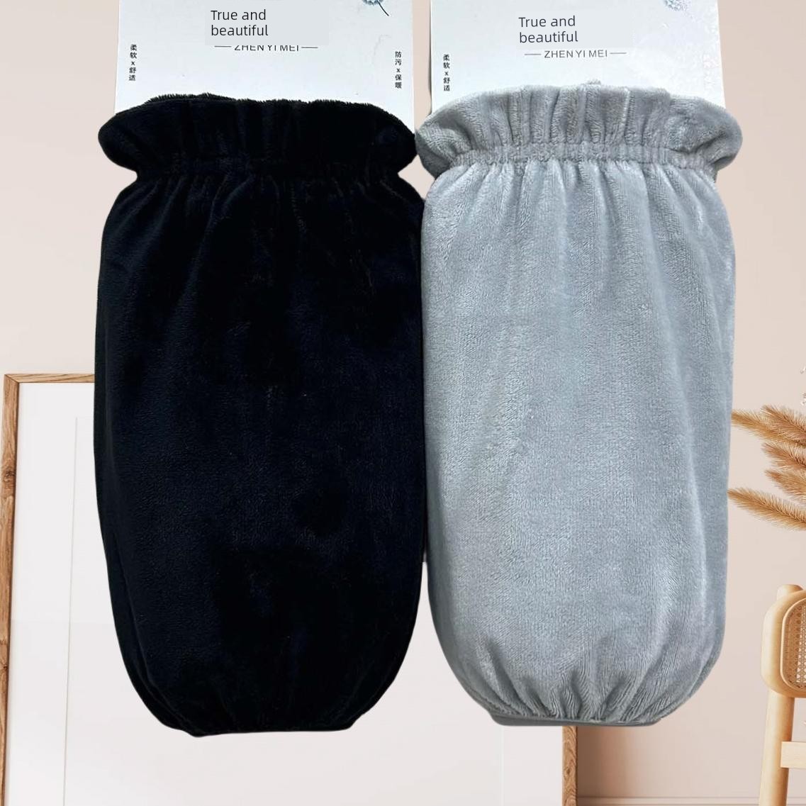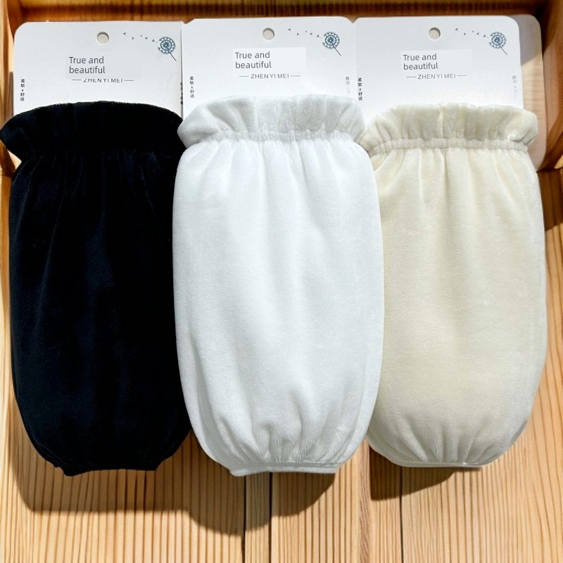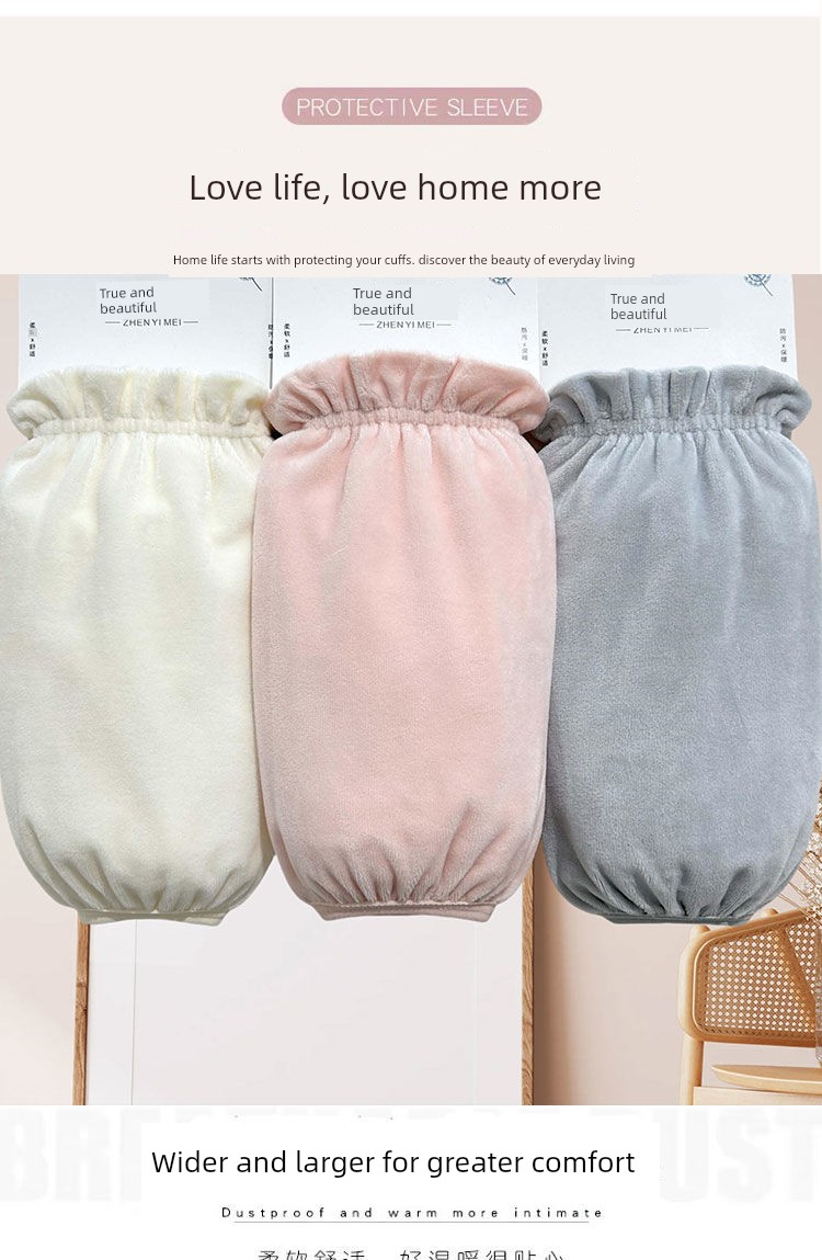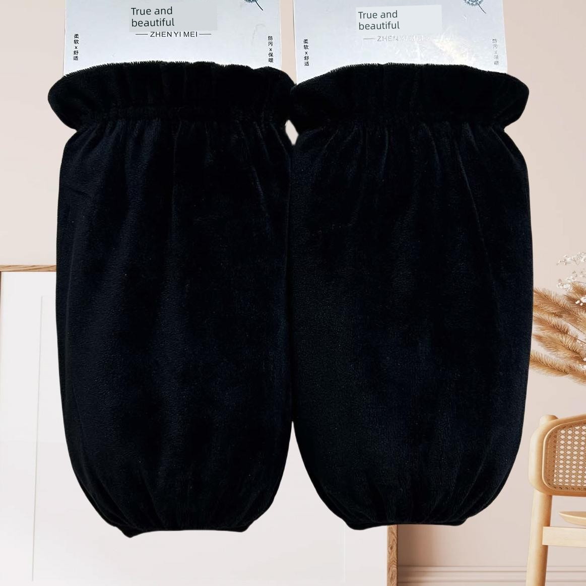 Autumn and Winter Adult Oversleeves Women Short Plush Office Antifouling Sleeve Cap Sleeves Down jacket Student Oversleeves Beige Black and White