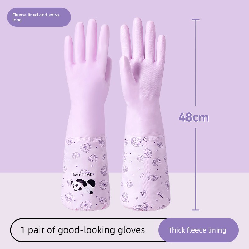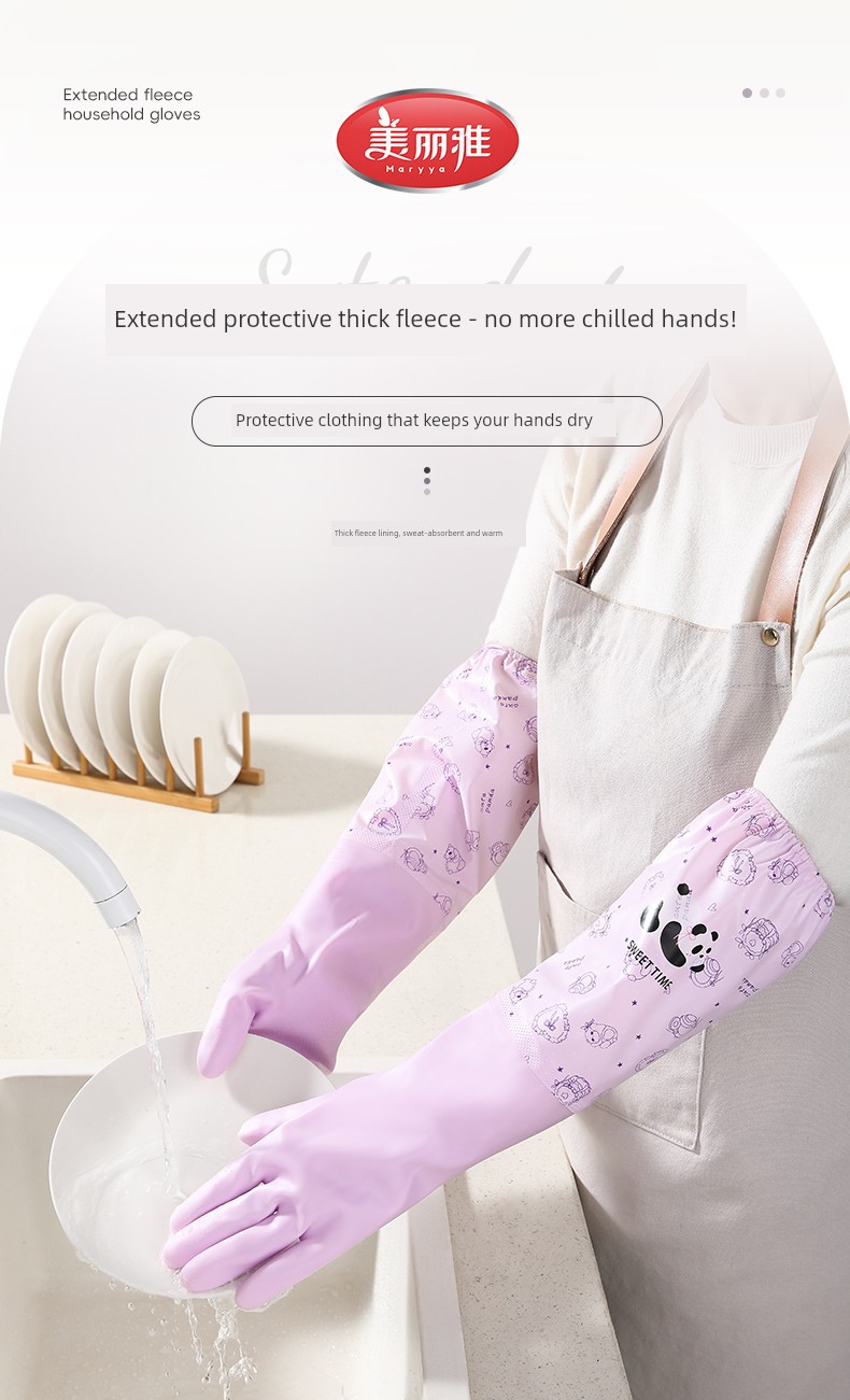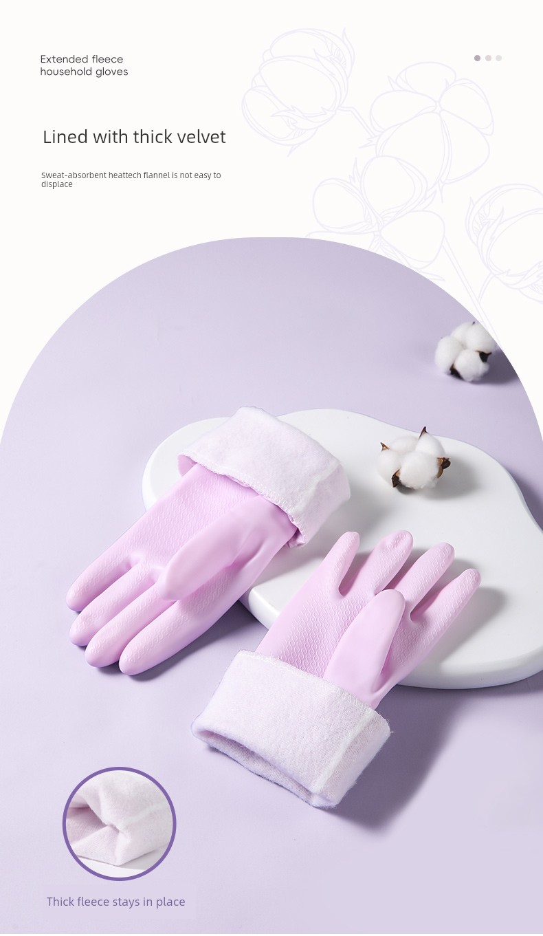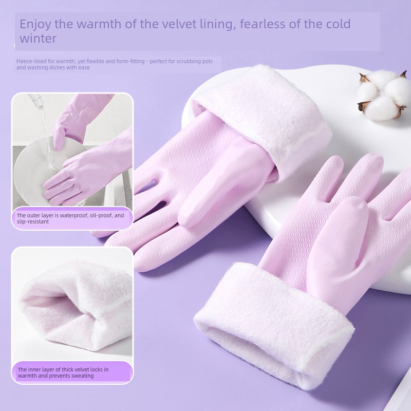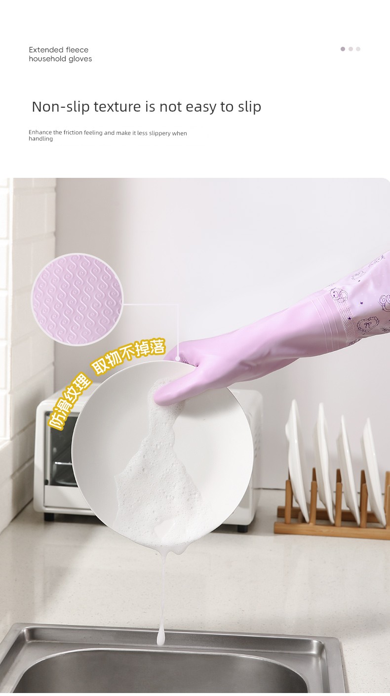 Beautiful Yajia Velvet Gloves for Women, Waterproof and Durable, Suitable for Kitchen Chores, Washing Dishes, Washing Clothes, Latex Leather Rubber, Thickened for Cleaning