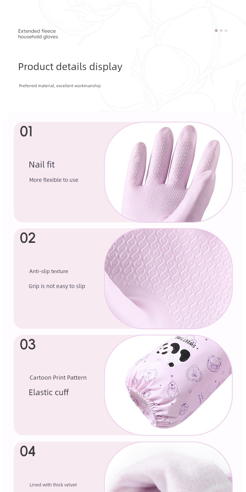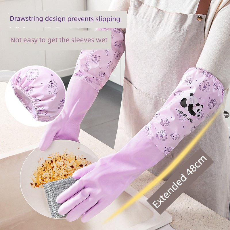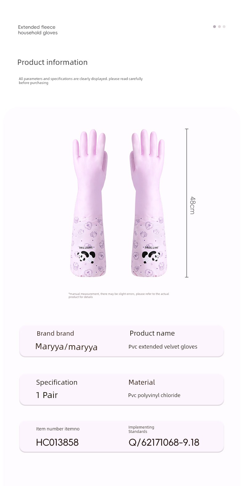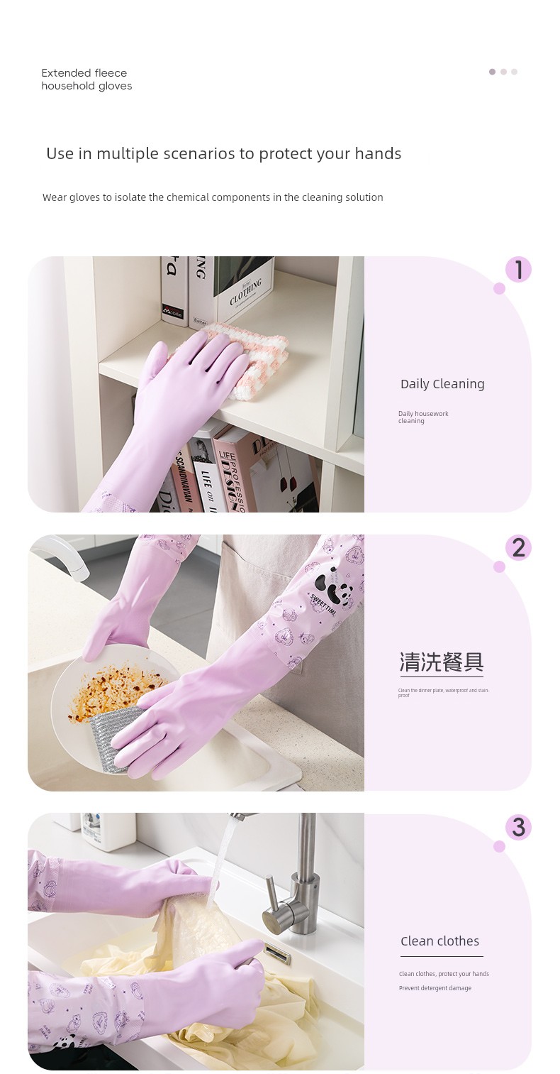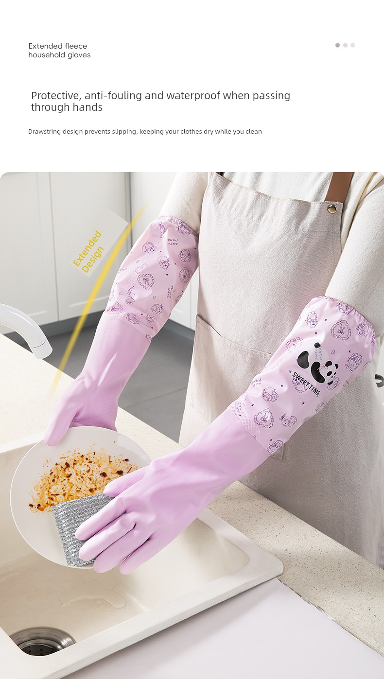 Beautiful Yajia Velvet Gloves for Women, Waterproof and Durable, Suitable for Kitchen Chores, Washing Dishes, Washing Clothes, Latex Leather Rubber, Thickened for Cleaning