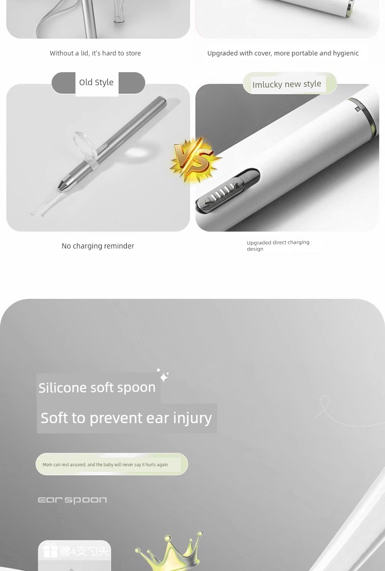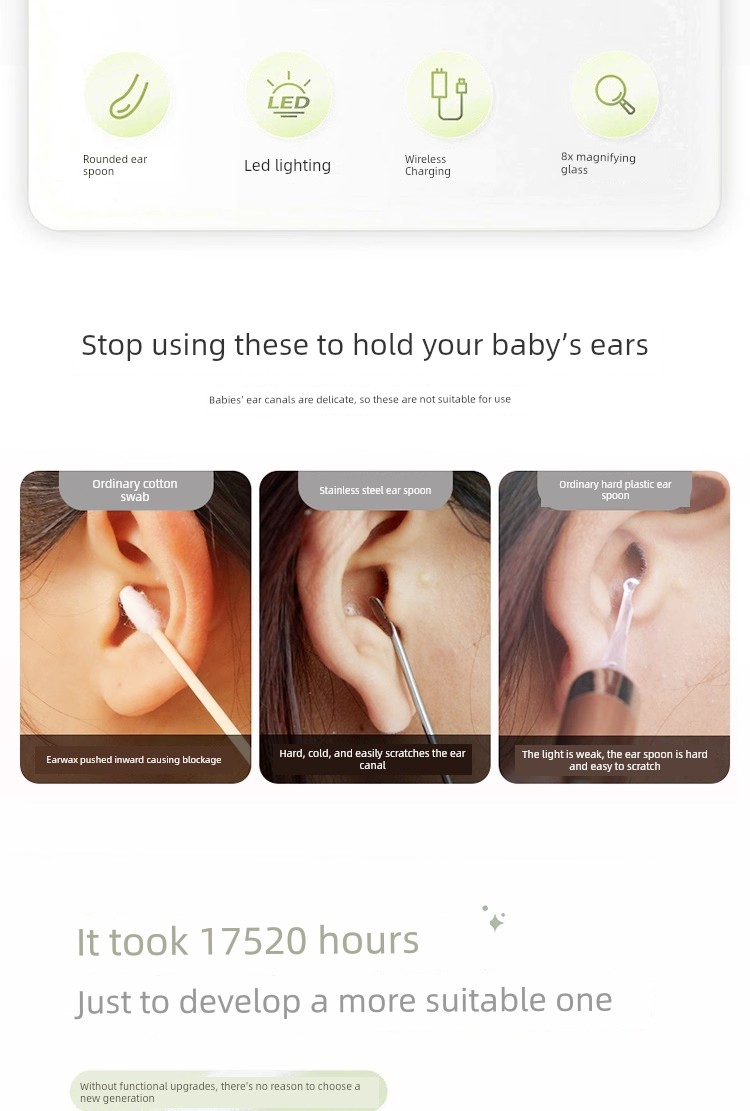 2026 [Upgraded Model with Cover]❤Luminous Ear Spoon - Mica White [See the Ear Canal Clearly and Clean Your Ears More Safely]