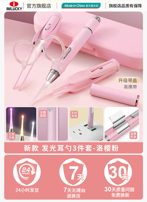 2026 [Upgraded Model with Cover]❤Luminous Earwax Removal Kit - Sakura Pink [Soft Ear Spoon + Ear Tweezers + Nose Picker] Dual Light Source