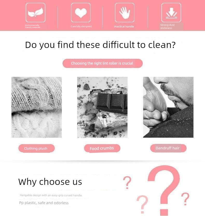 Lint Roller with Tear-Off Paper for Clothes, Cat Hair Remover, Sticky Brush for Removing Hair and Dust, Refillable