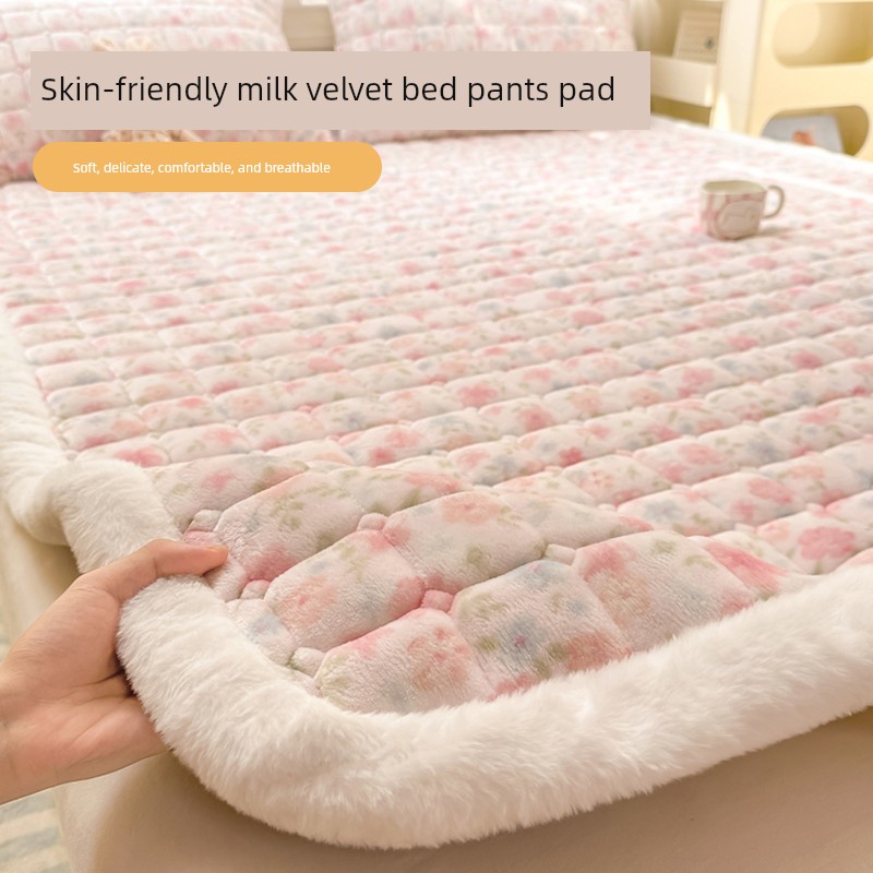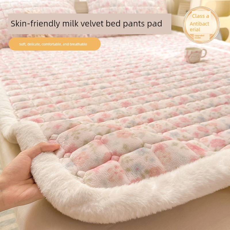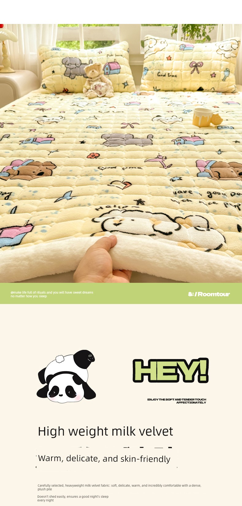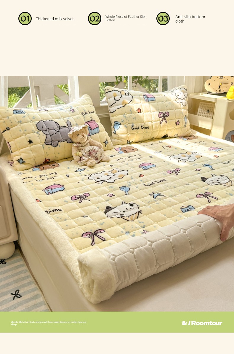 Winter Milk Velvet Bed Sheet Single Piece Mattress Pad Thickened Warm Bed Cover Student Dormitory Coral Velvet Mattress Pad