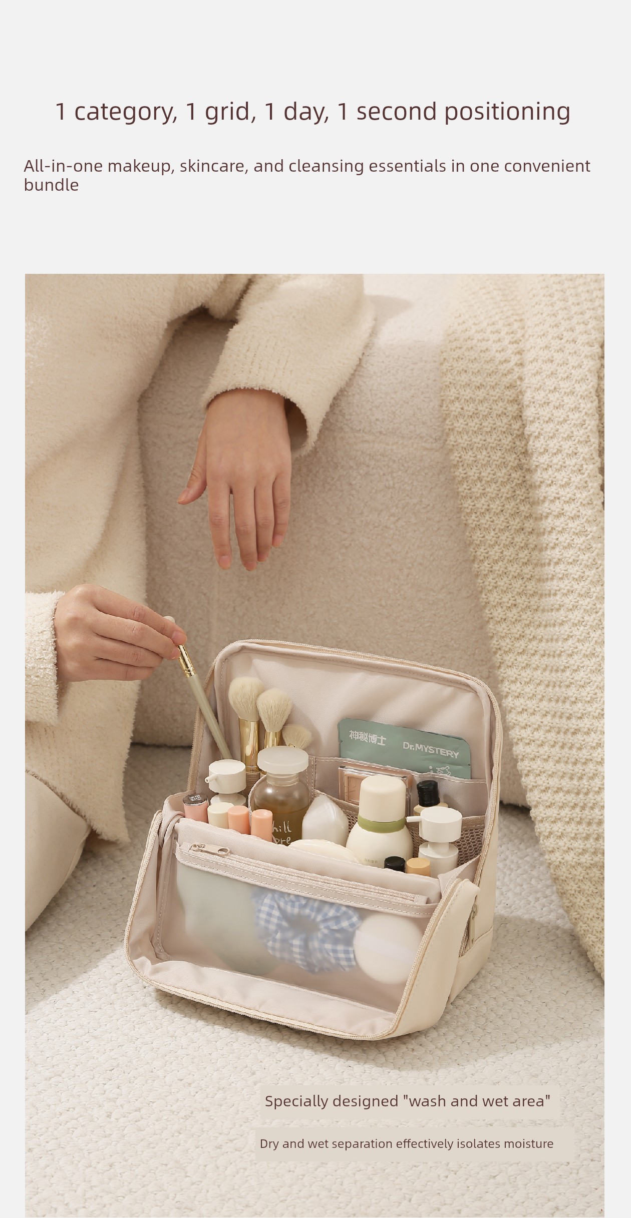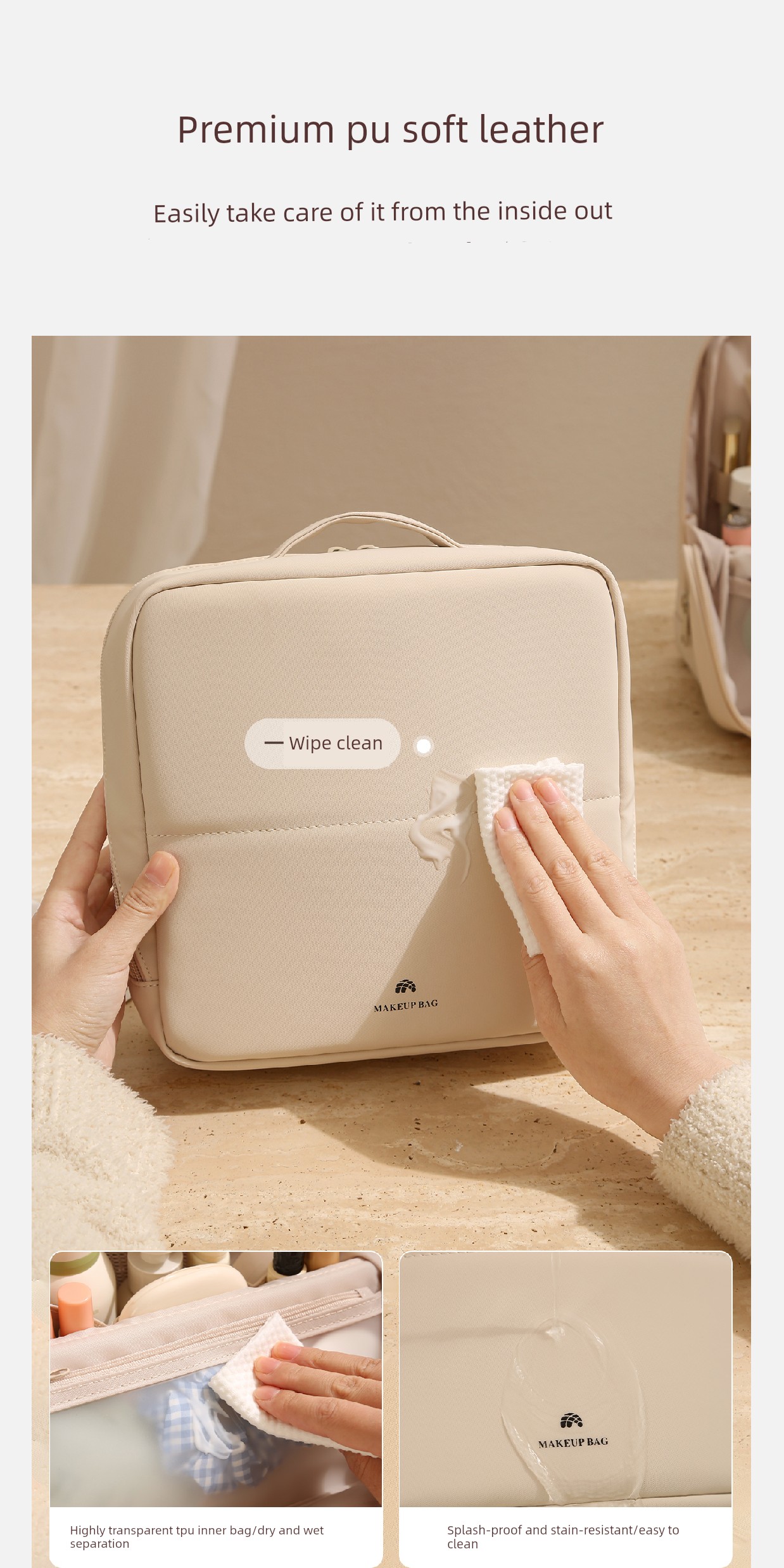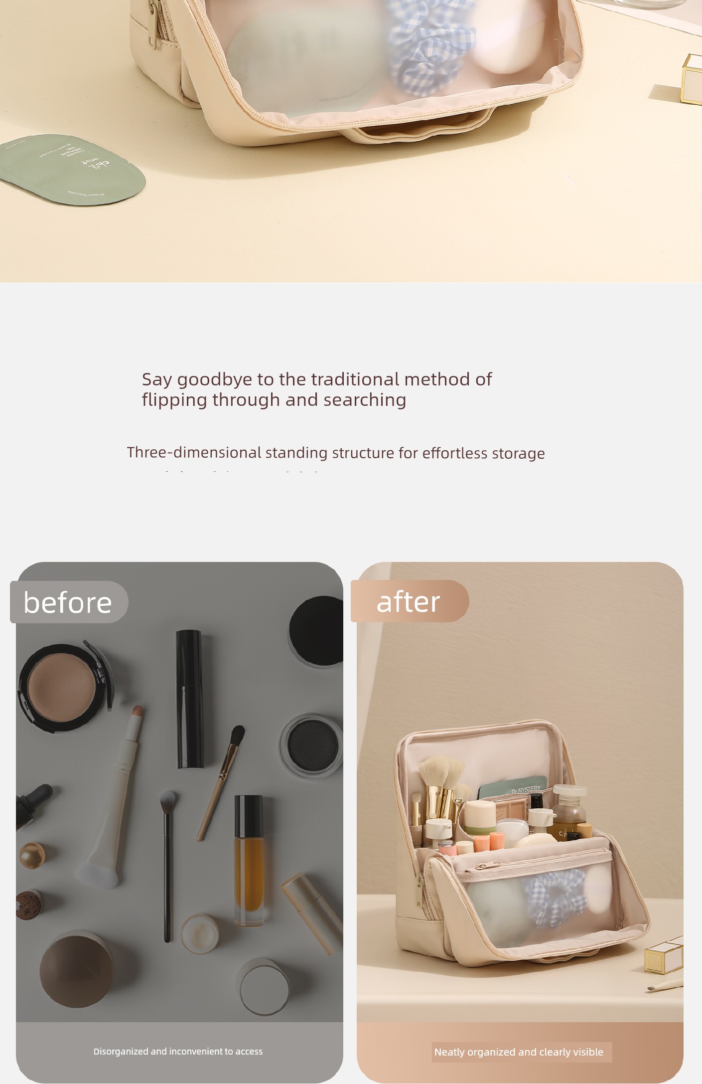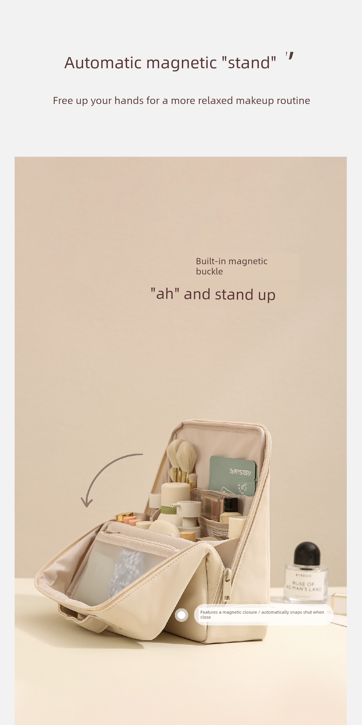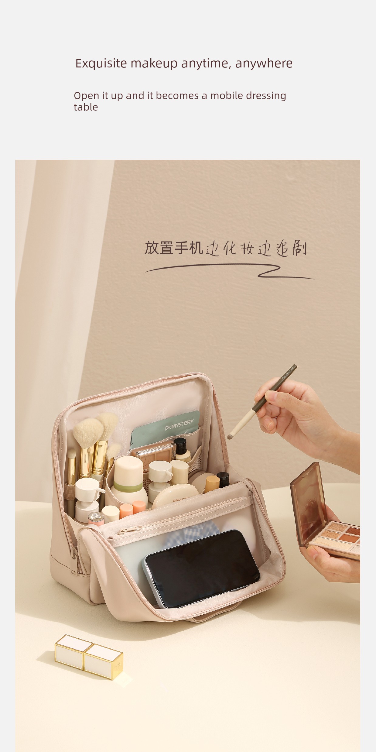Standing Makeup Bag for Women, Portable Large-Capacity New High-End Waterproof Toiletry Bag with Cosmetic Compartment Storage