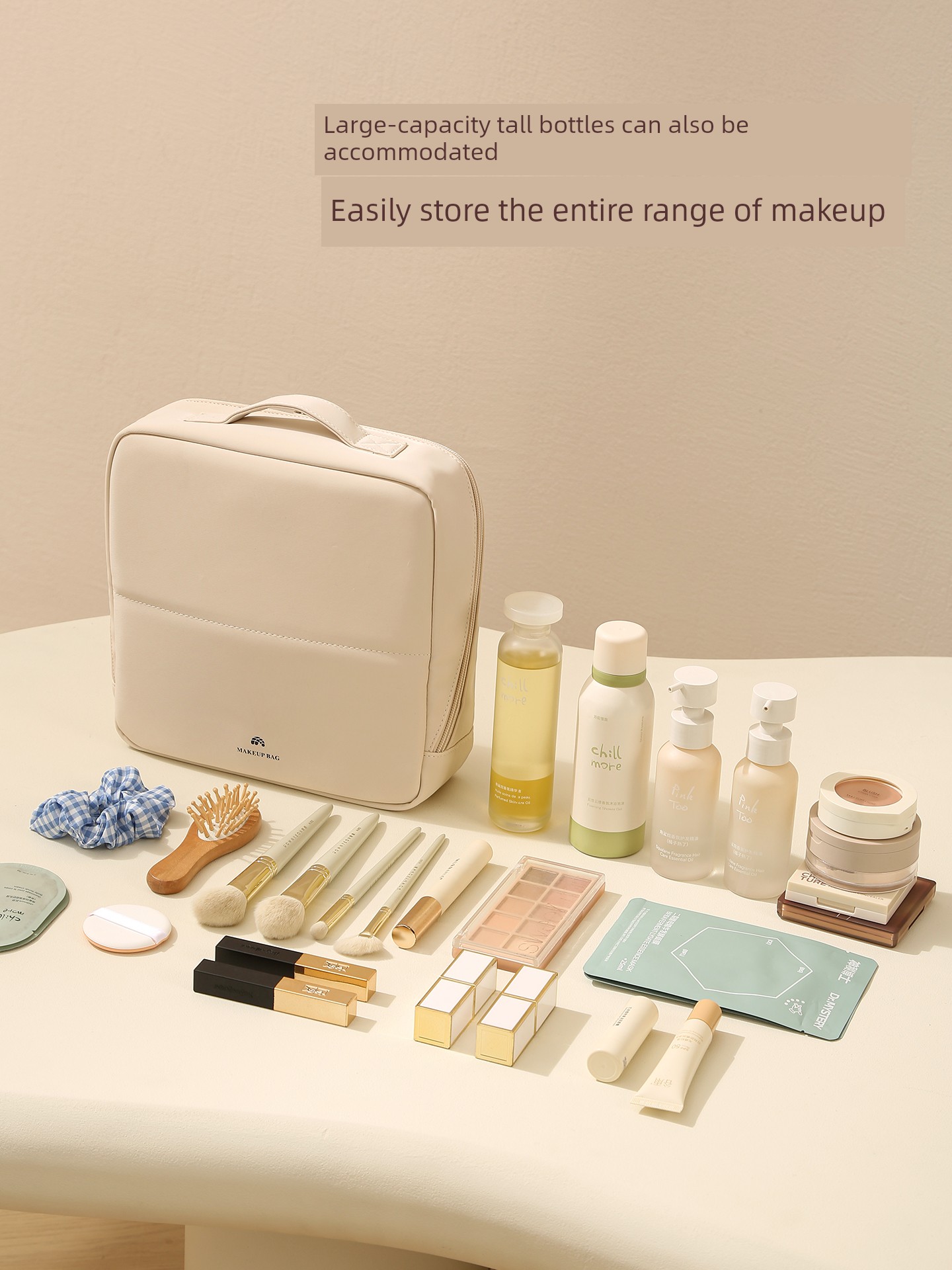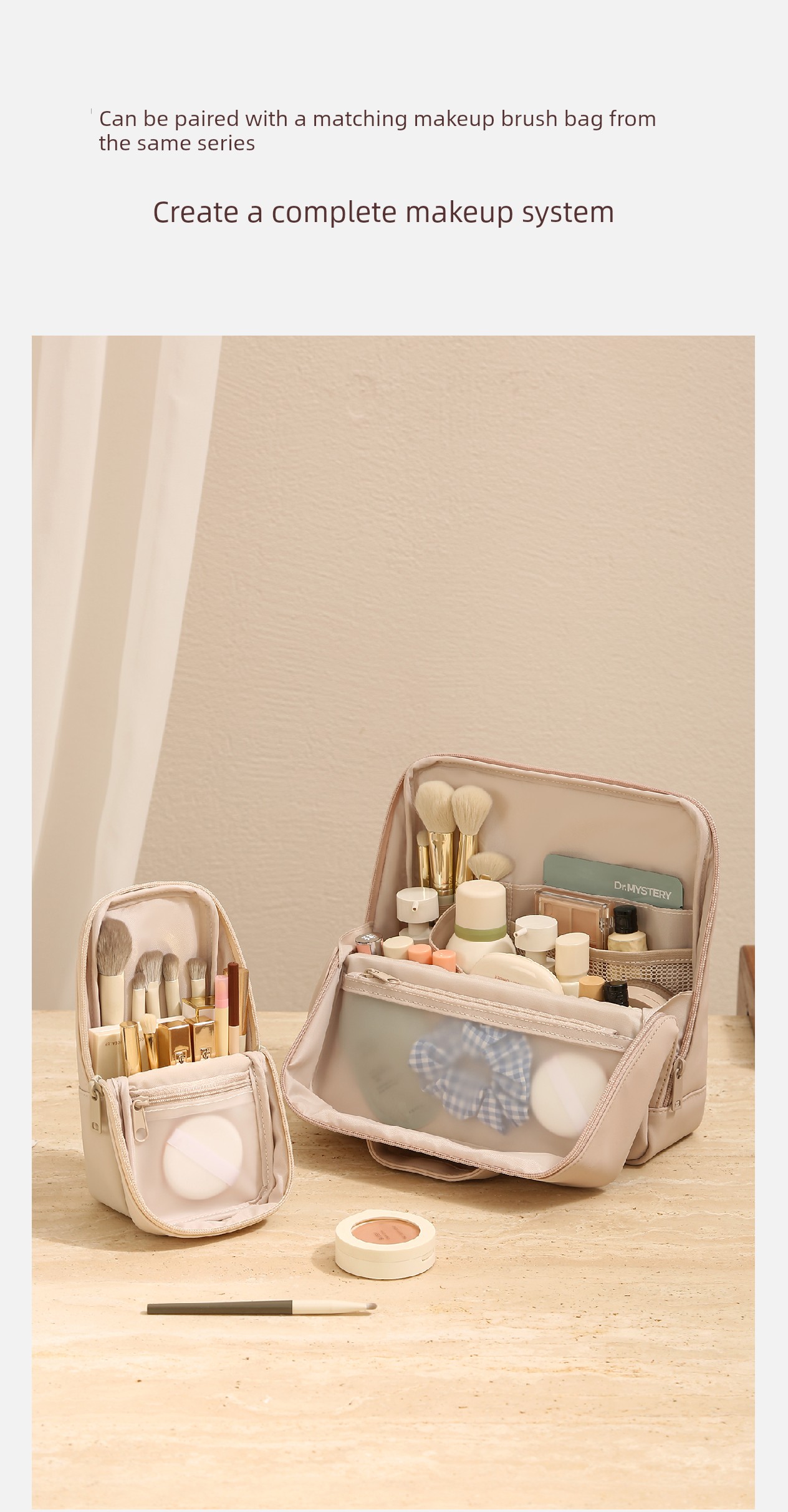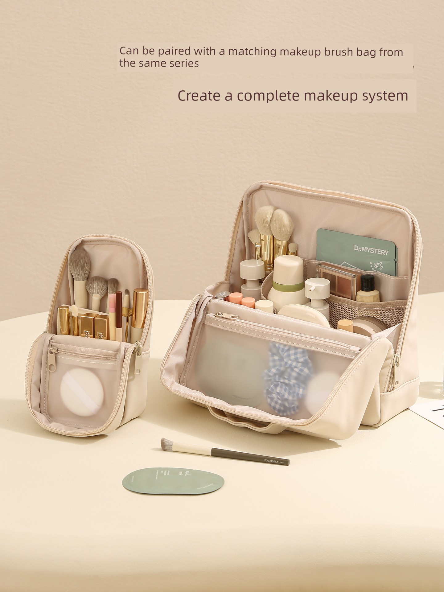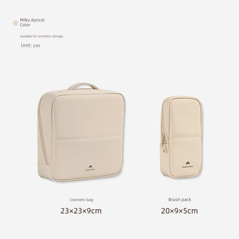 Vertical Cosmetic Bag + Brush Bag [Combination Pack - Apricot Color]