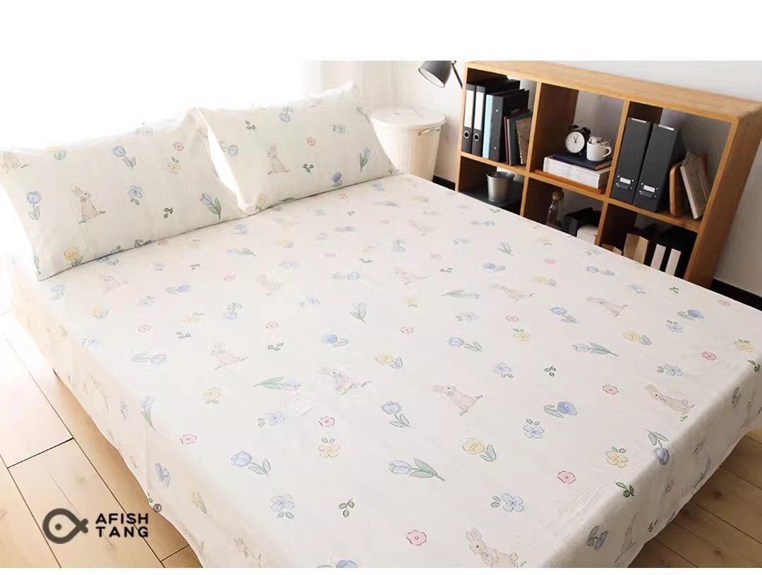 Little Star Cute Cotton Bed Sheet Single Piece 100% Pure Cotton Thickened Sheet for Student Single Bed Can Be Paired with Three or Four-Piece Set
