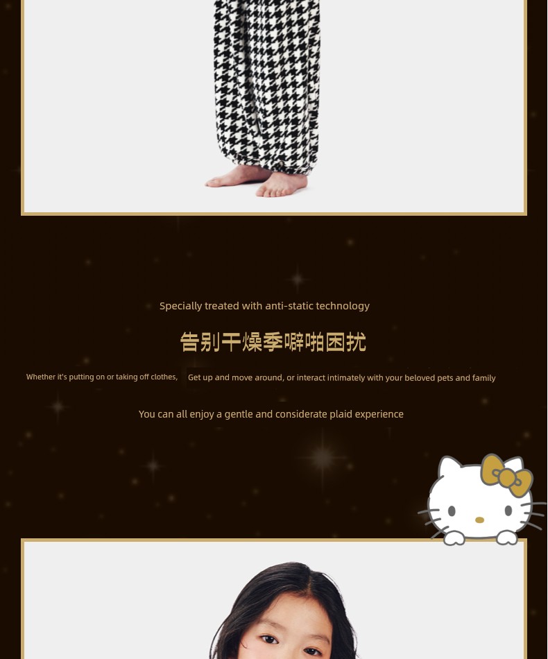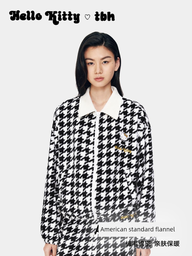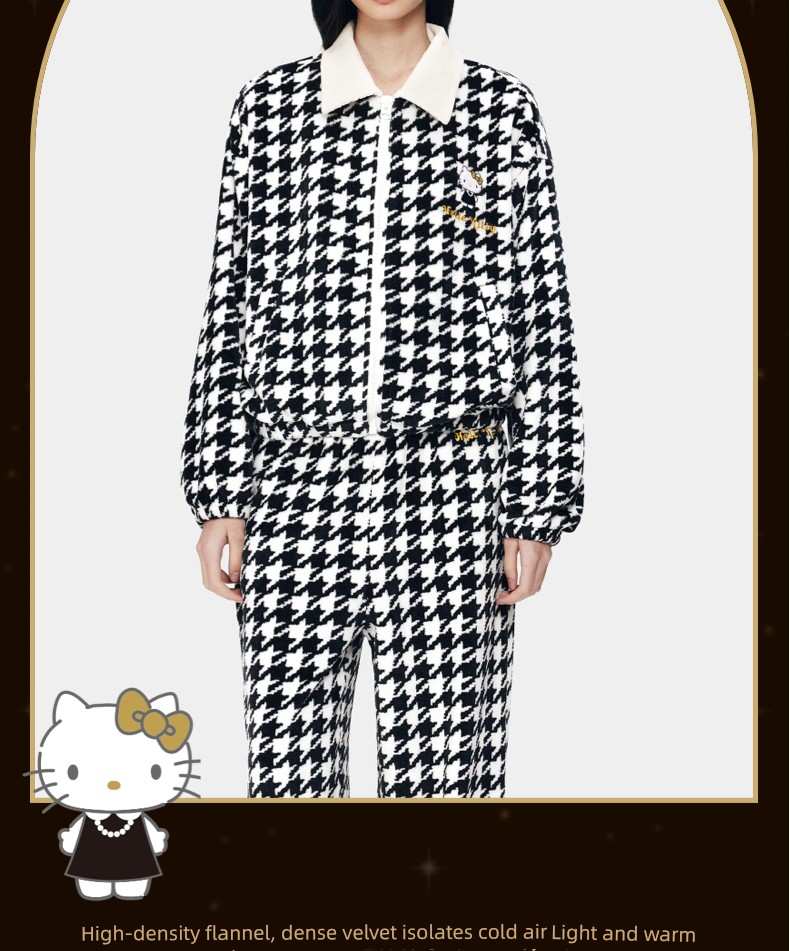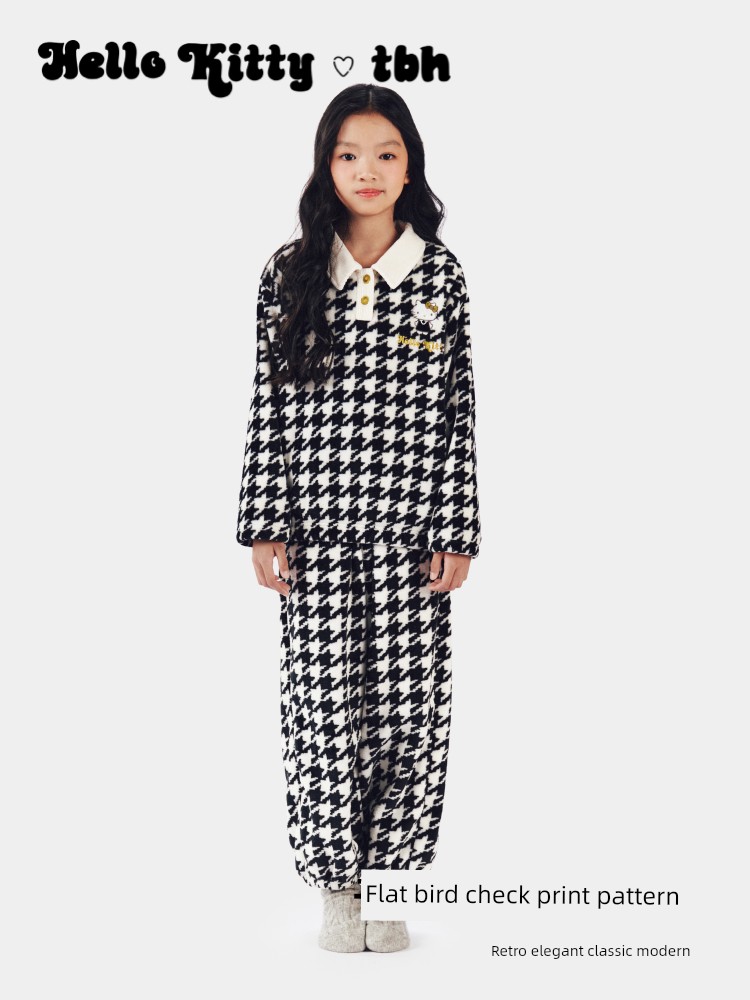 Hello Kitty Flannel Home Clothes Suit Chidori Grids