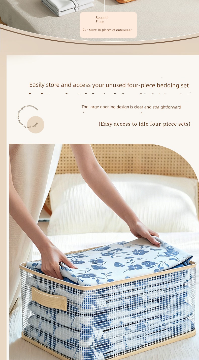 Mesh Four-Piece Storage Bag for Seasonal Clothes, Clothing Organizer Bag, Wardrobe Quilt Dustproof Compartment with Handle for Storage
