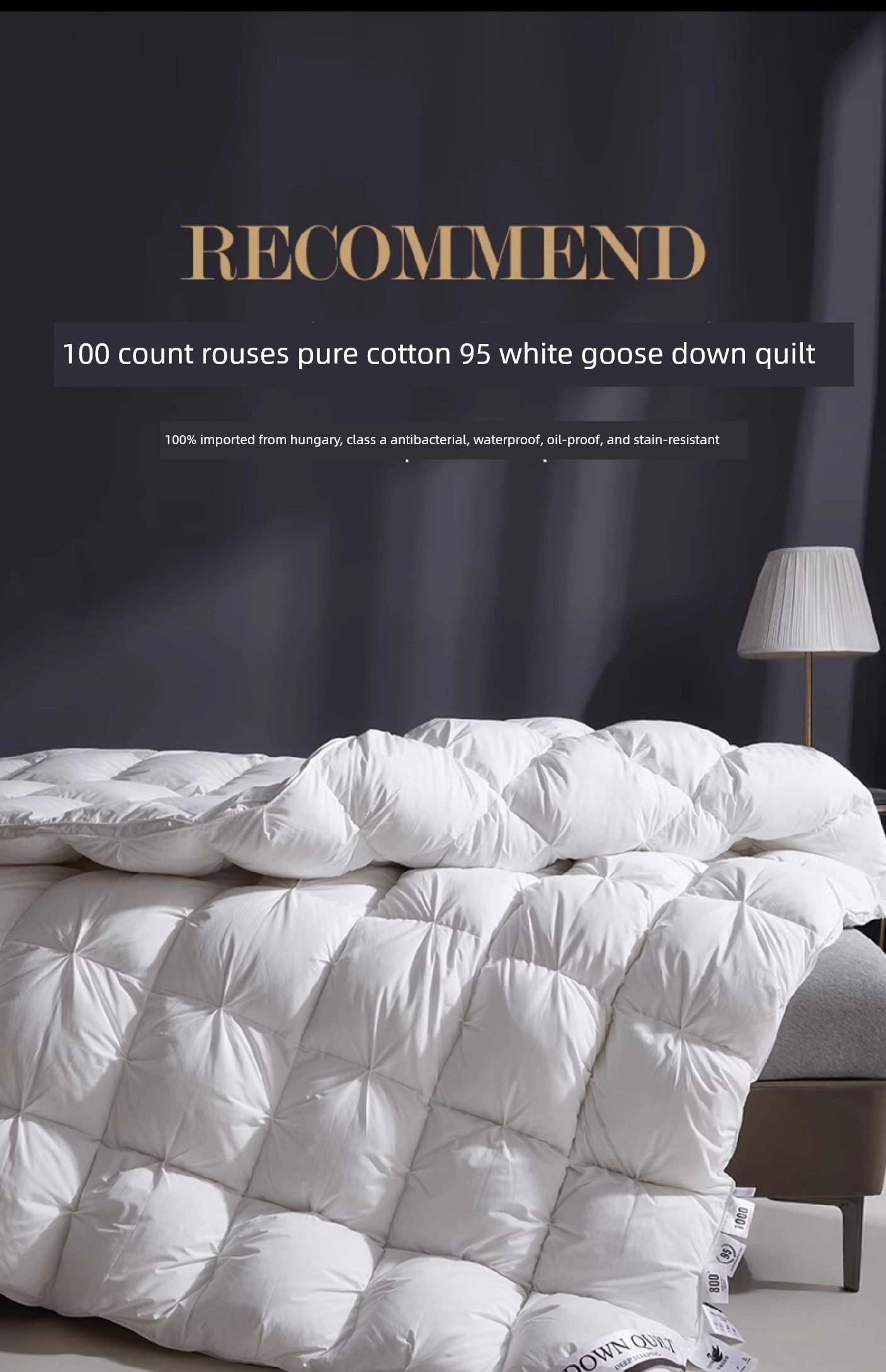 180X220Cm Spring and Autumn Quilt/2000G 100% Hungarian White Goose down