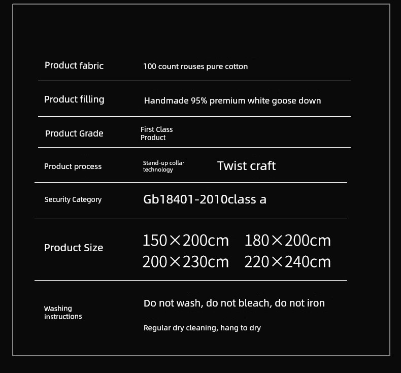 180X220Cm Thick Winter Quilt 3500g 100% Hungarian White Goose down