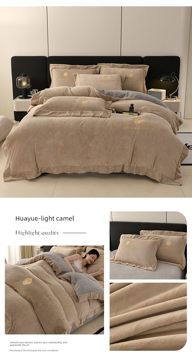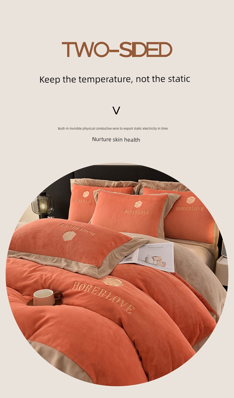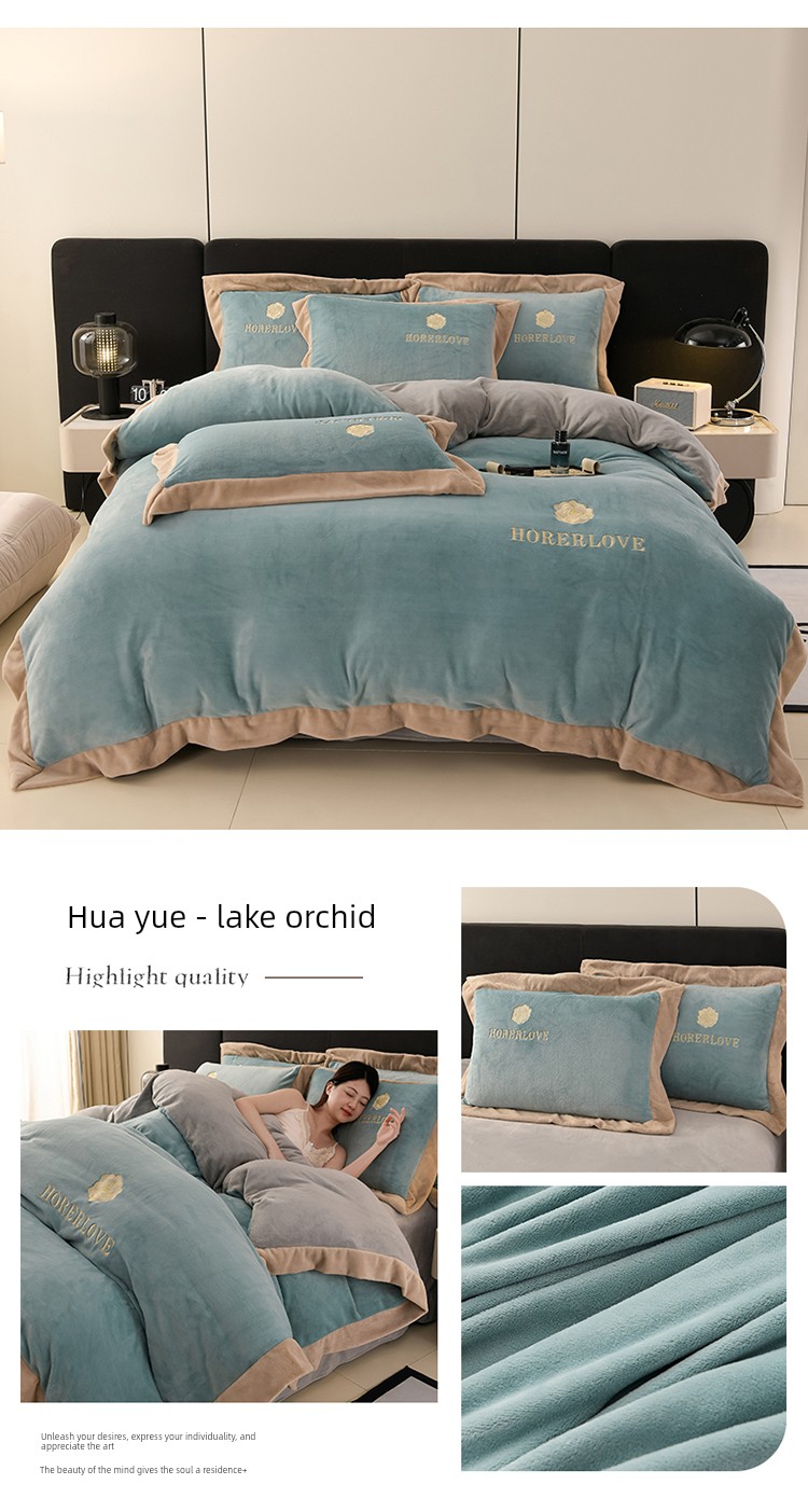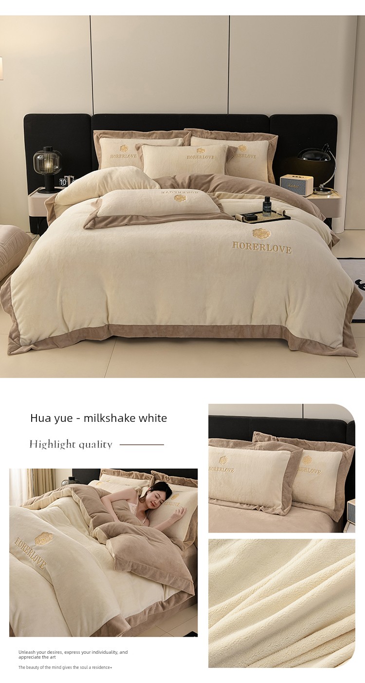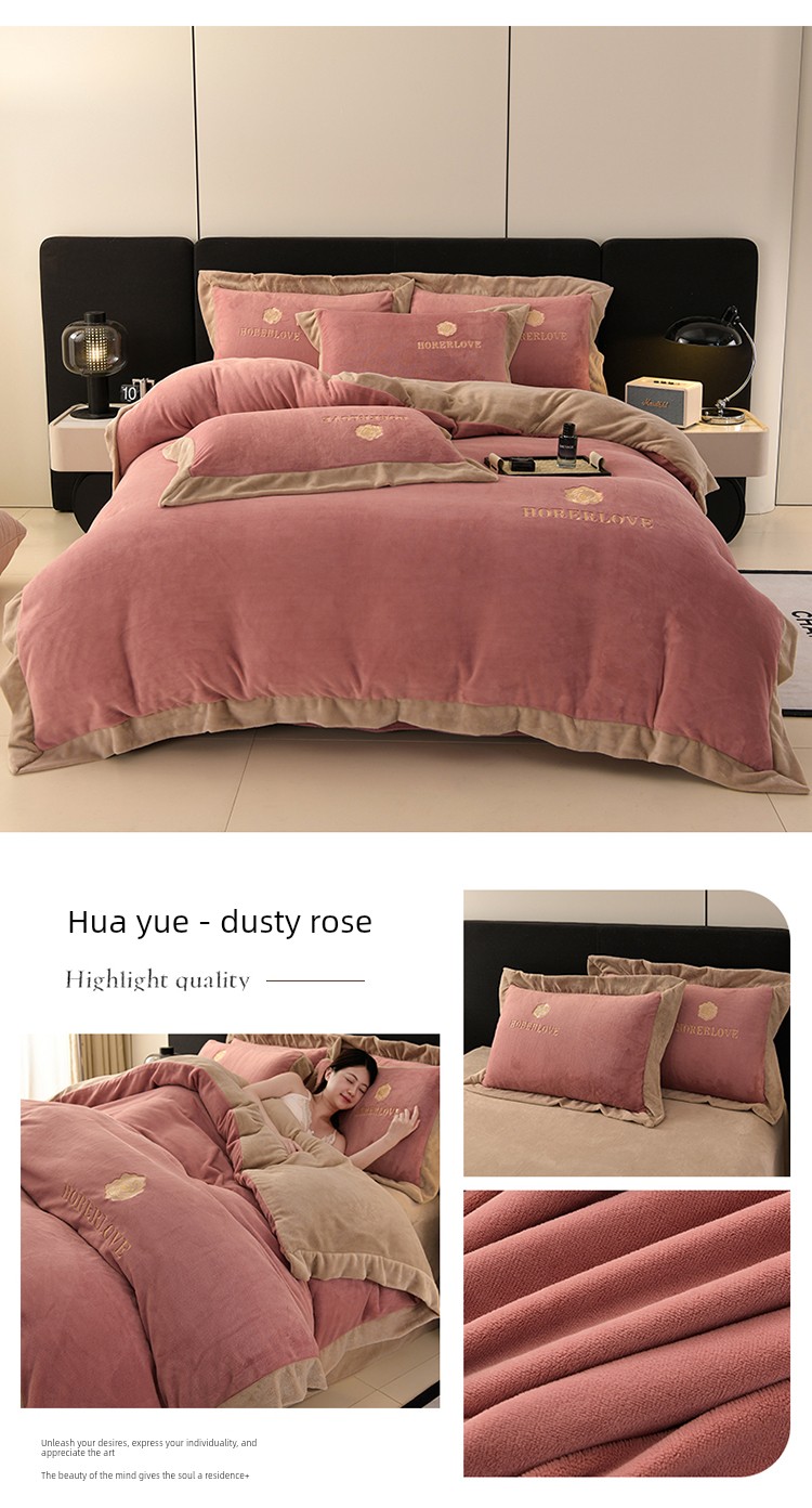 Mercury Home Textiles Autumn and Winter Thickened Milk Velvet Four-Piece Set Warm Velvet Embroidered Floral French Velvet Duvet Cover with Fitted Sheet