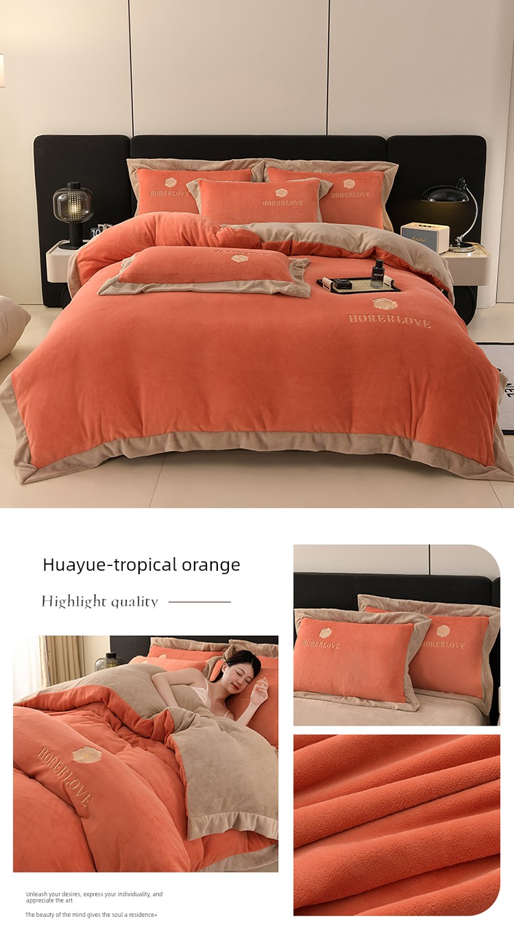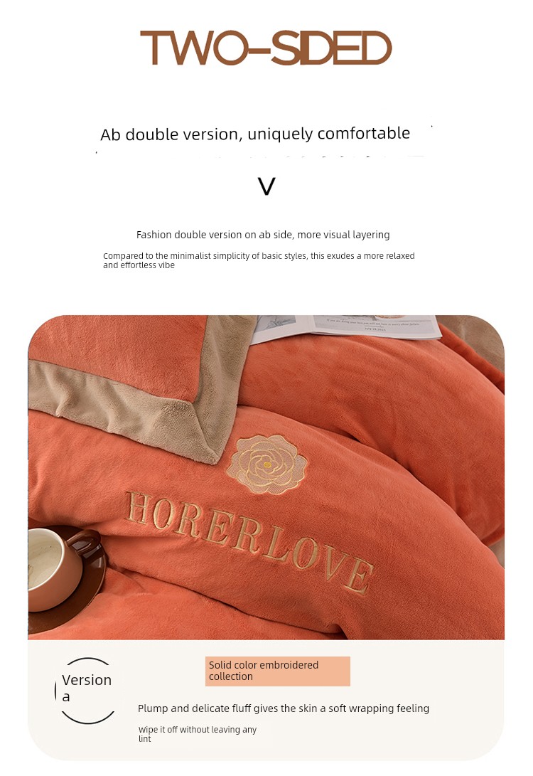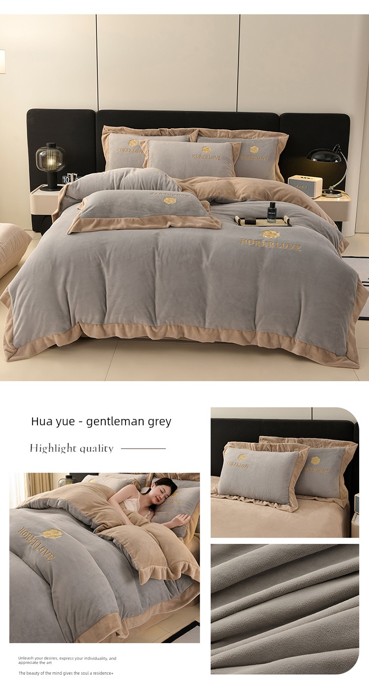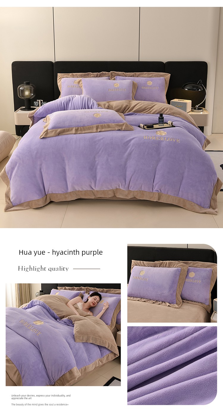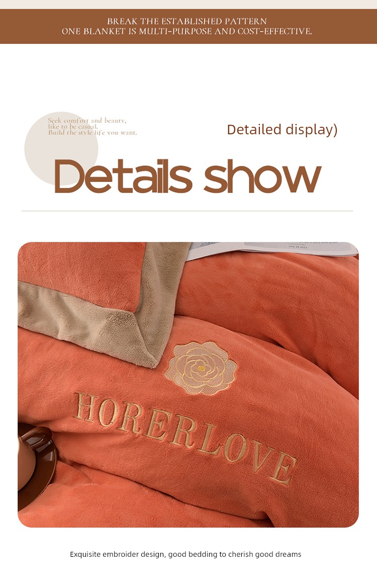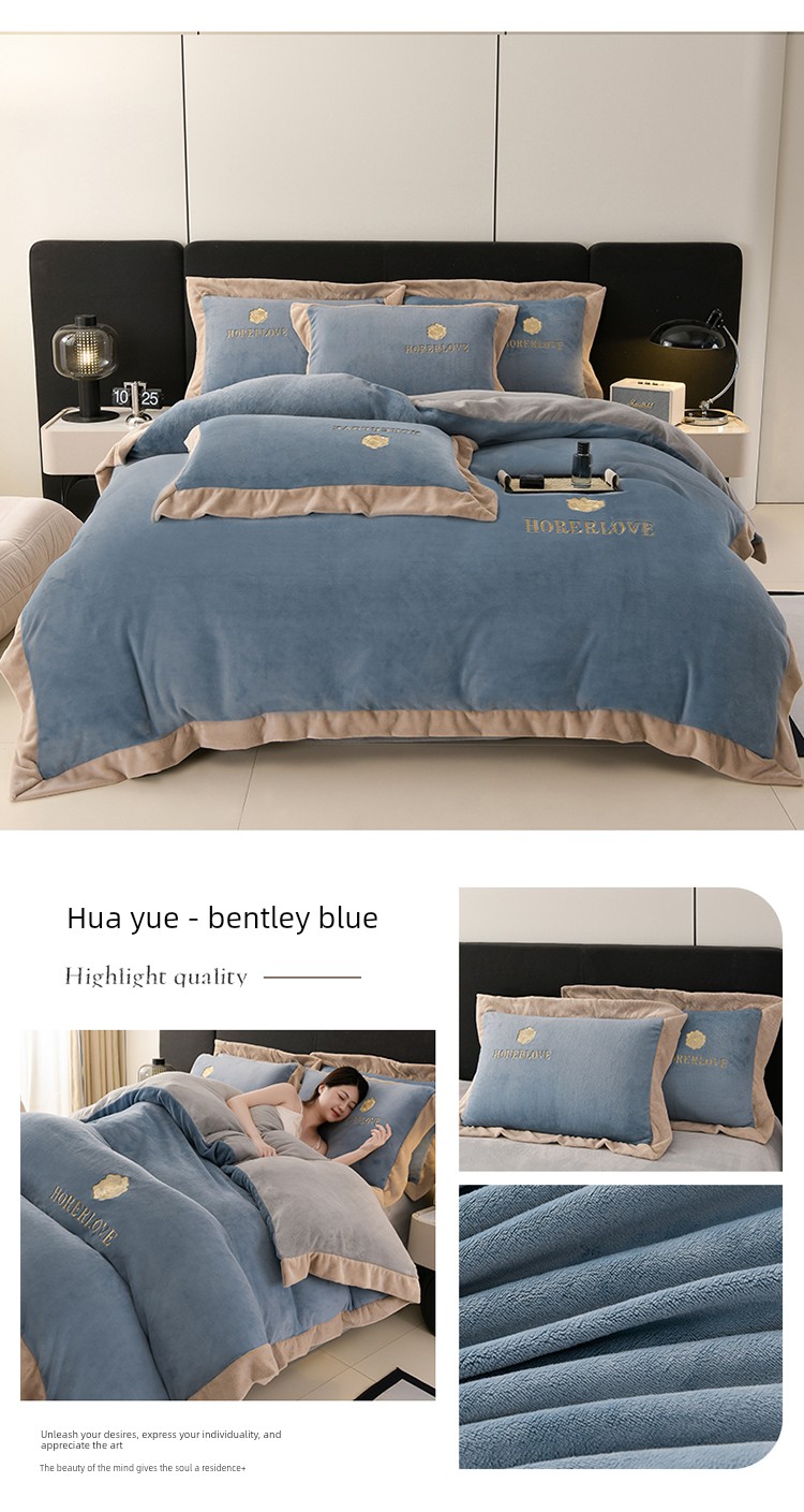 Mercury Home Textiles Autumn and Winter Thickened Milk Velvet Four-Piece Set Warm Velvet Embroidered Floral French Velvet Duvet Cover with Fitted Sheet
