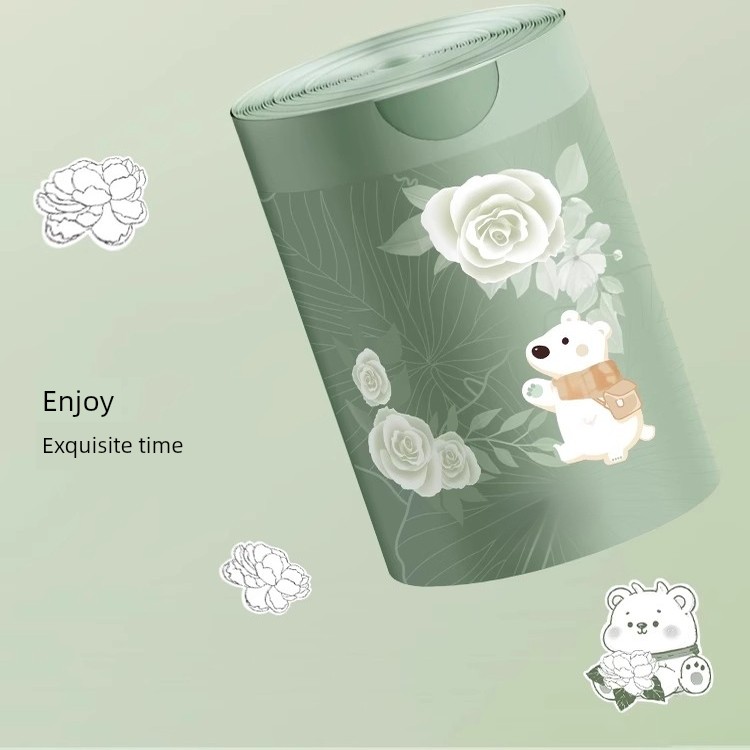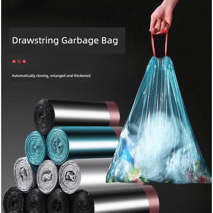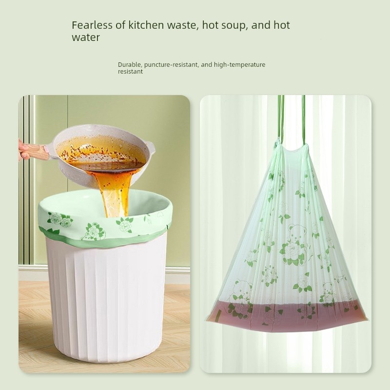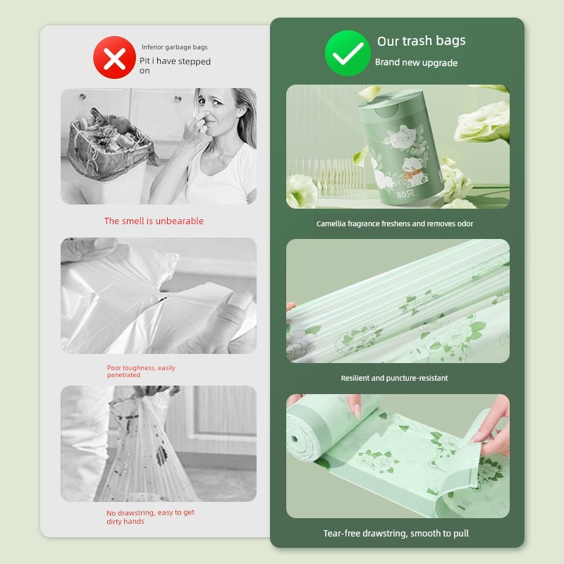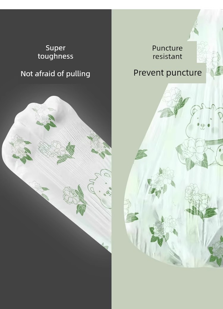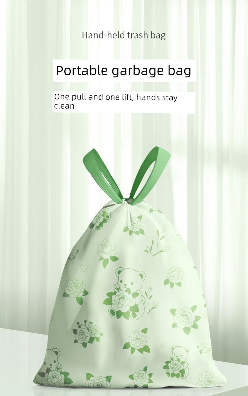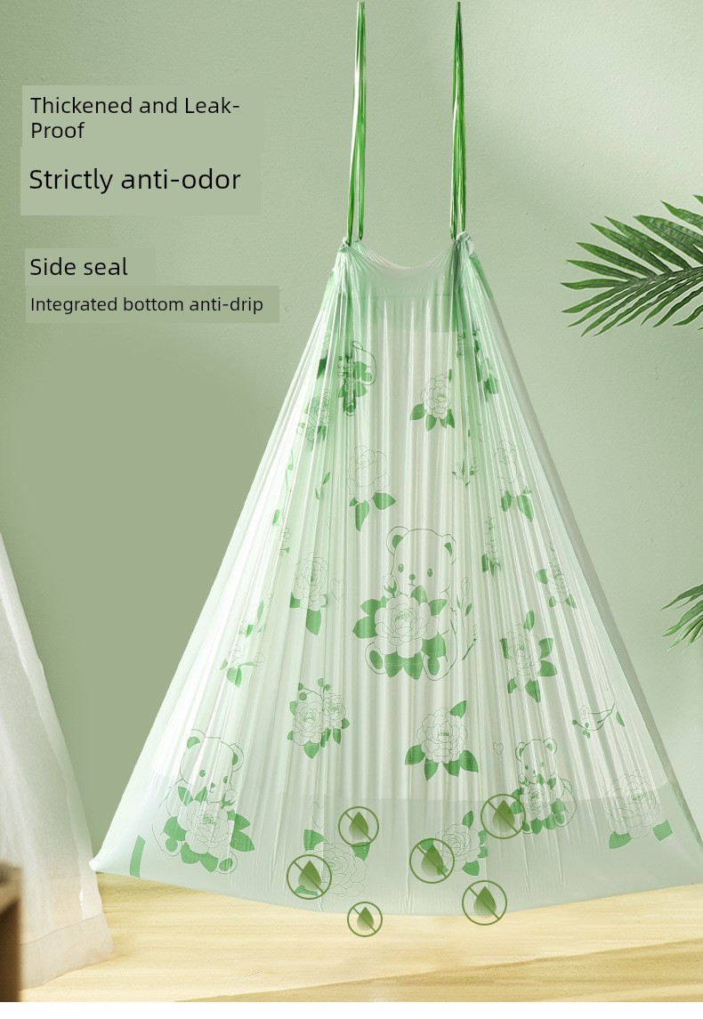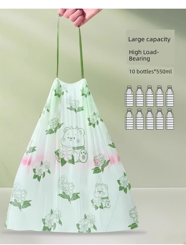 Drawstring Double-Sided 2.0 Silk Garbage Bags with Camellia Fragrance and Cartoon Print, Thickened Household Cleaning Bags, Plastic Bags